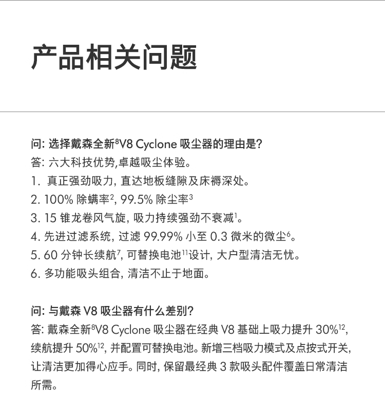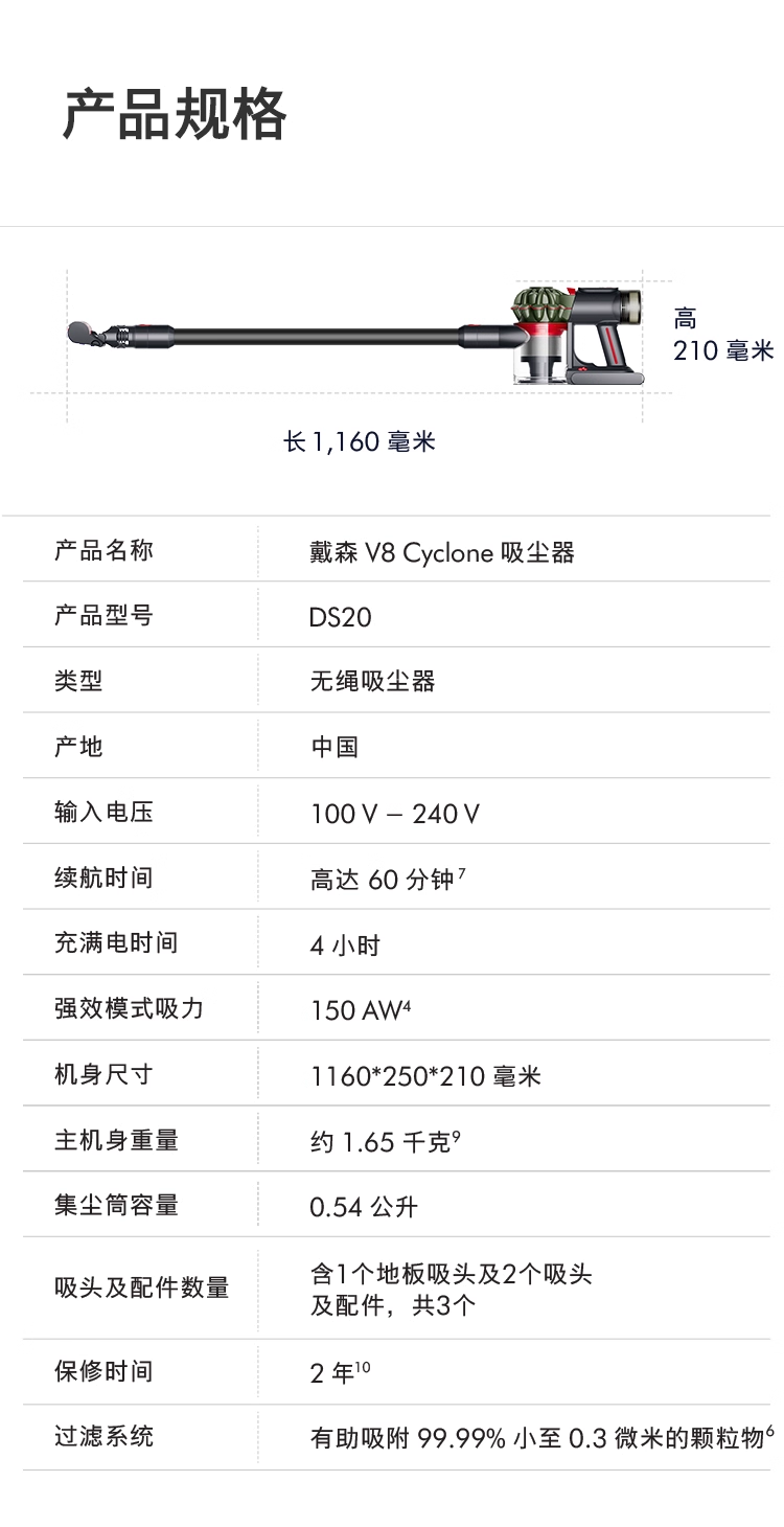 Dyson戴森V8 Cyclone无线家用吸尘器大吸力