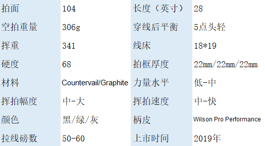 采用独特材料Counervail、能有很好吸收球拍击球时震动,从而降低肌肉疲劳度。让球拍舒适性得到充分改善。