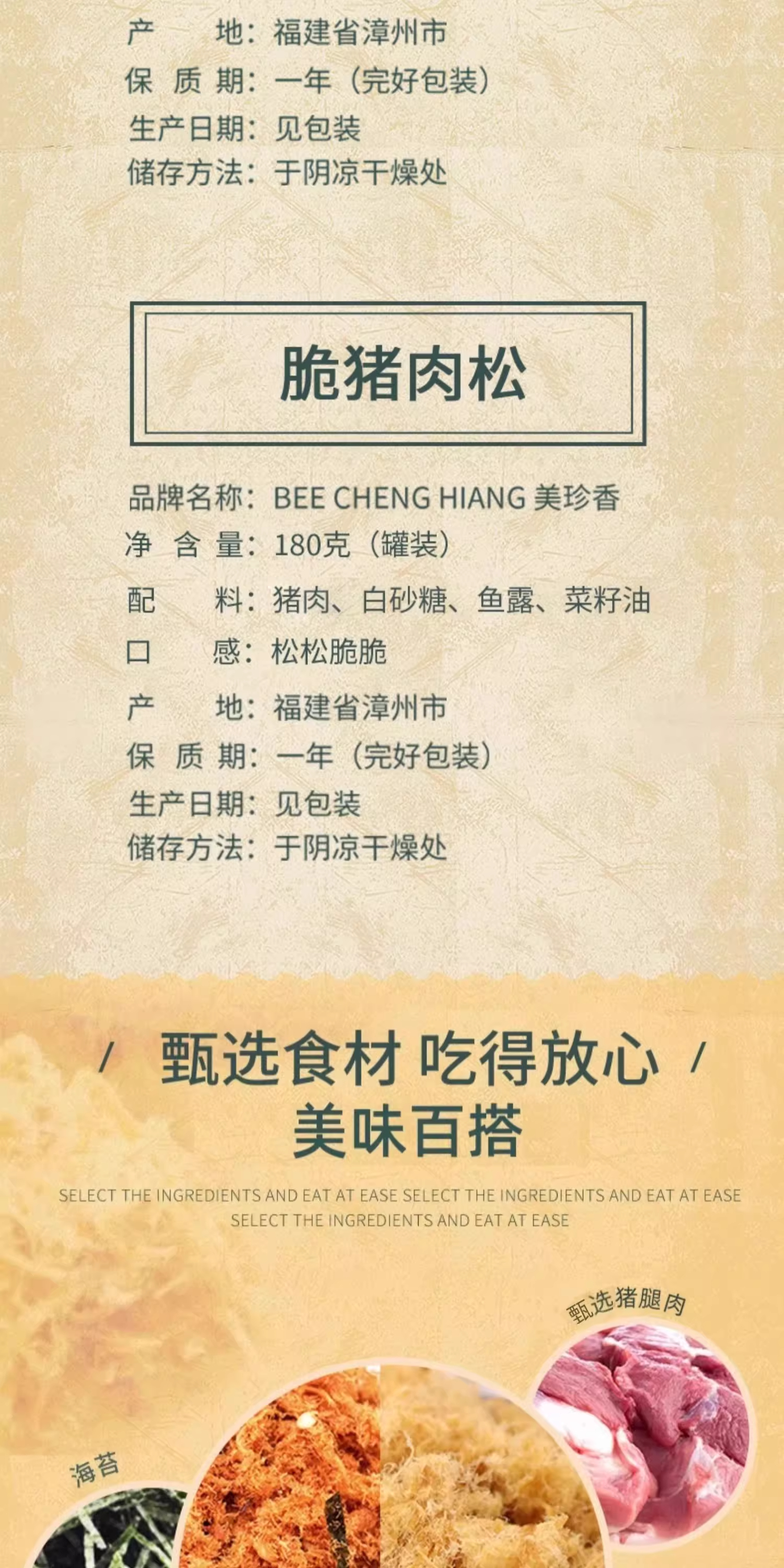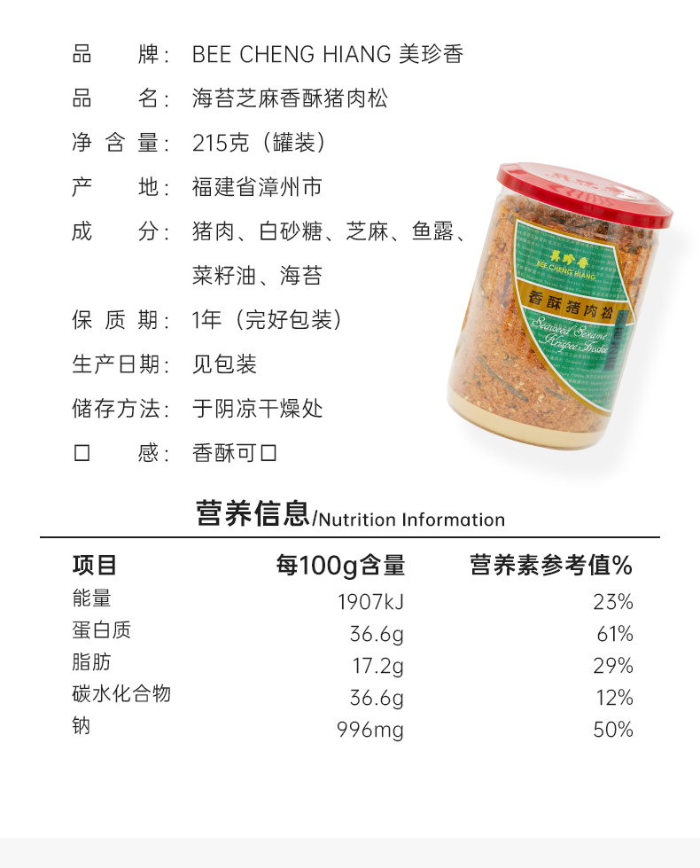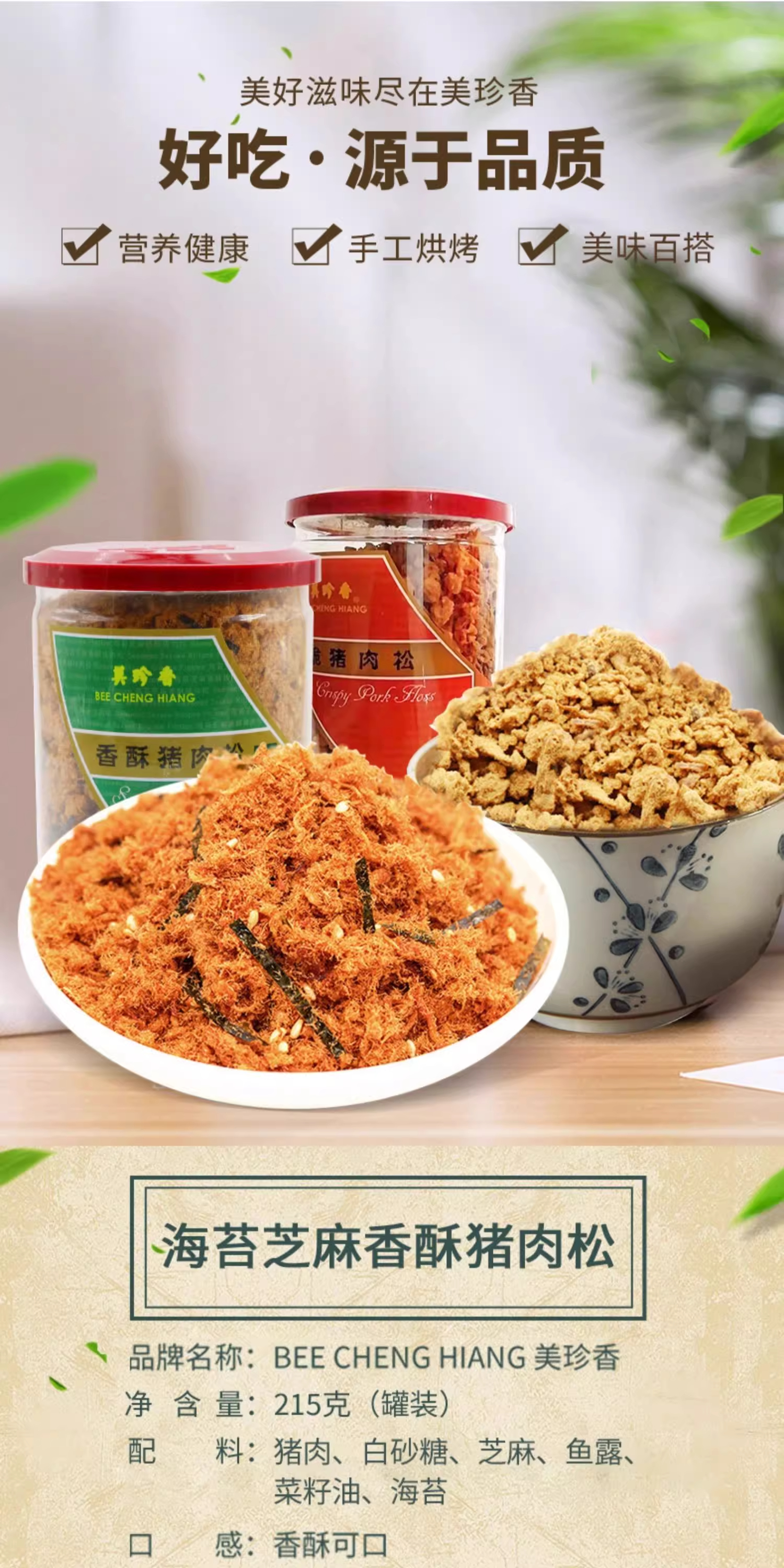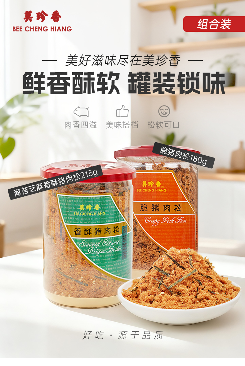 【组合】美珍香 海苔芝麻香酥猪肉松215g+脆猪肉松180g组合