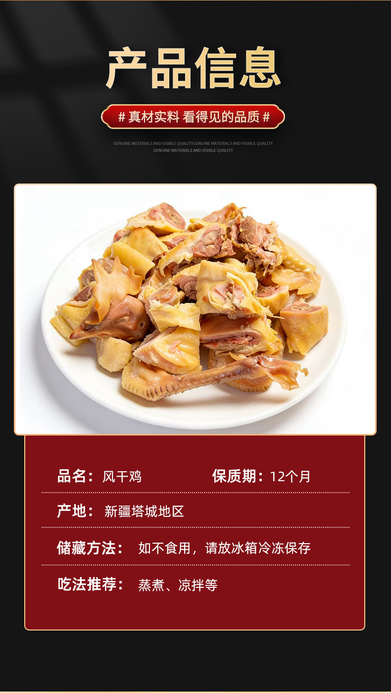 额雁·新疆塔城风干也迷离鸡0.8-1.2kg /只 肉质干香,弹韧耐嚼