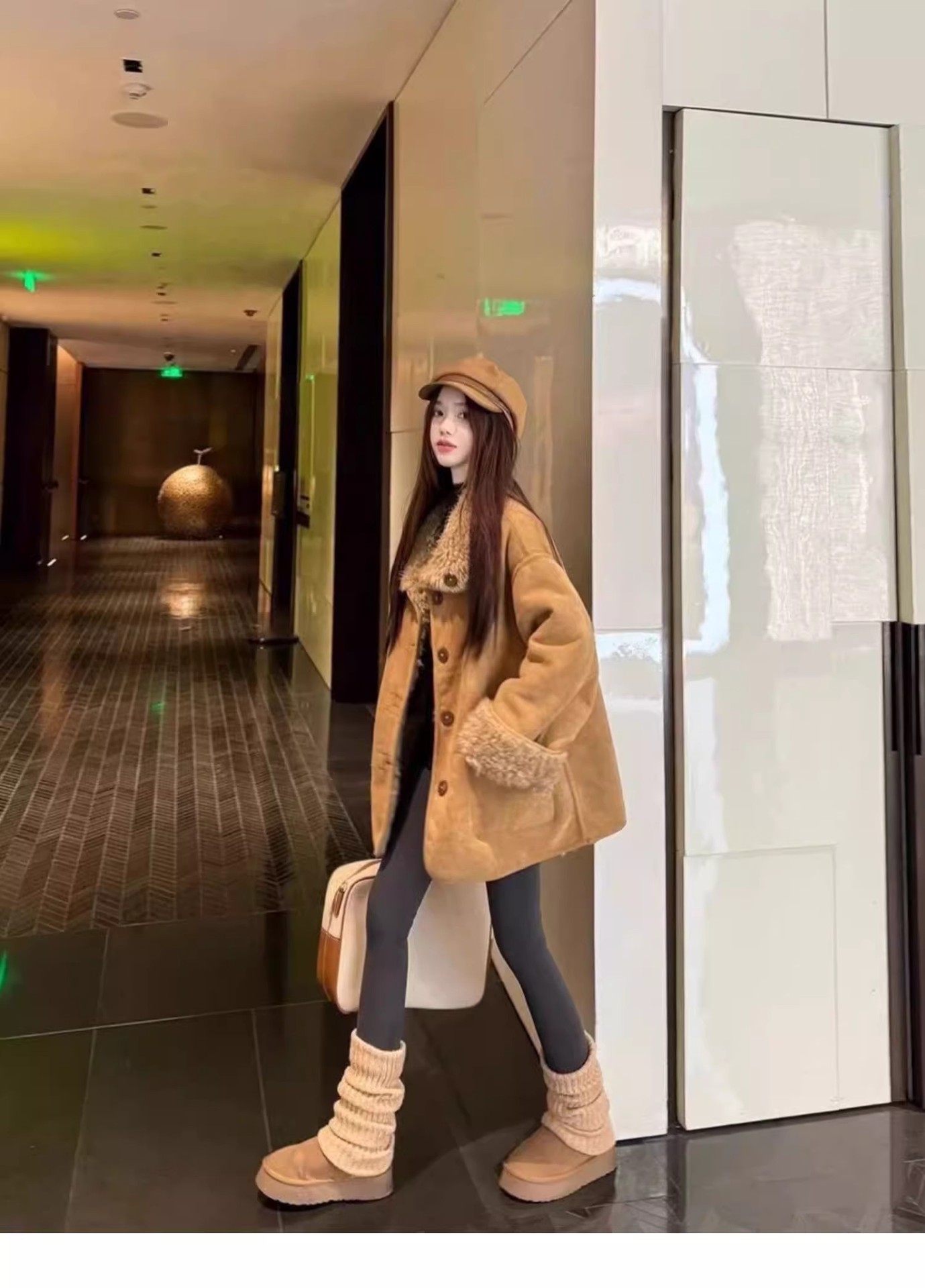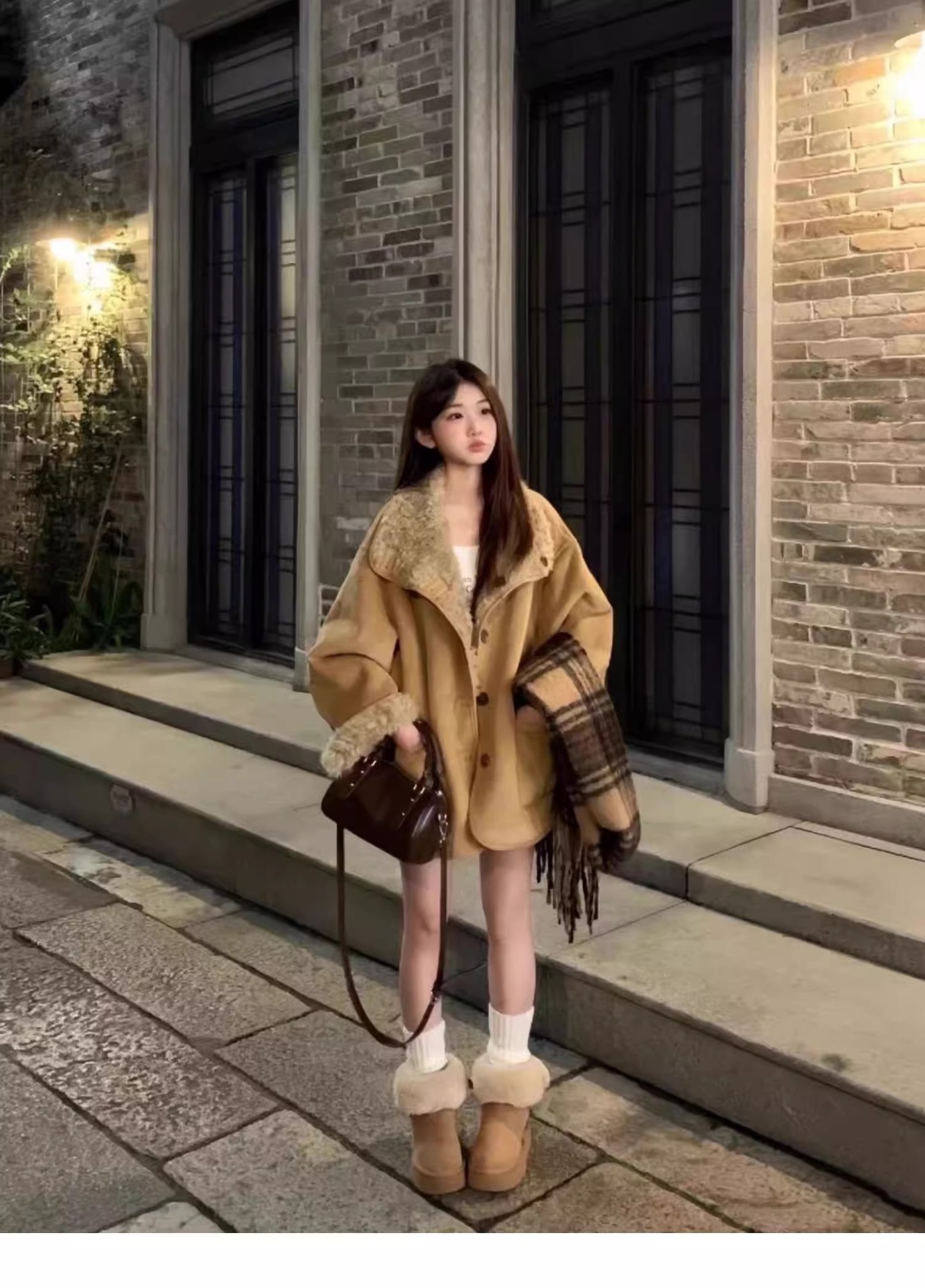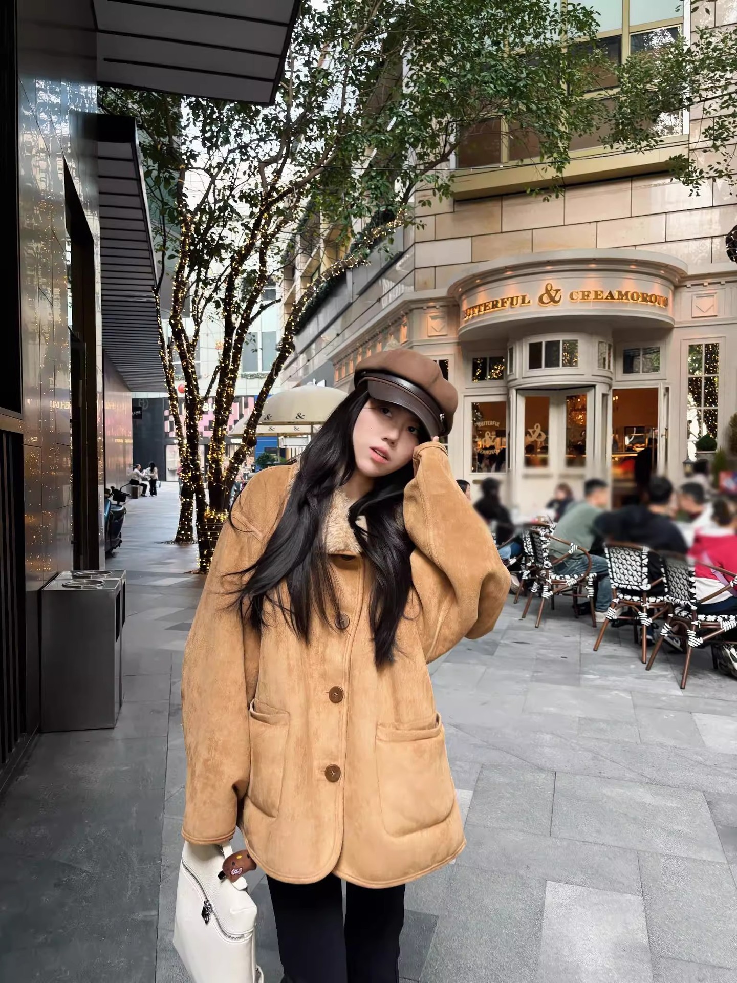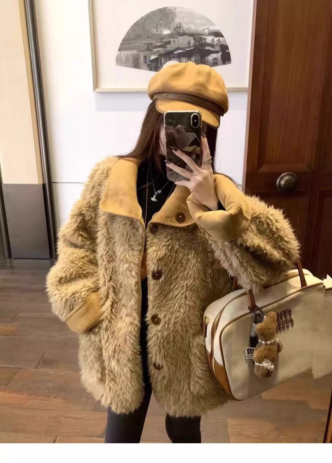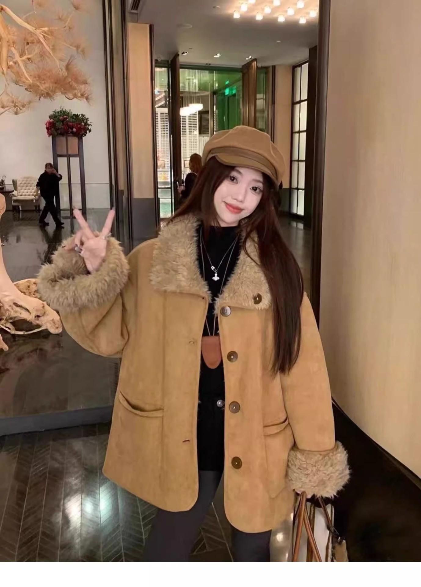 【温暖包裹❗️质感双面】复古麂皮羊羔毛两面穿机车外套2025加厚皮毛宽松落肩帅飒出街神器。jb
