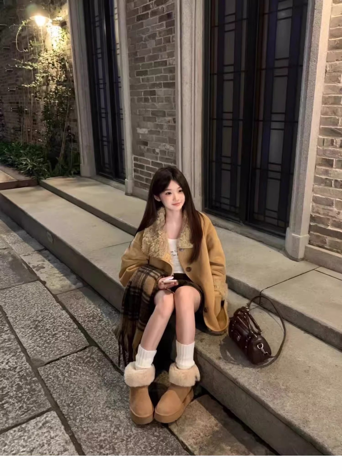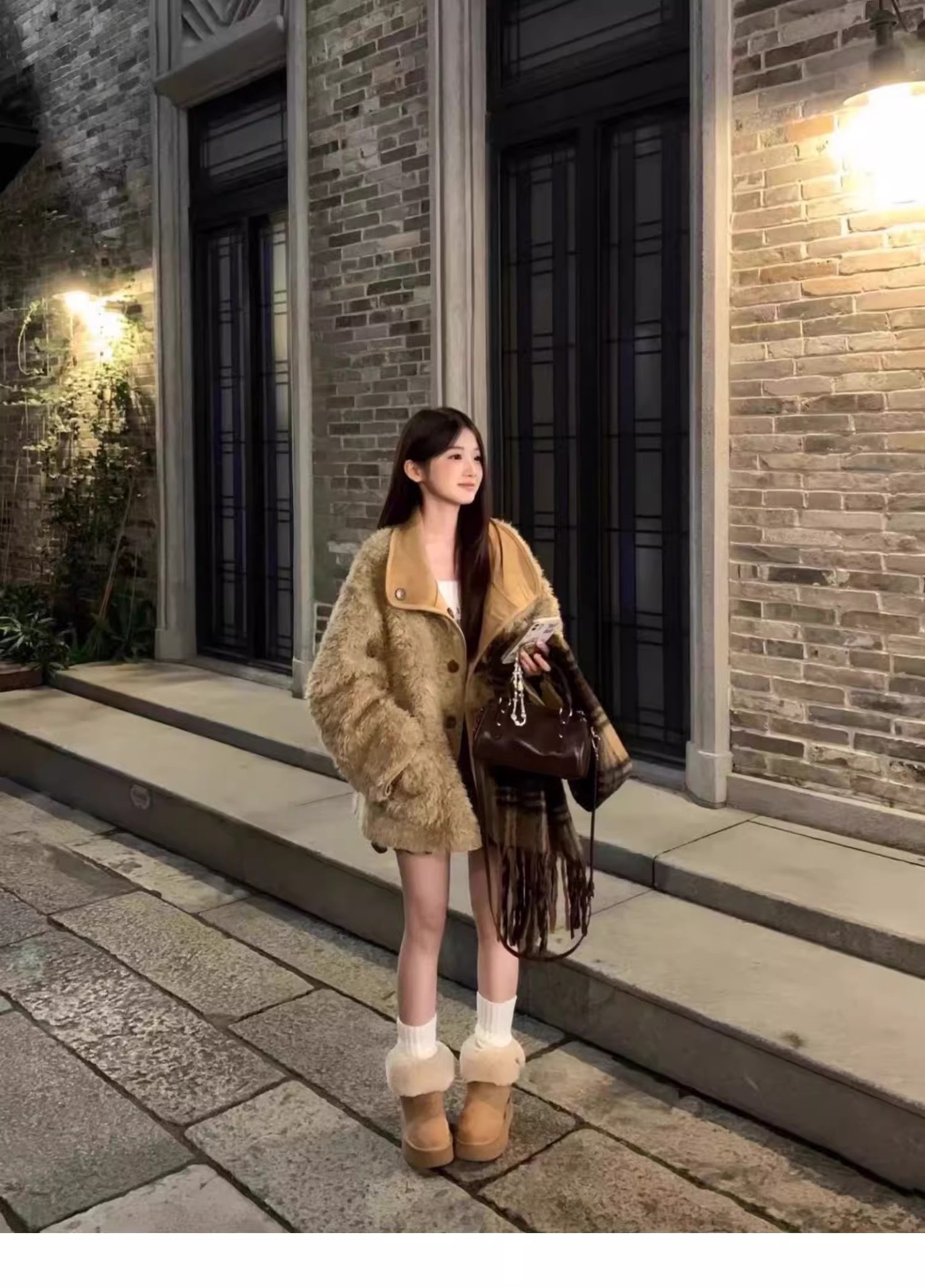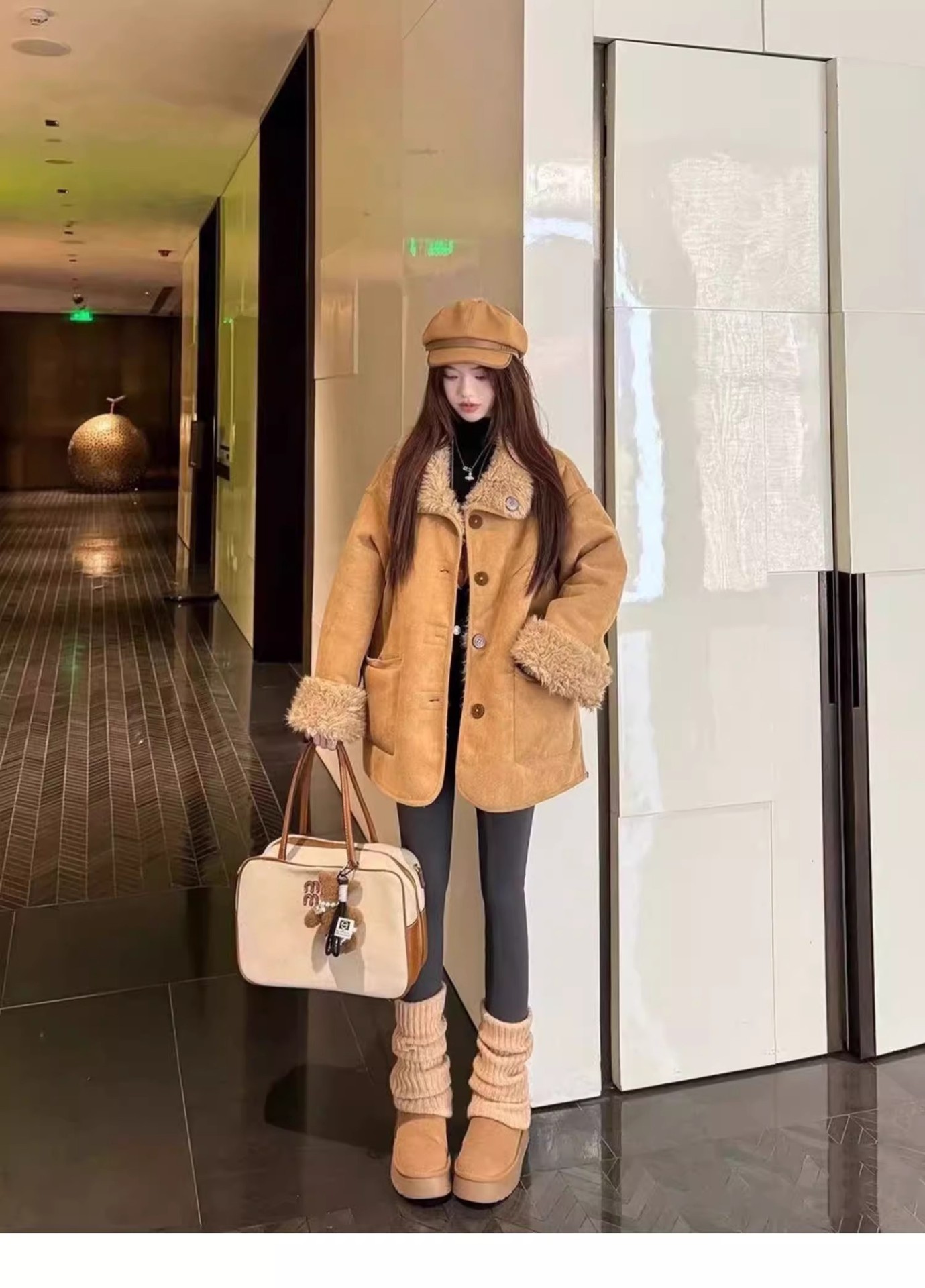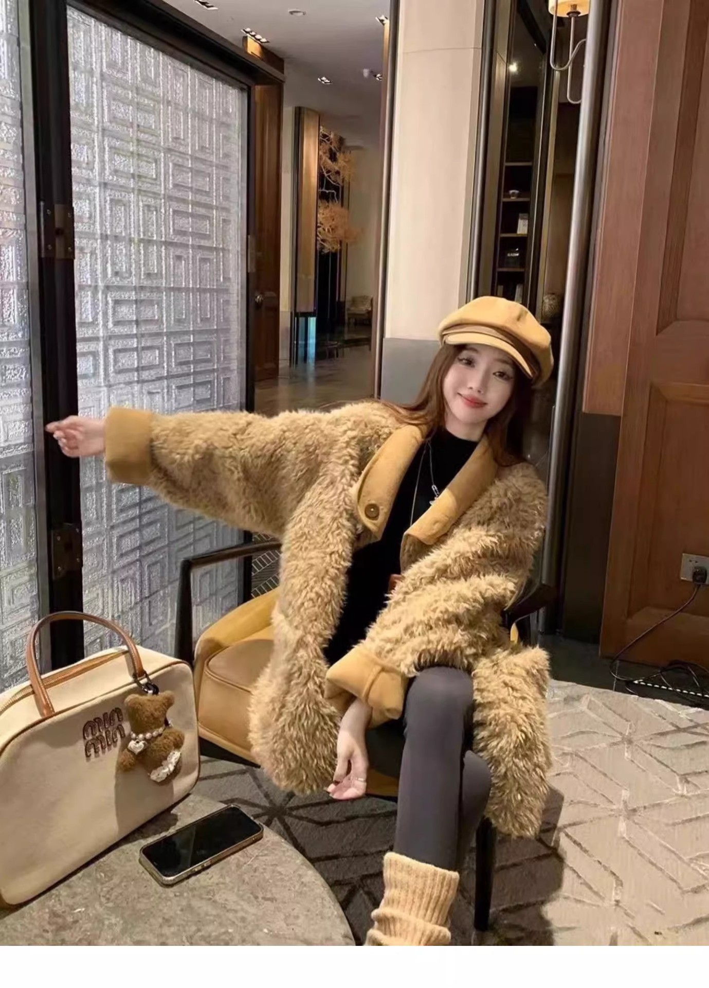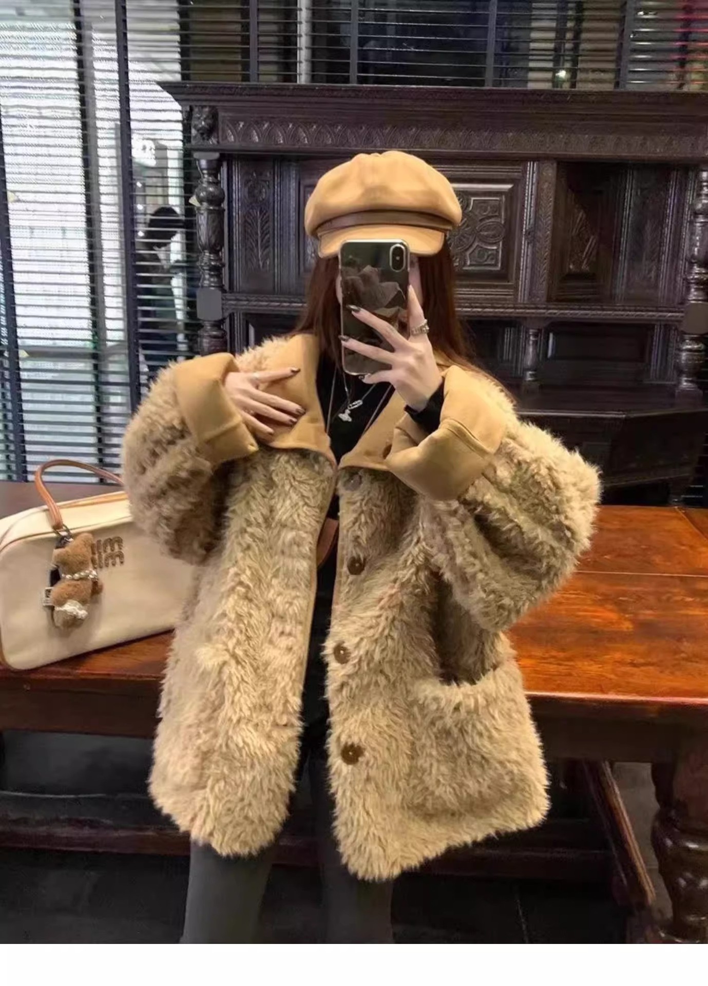 【温暖包裹❗️质感双面】复古麂皮羊羔毛两面穿机车外套2025加厚皮毛宽松落肩帅飒出街神器。jb