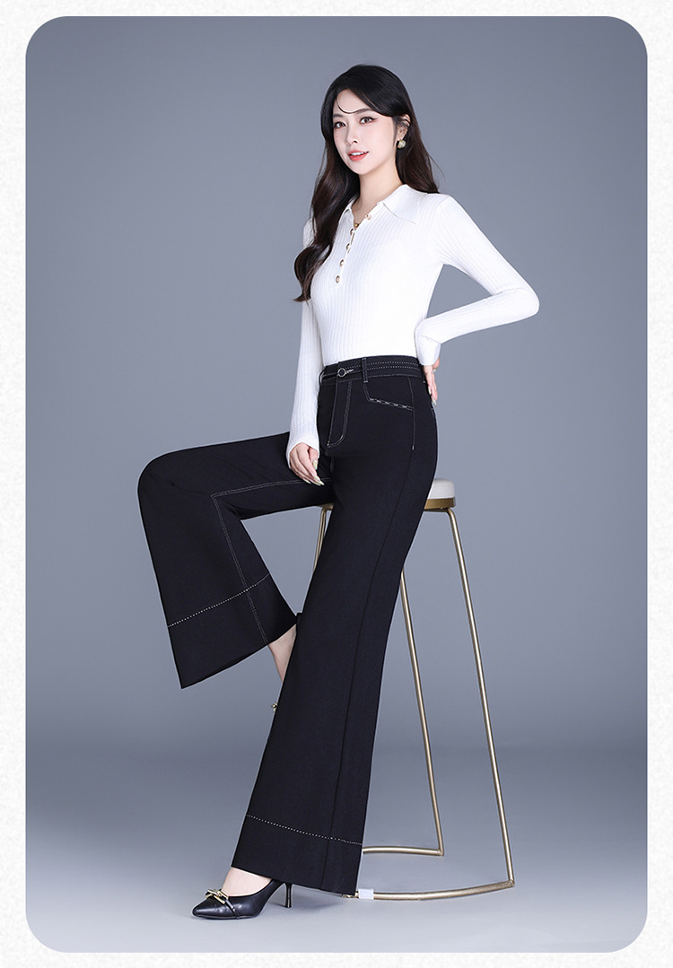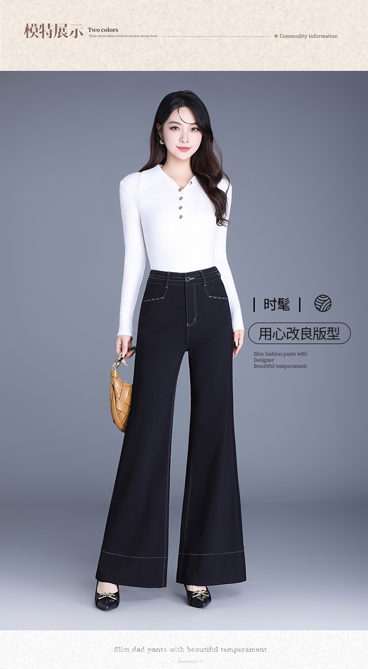 QYM 9848-Y高腰筒喇叭裤阔腿裤宽松休闲大码裤 商品图4