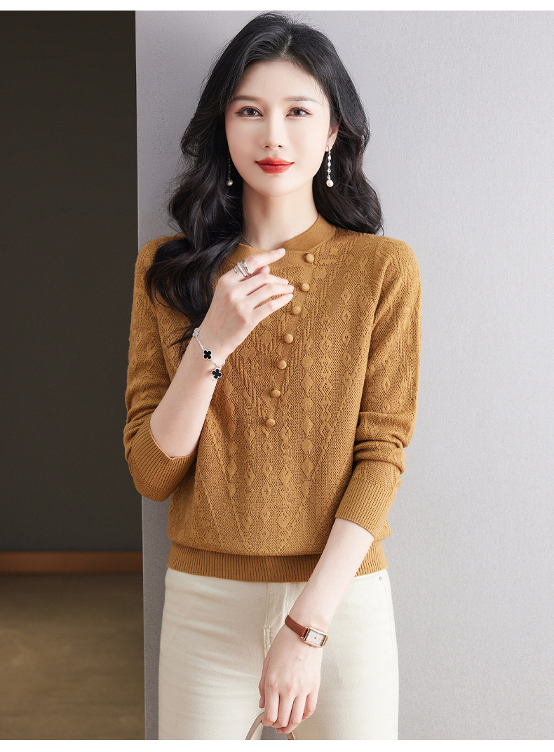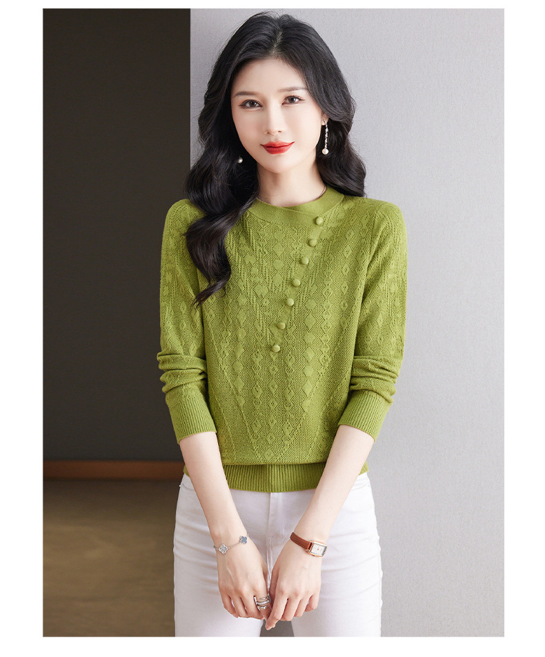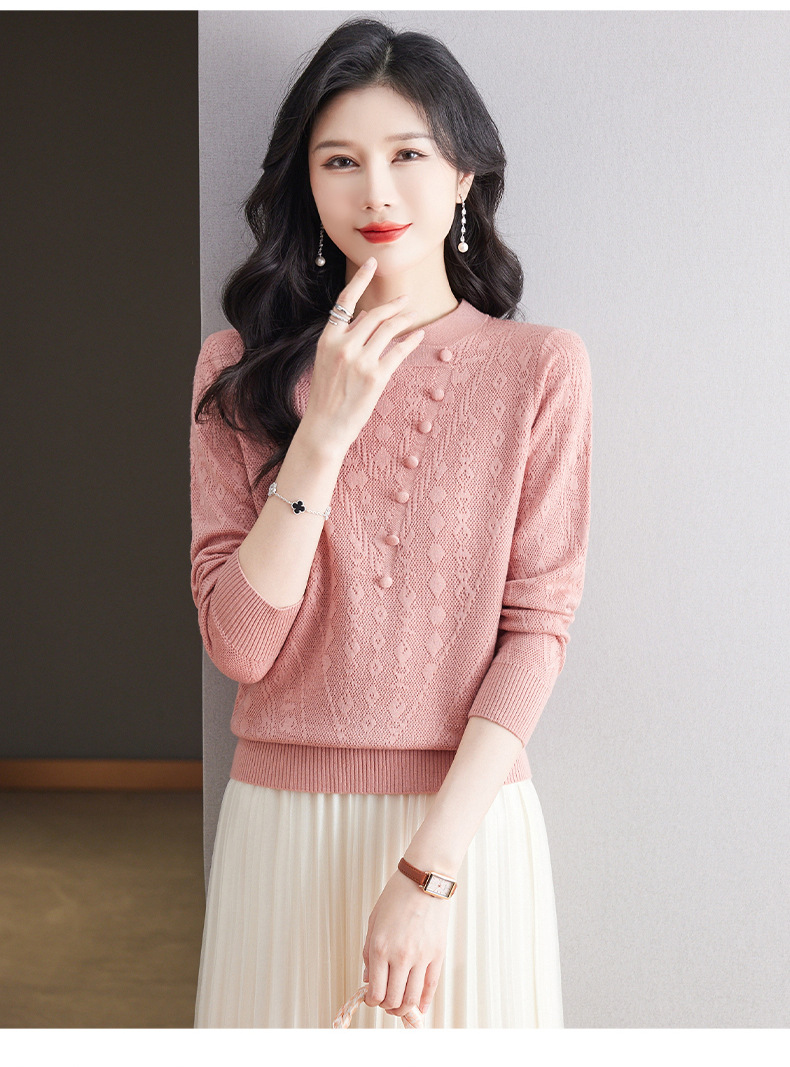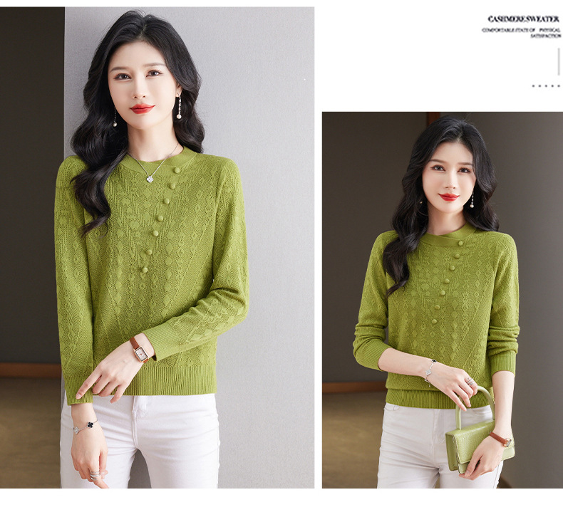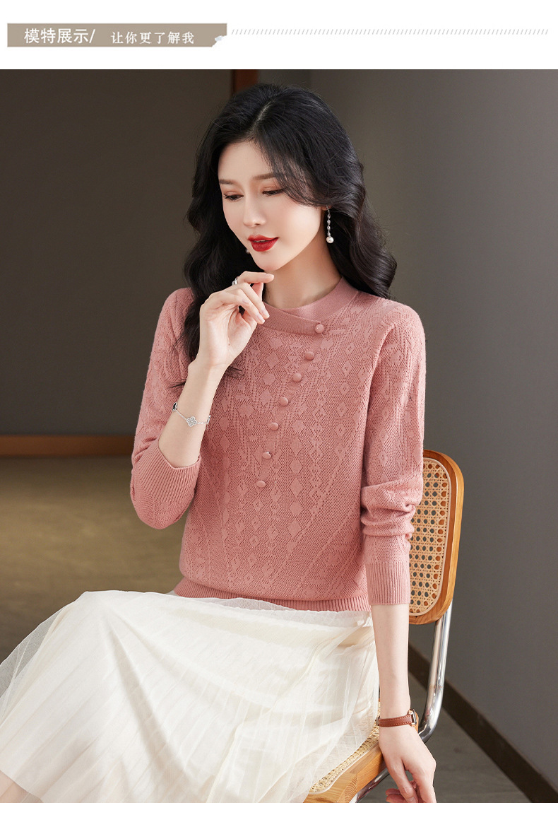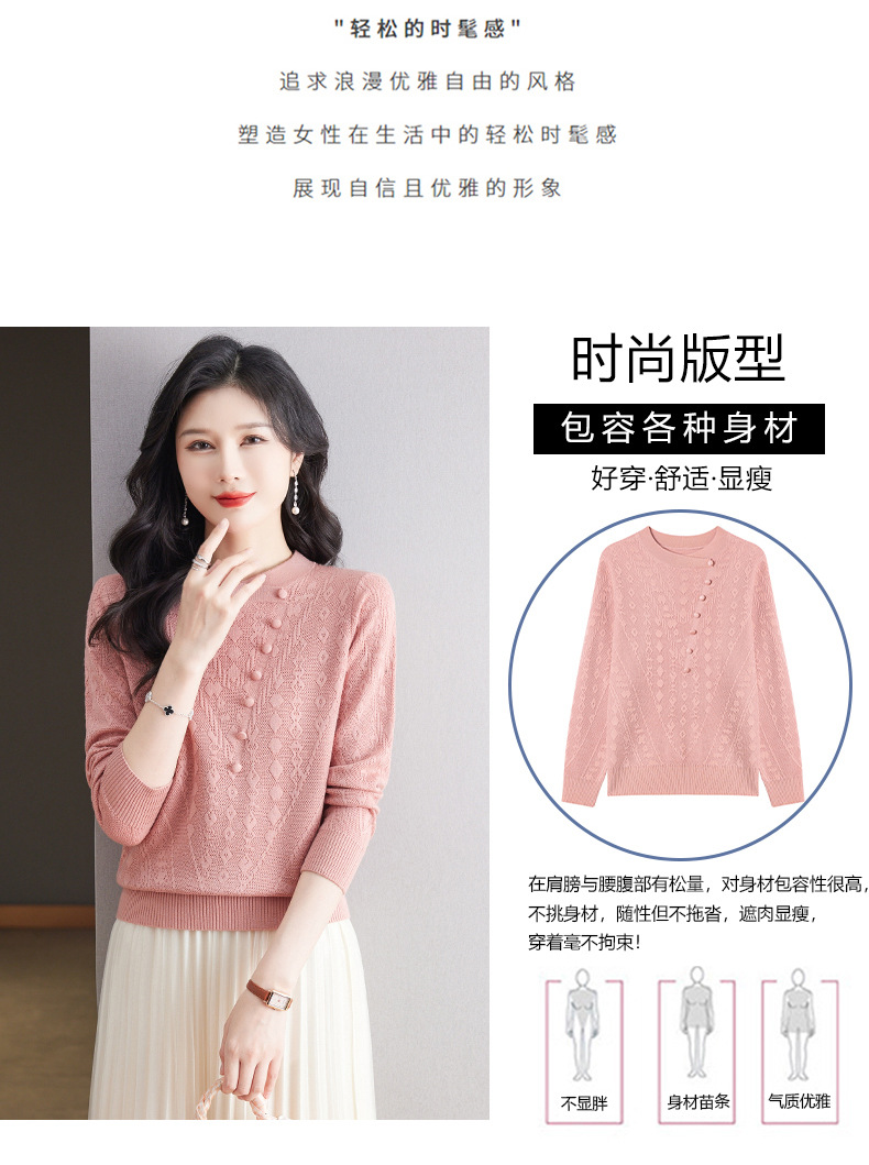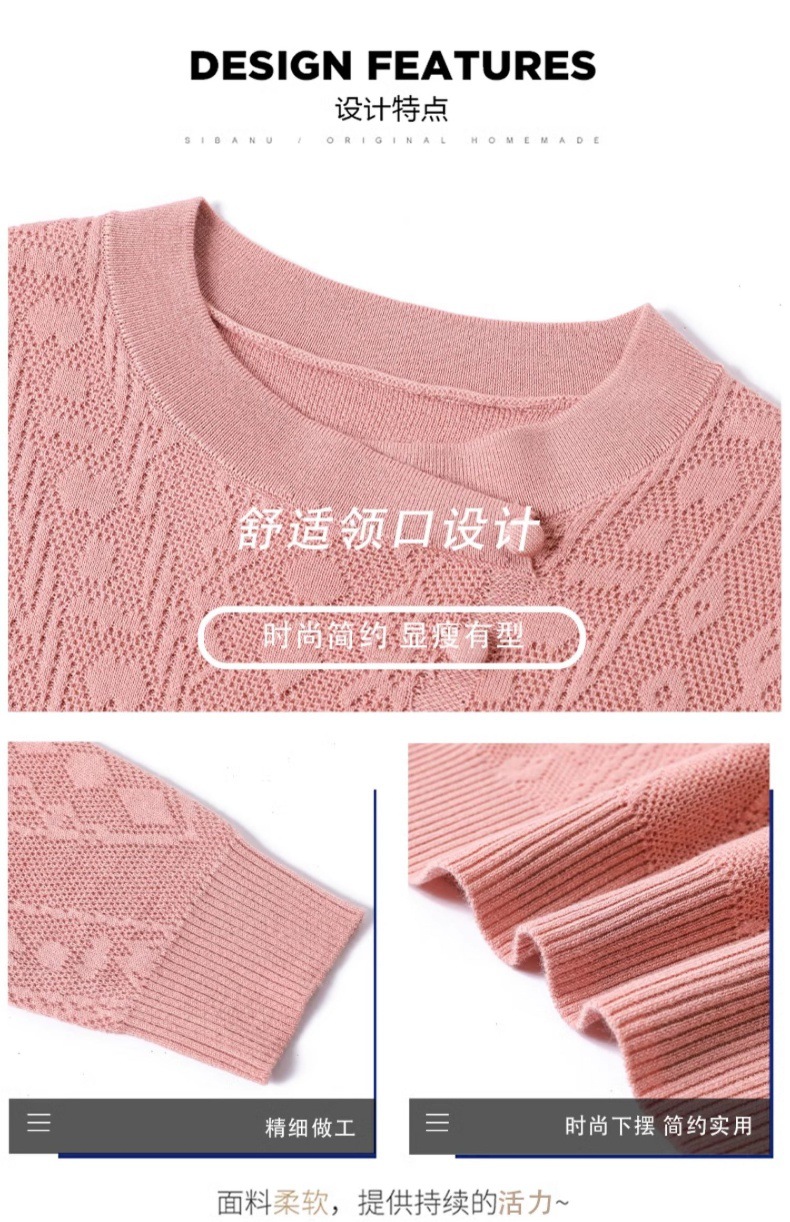 CC101-8330蕾丝针织打底衫女春秋长袖上衣春装2024年新款中年妈妈毛衣薄春秋