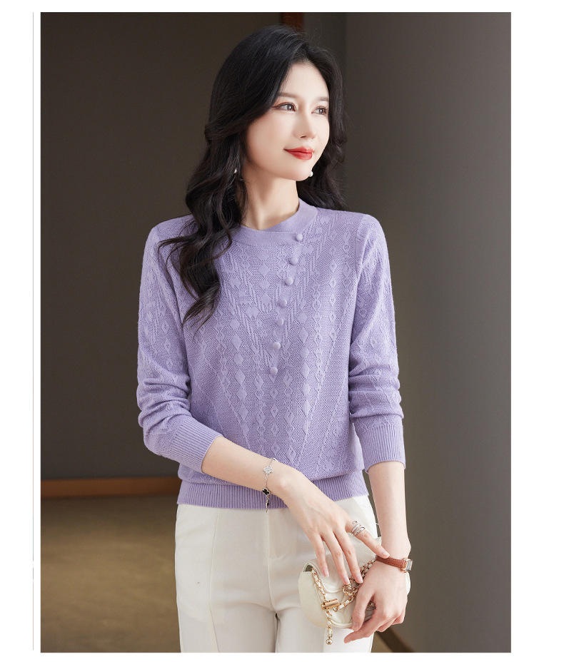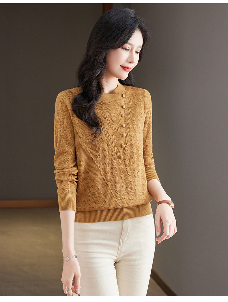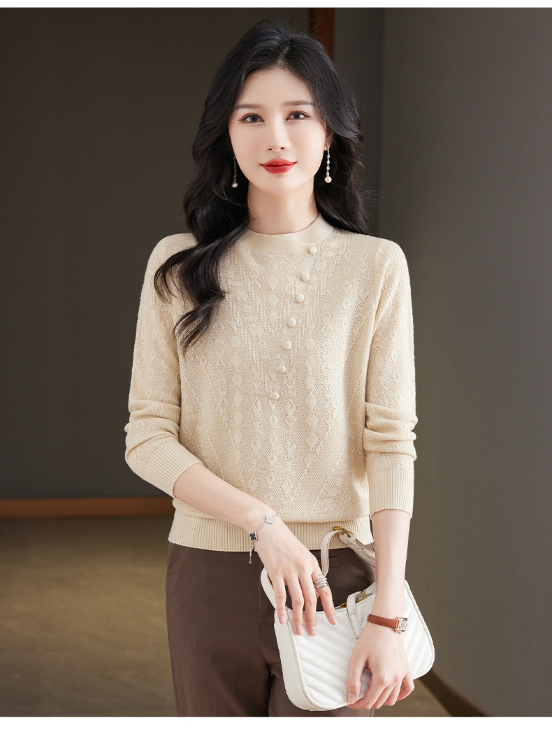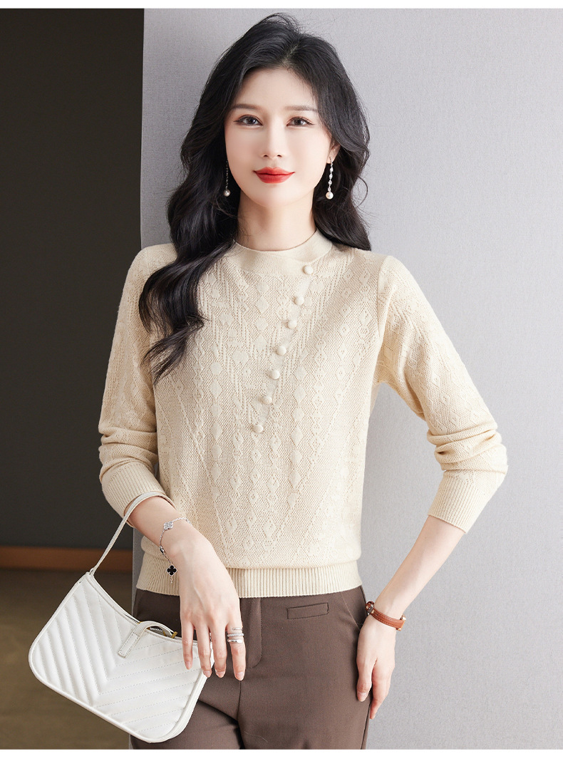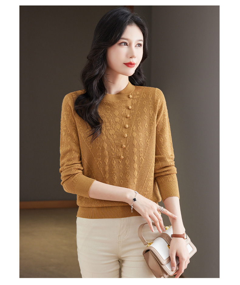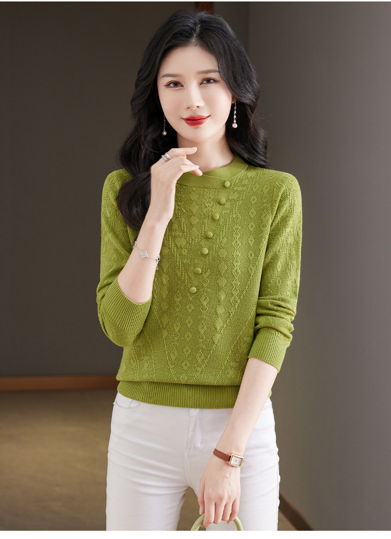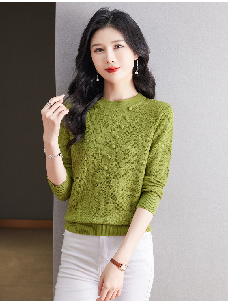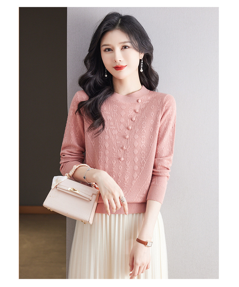 CC101-8330蕾丝针织打底衫女春秋长袖上衣春装2024年新款中年妈妈毛衣薄春秋