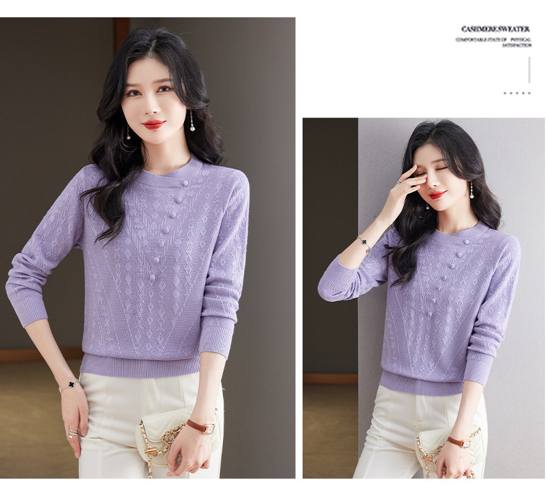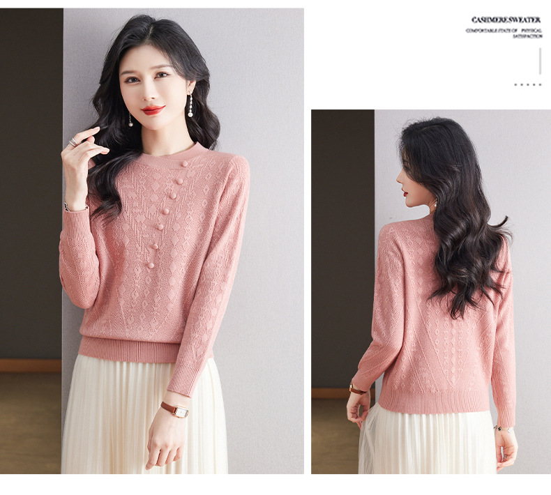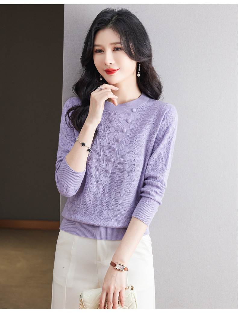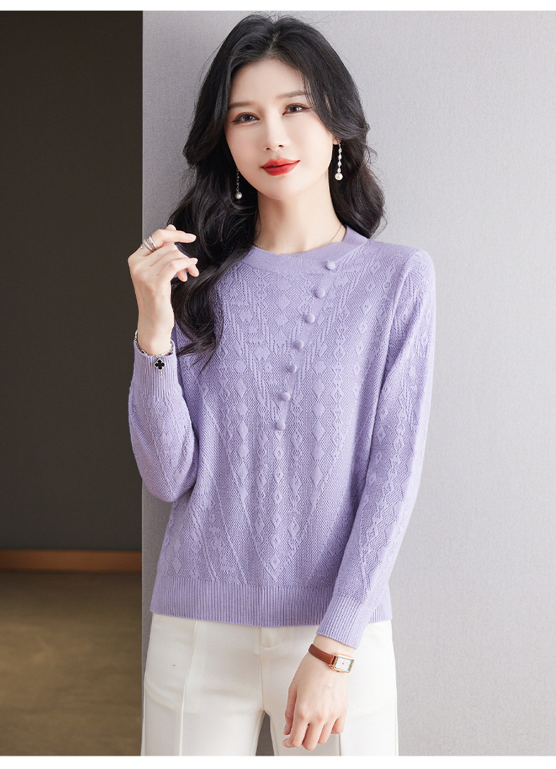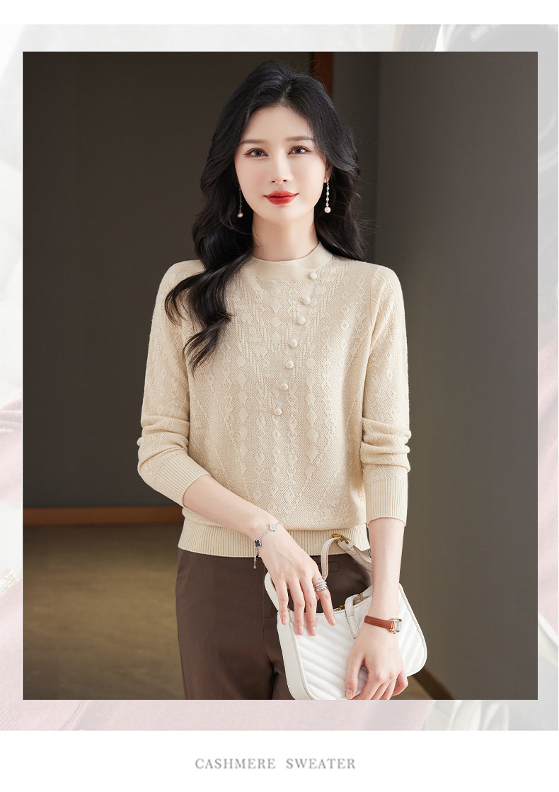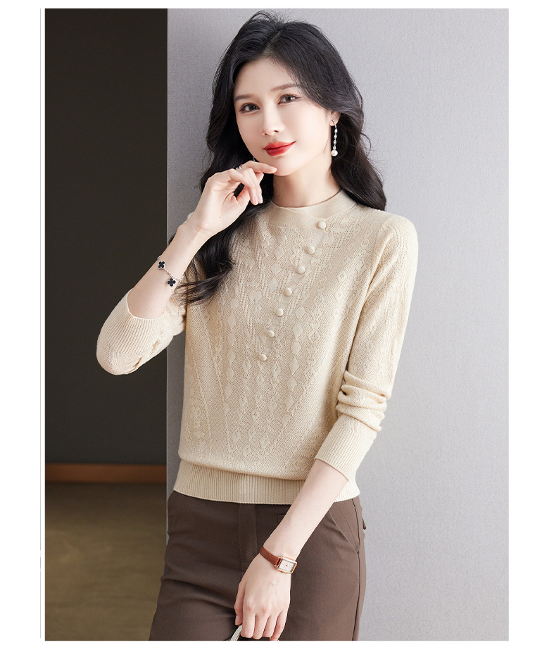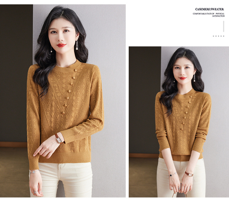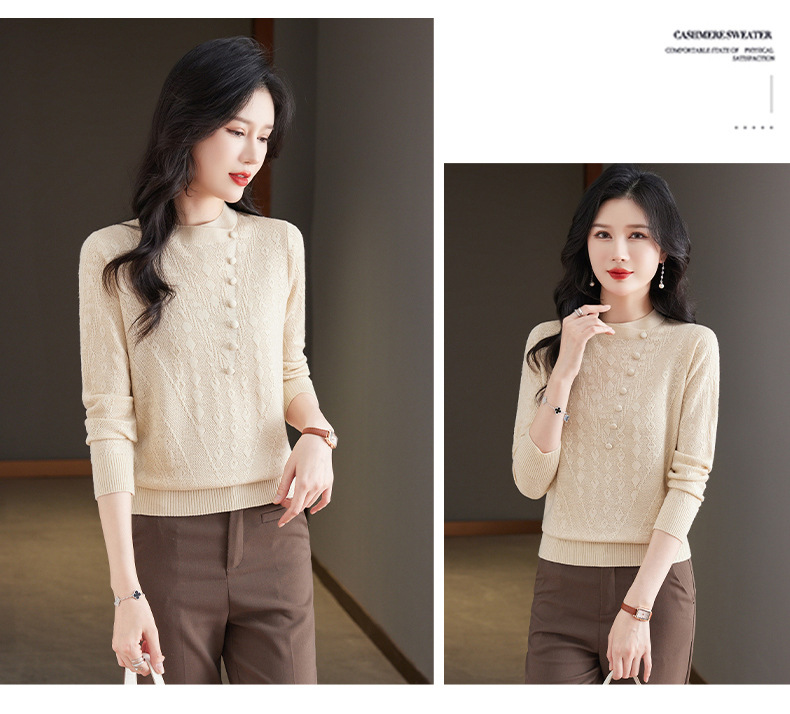 CC101-8330蕾丝针织打底衫女春秋长袖上衣春装2024年新款中年妈妈毛衣薄春秋
