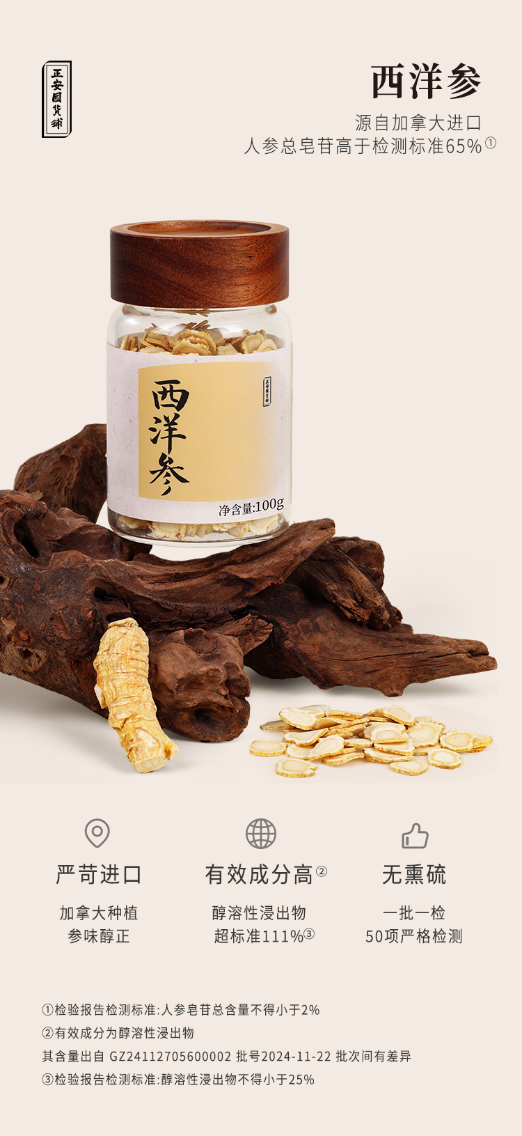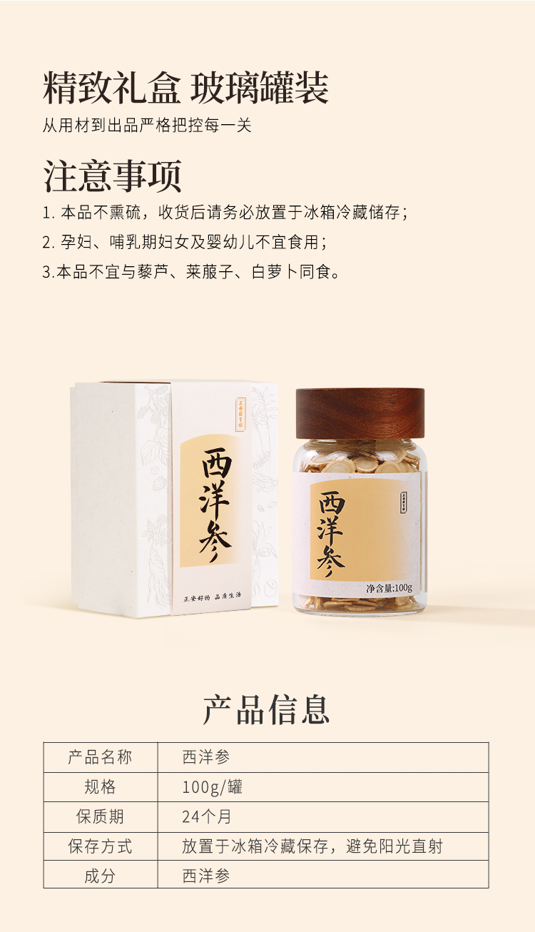 正安原材·加拿大进口西洋参 足龄种植4-5年采挖 优质原材 主根横切圆片 参味醇正 100g/罐【冷藏保存】