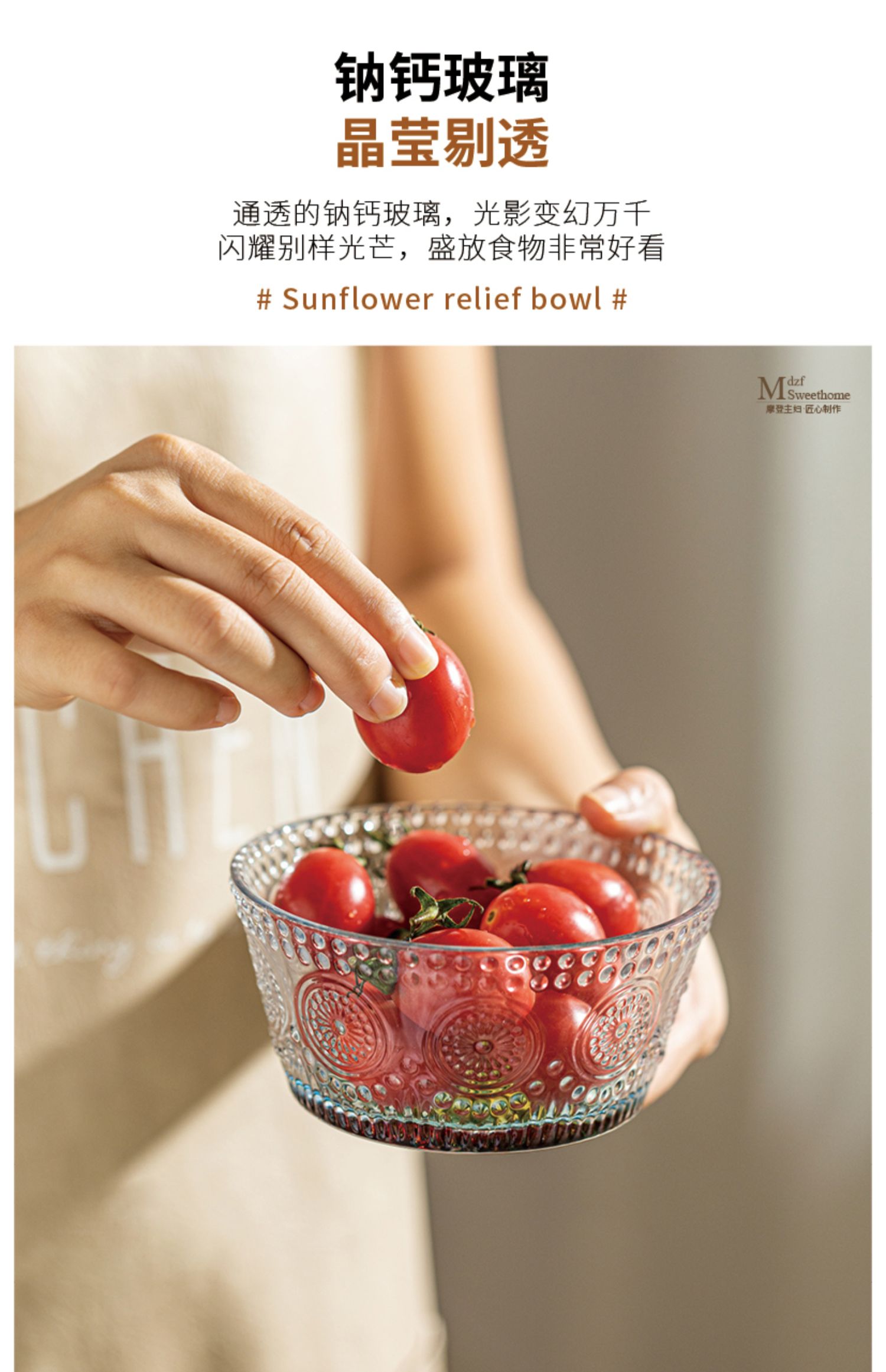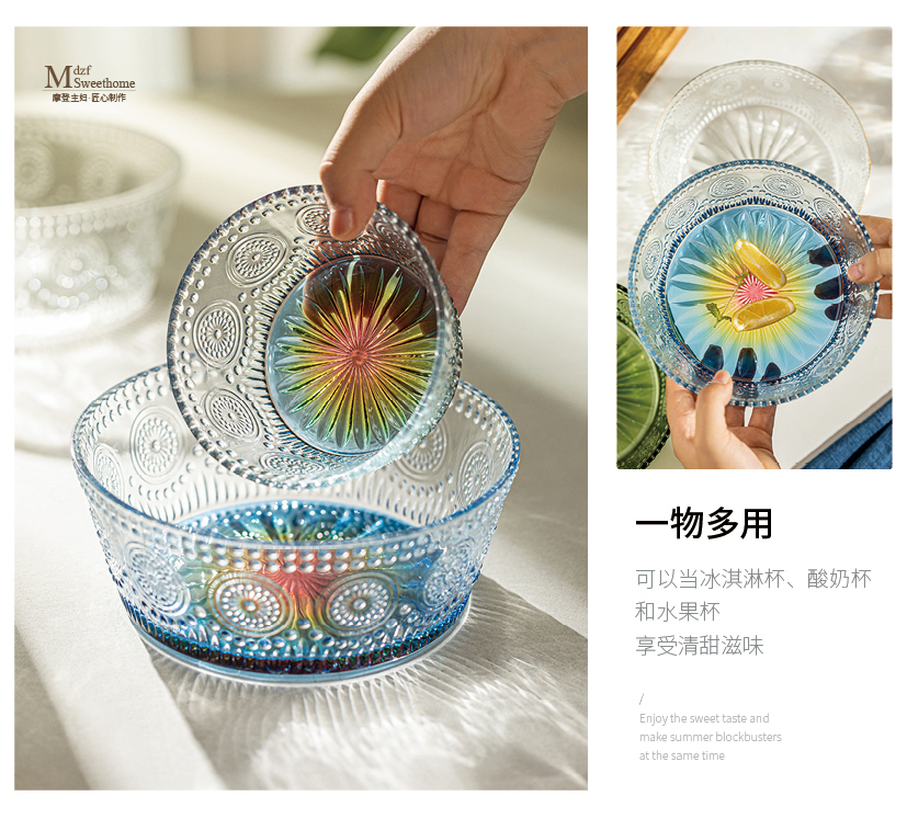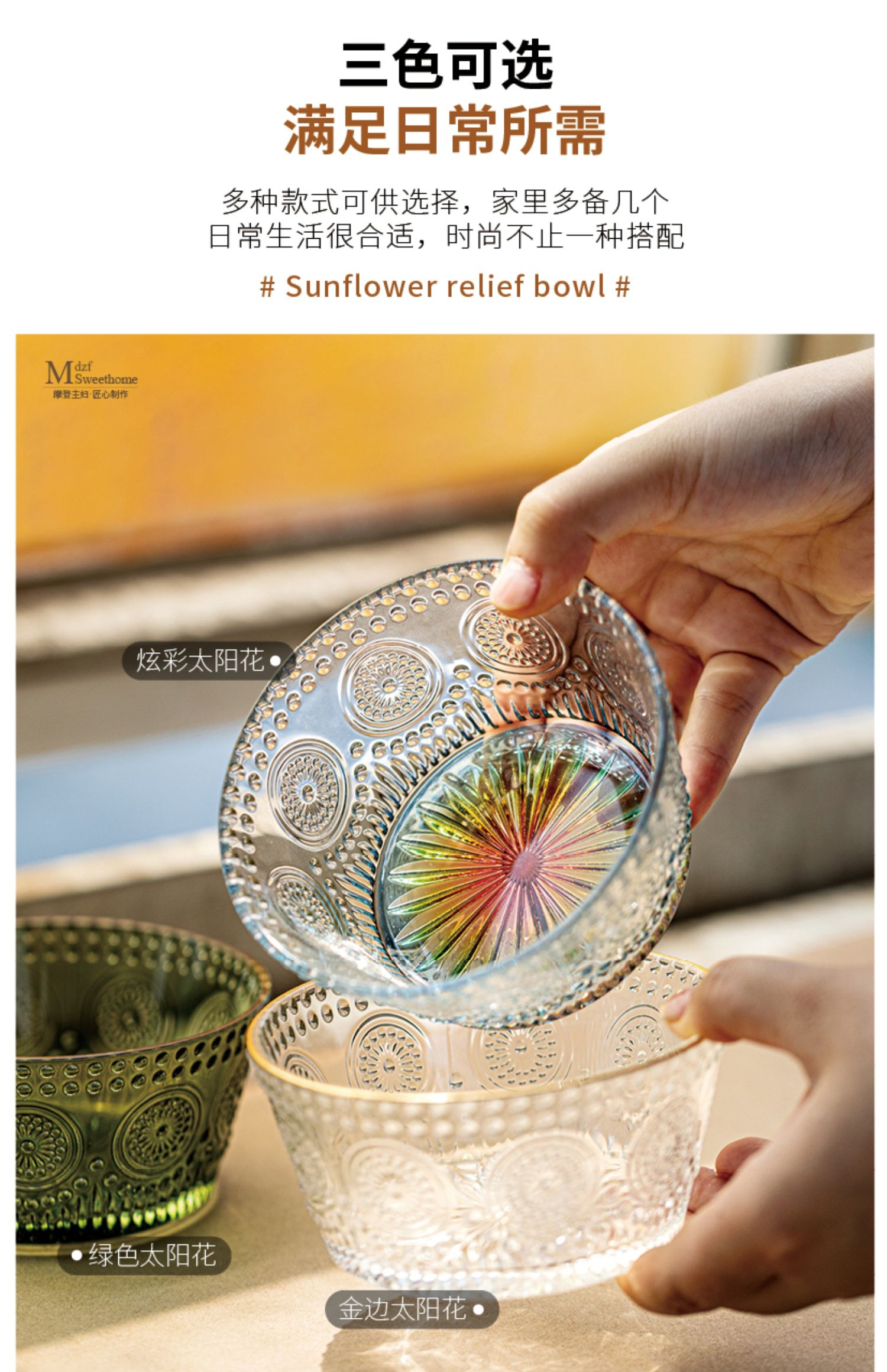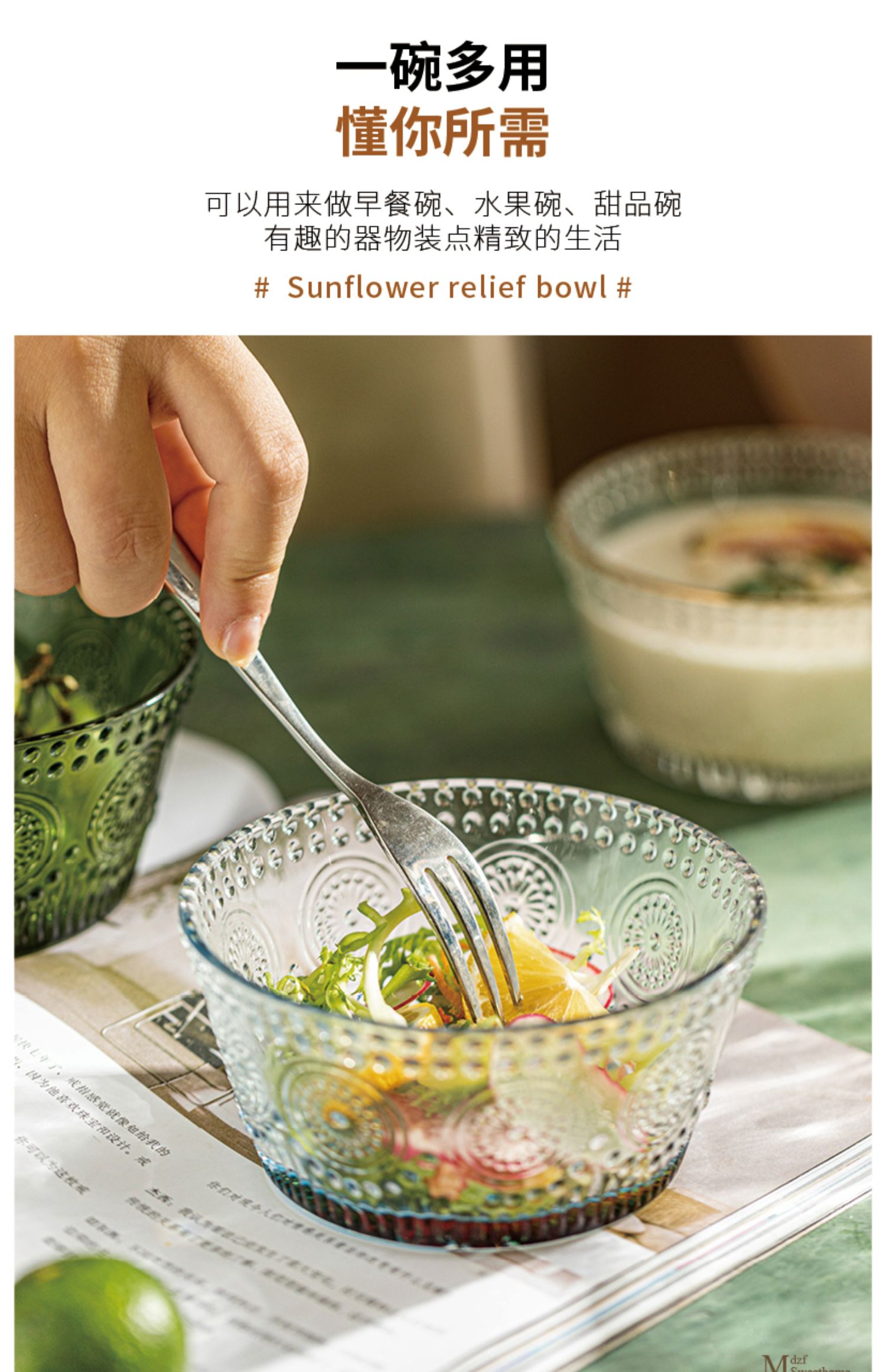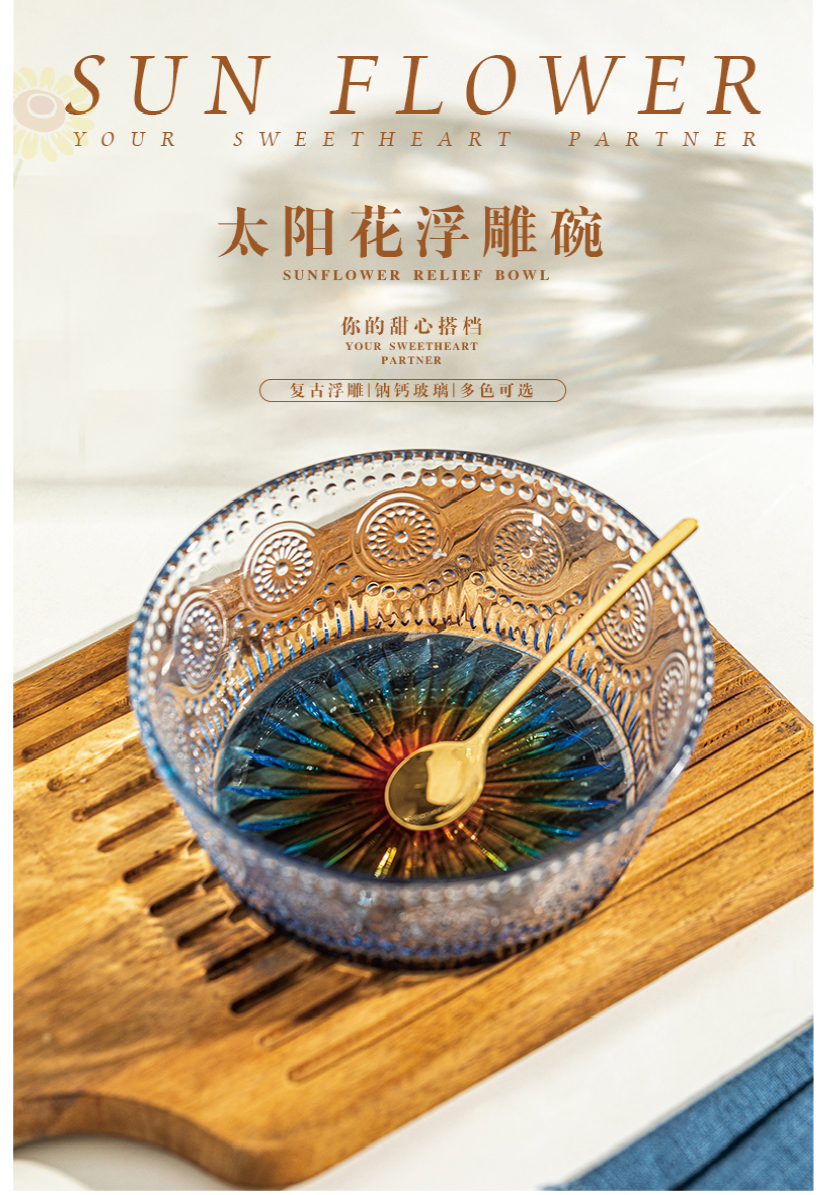 摩登主妇太阳花玻璃碗轻奢冰淇淋碗餐具家用高颜值甜品小碗沙拉碗