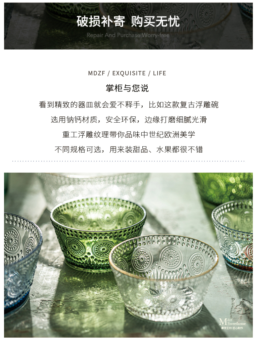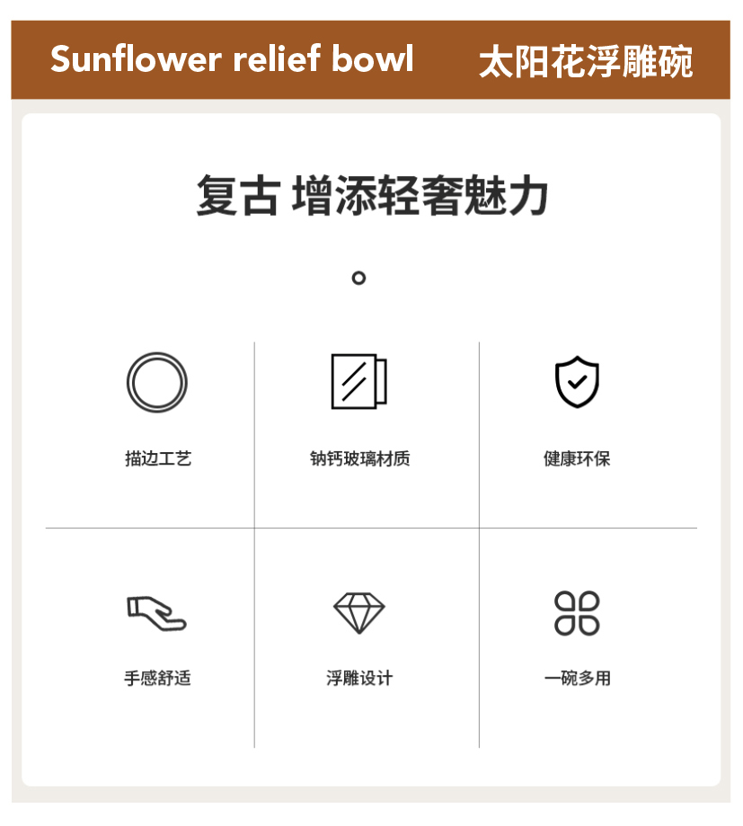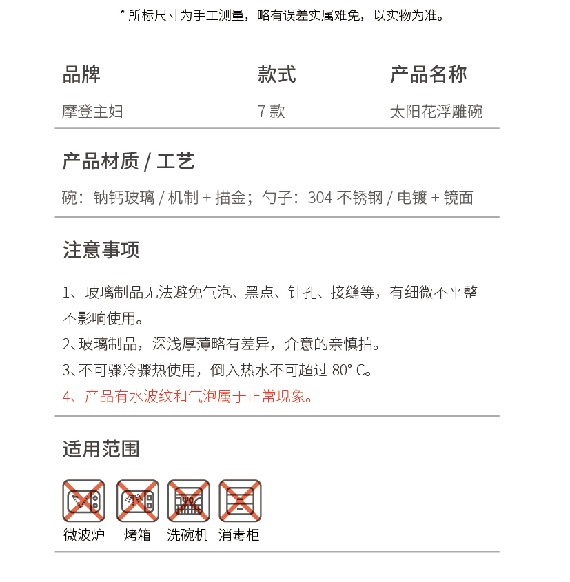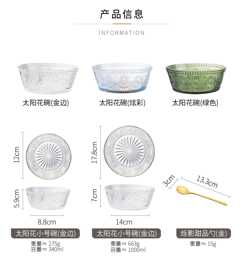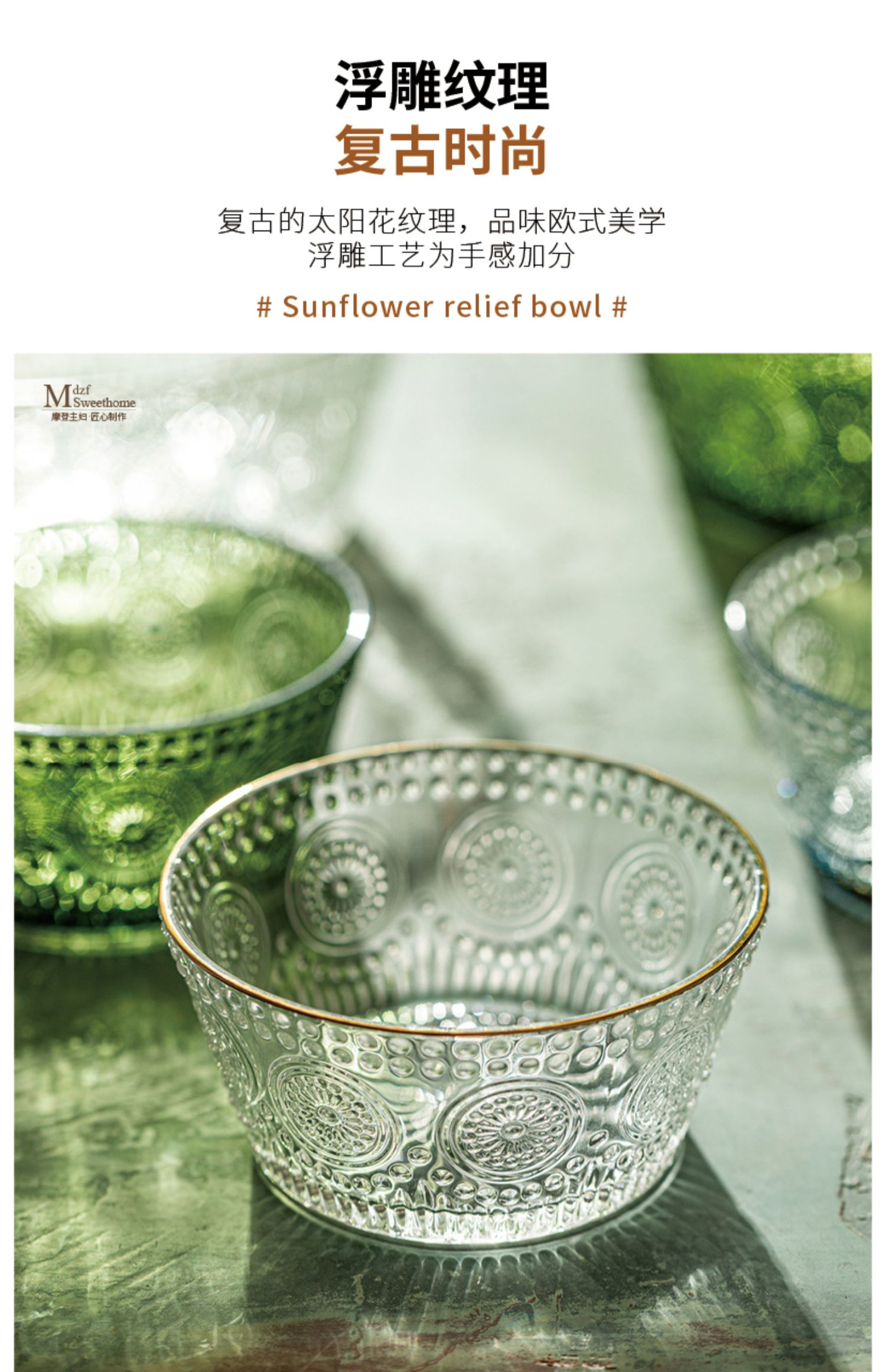摩登主妇太阳花玻璃碗轻奢冰淇淋碗餐具家用高颜值甜品小碗沙拉碗