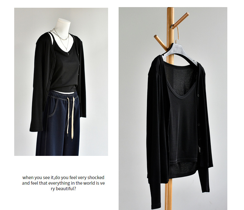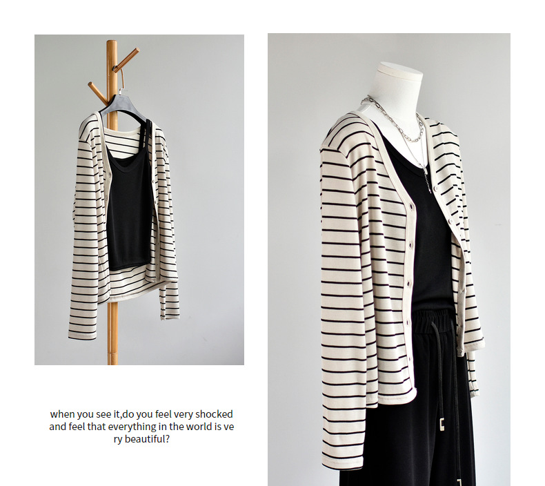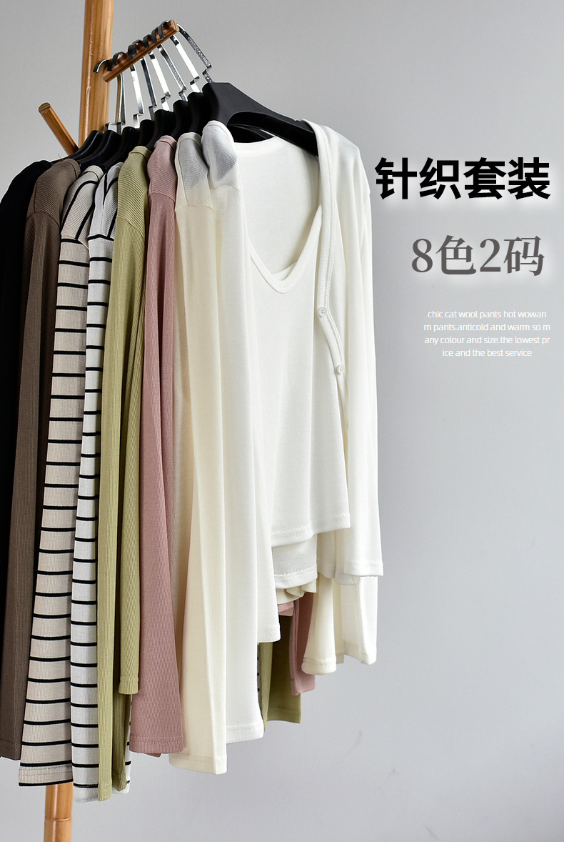丁摩 【开衫套装】春季新款女装针织开衫吊带上衣开衫套装女空调衫5ZF-208