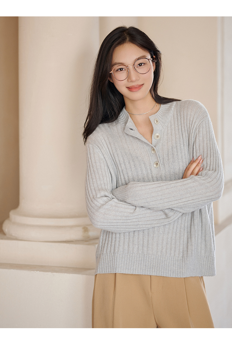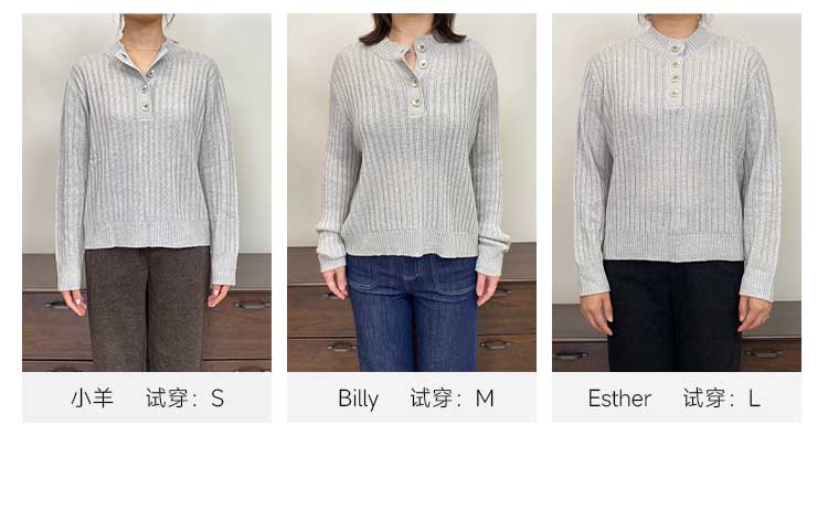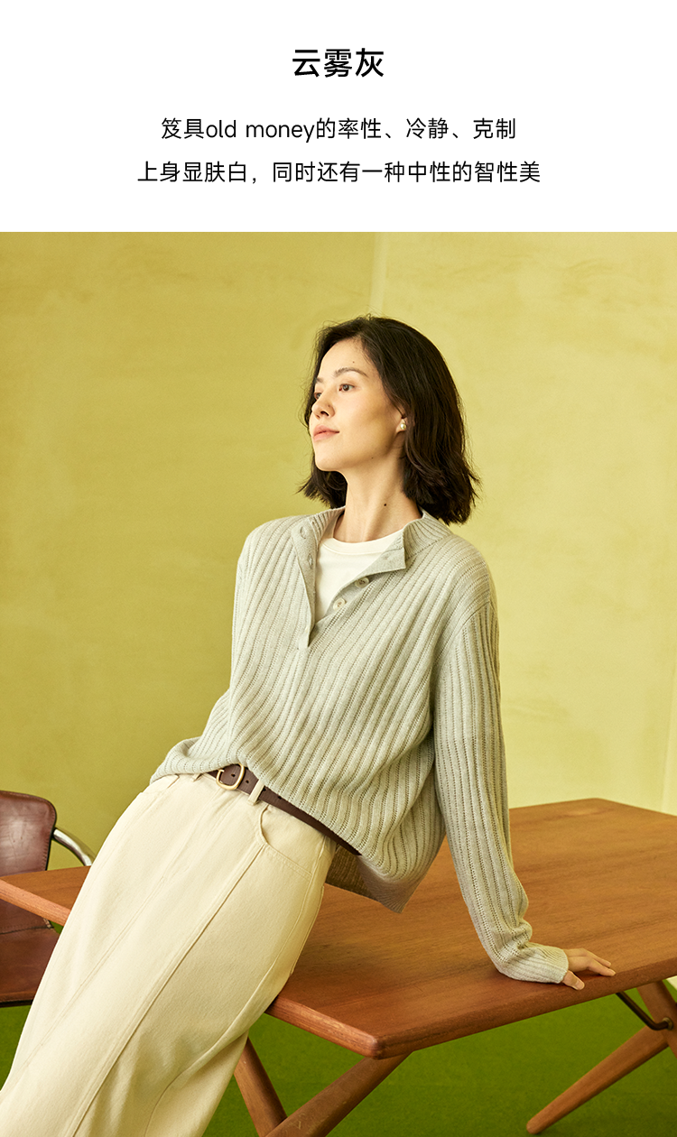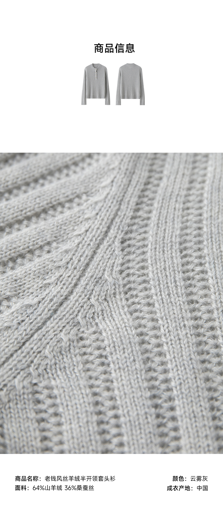 老钱风丝羊绒半开领套头衫FCE3WST038