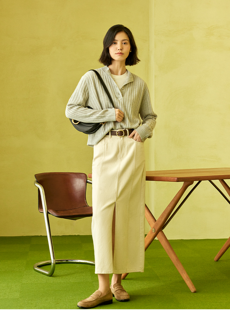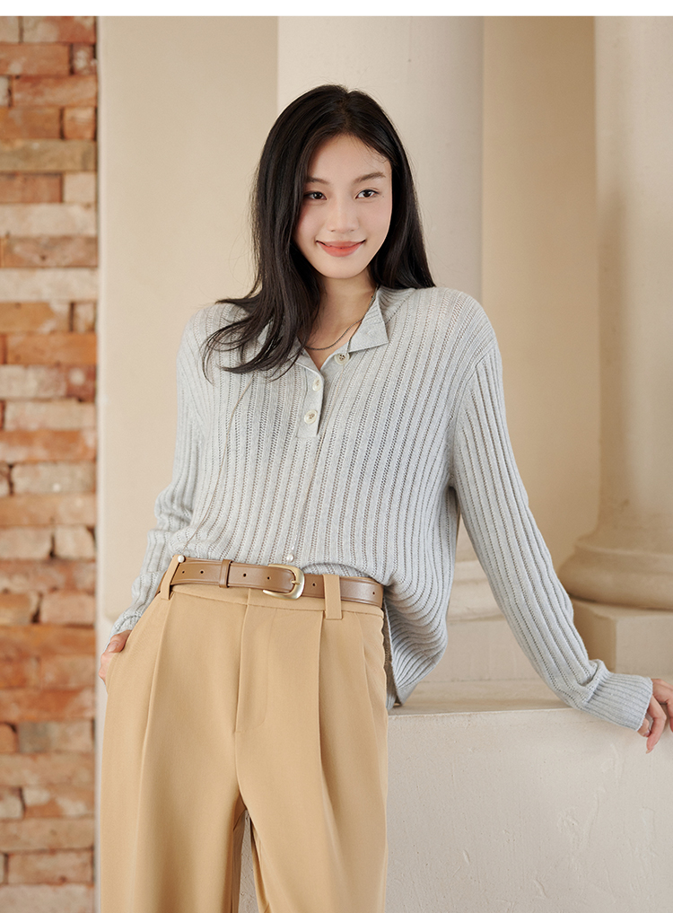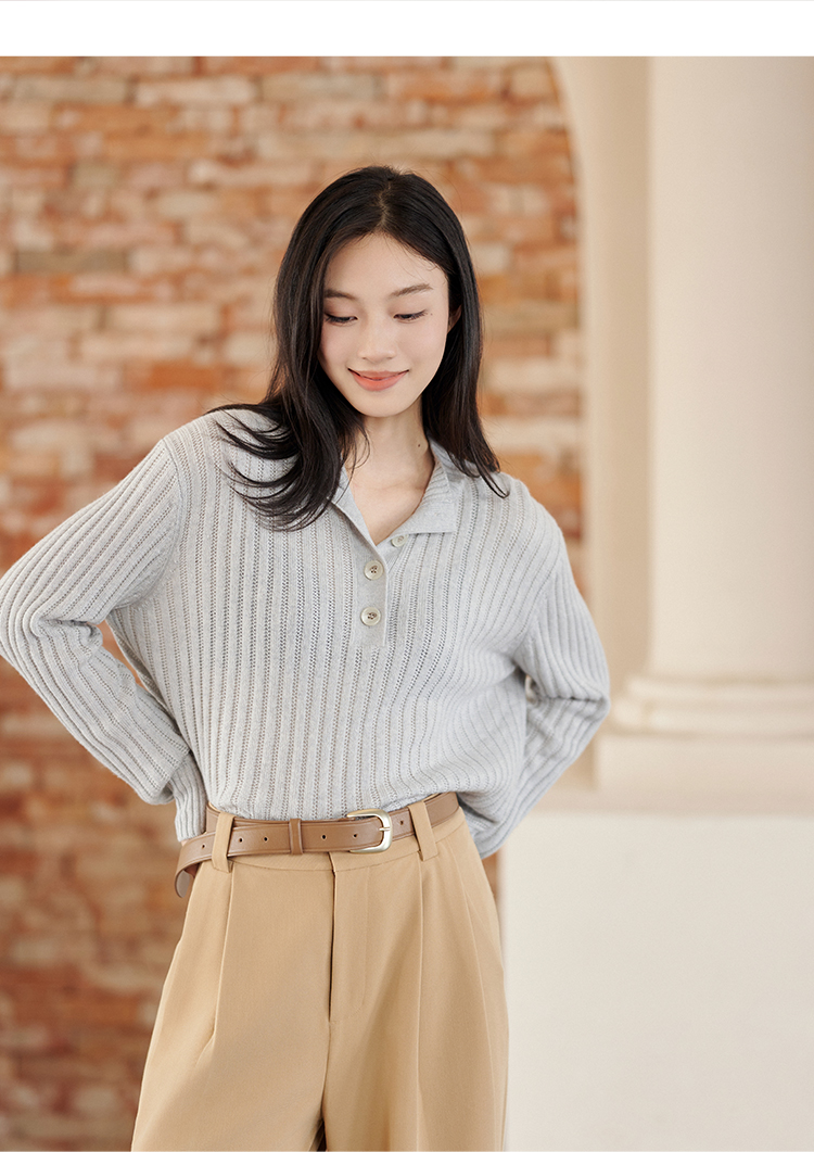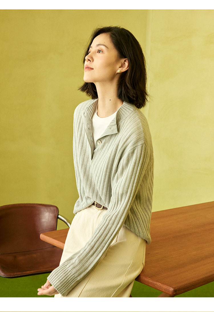 老钱风丝羊绒半开领套头衫FCE3WST038