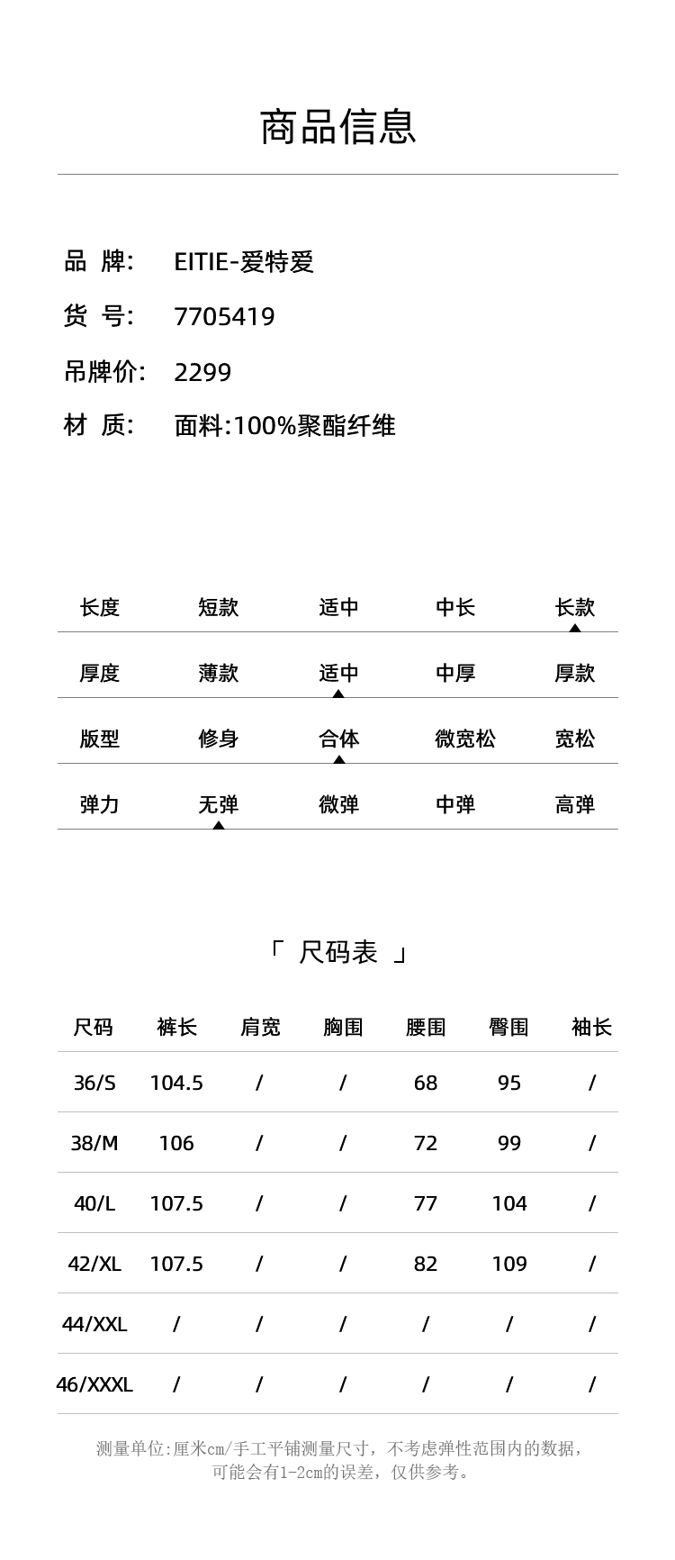 EITIE爱特爱春季新品高腰修身干练裤子7705419