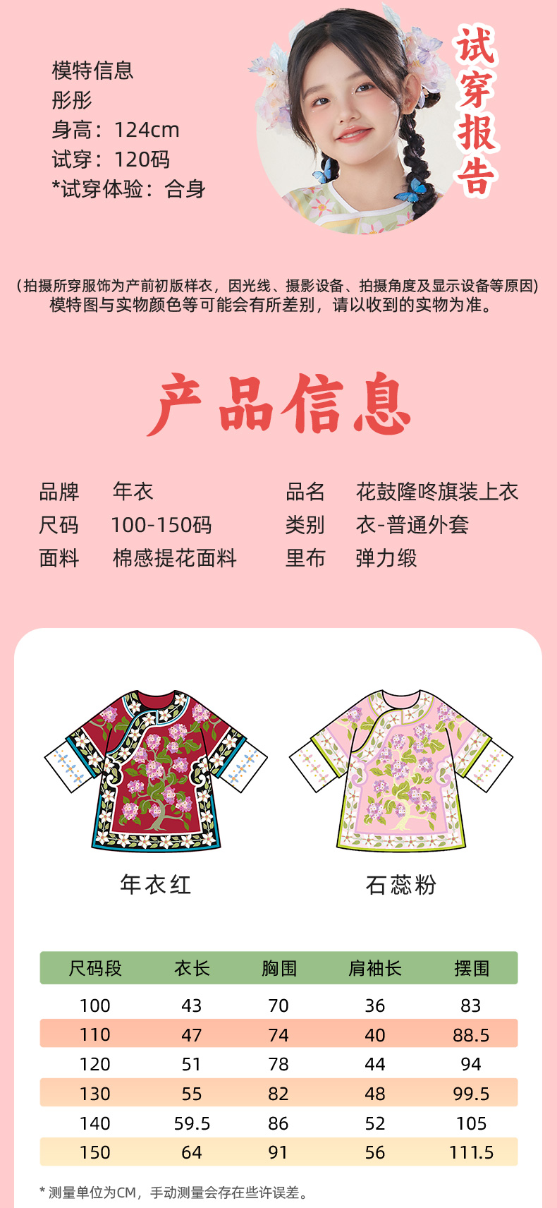 【年衣】童装女童旗袍汉服2025年秋季新款国风唐装上衣外套儿童格格服花鼓隆咚旗装上衣