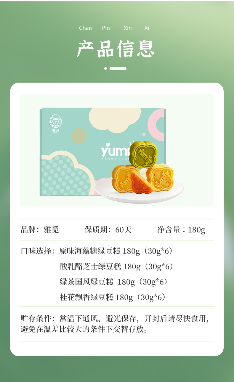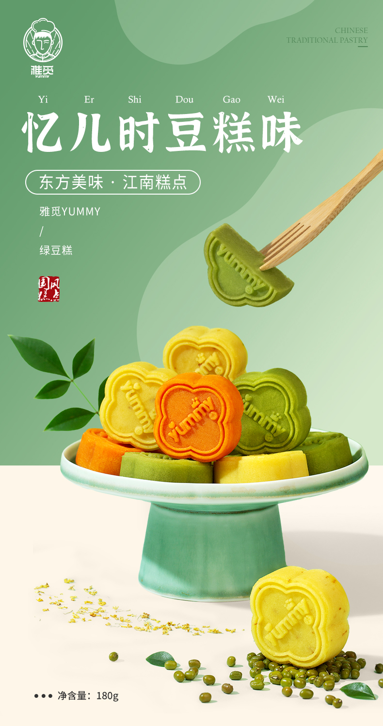 雅觅 多口味绿豆糕 原味/绿茶/桂花/酸乳酪芝士 海藻糖绿豆饼老式传统糕点特产点心小吃茶点 甜点小零食