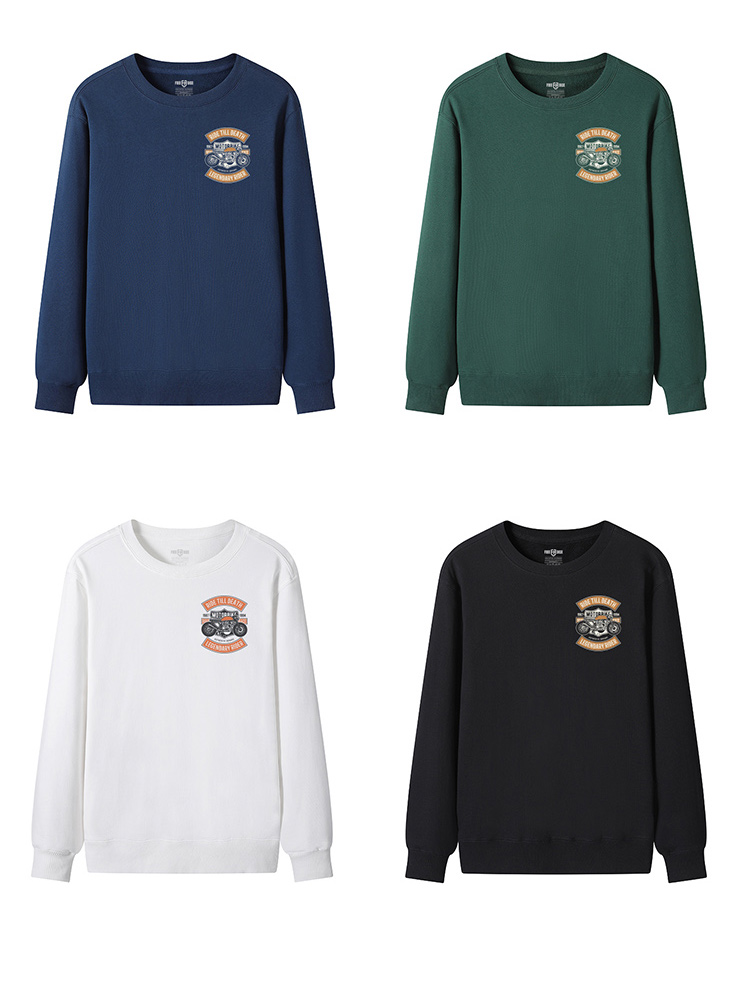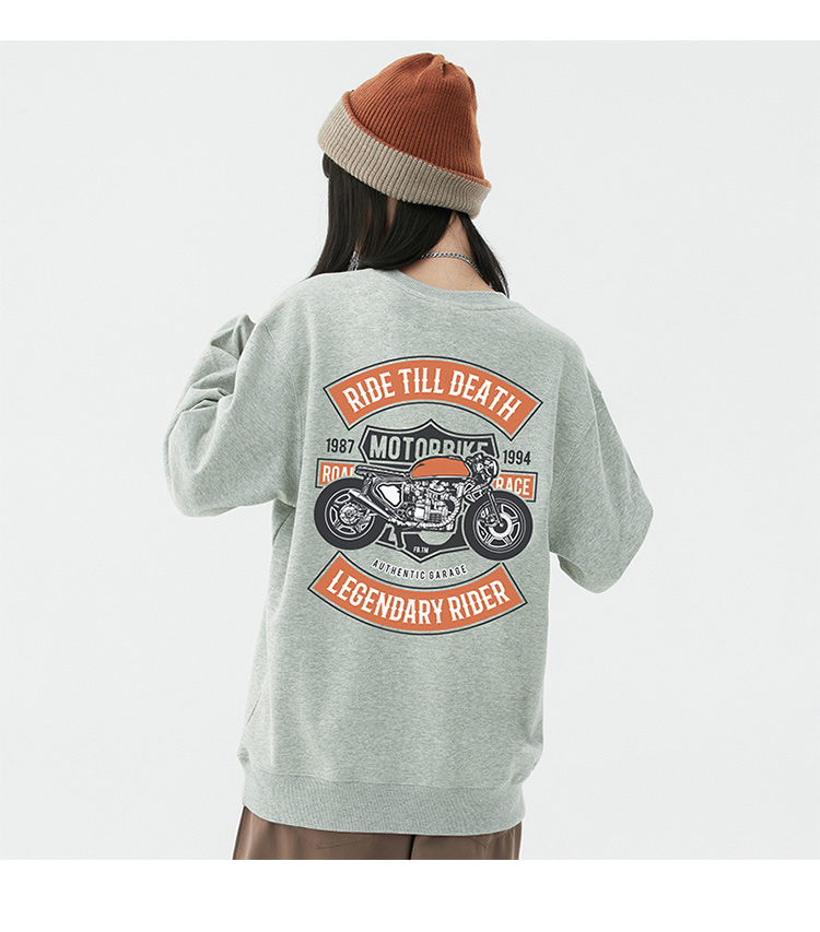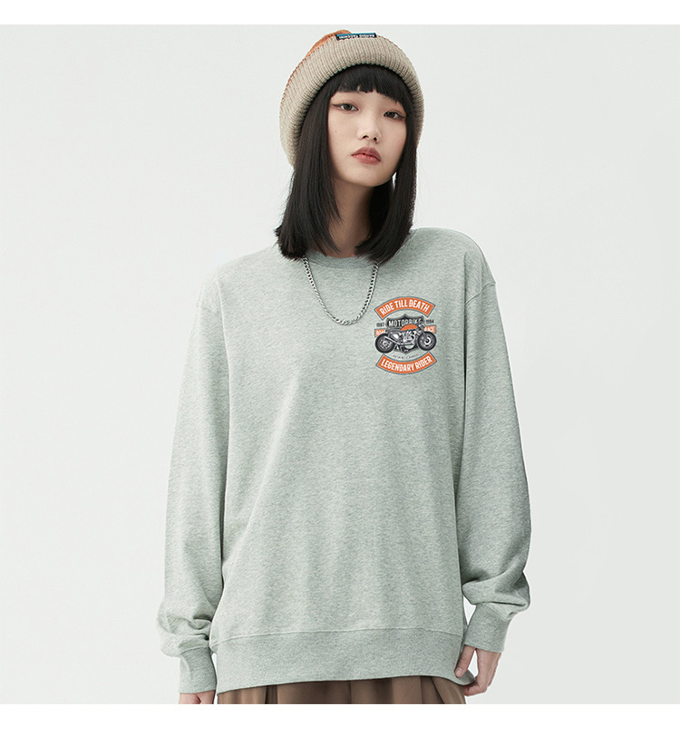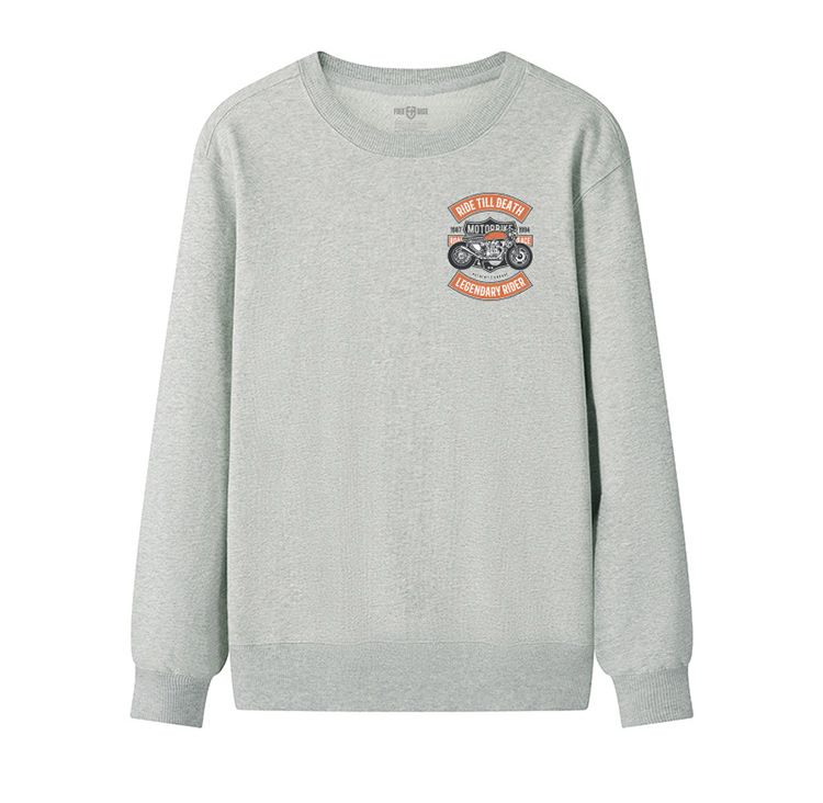 自由基地男装机车风系列图案设计圆领套头卫衣情侣合体毛圈料服装 NMT-1896