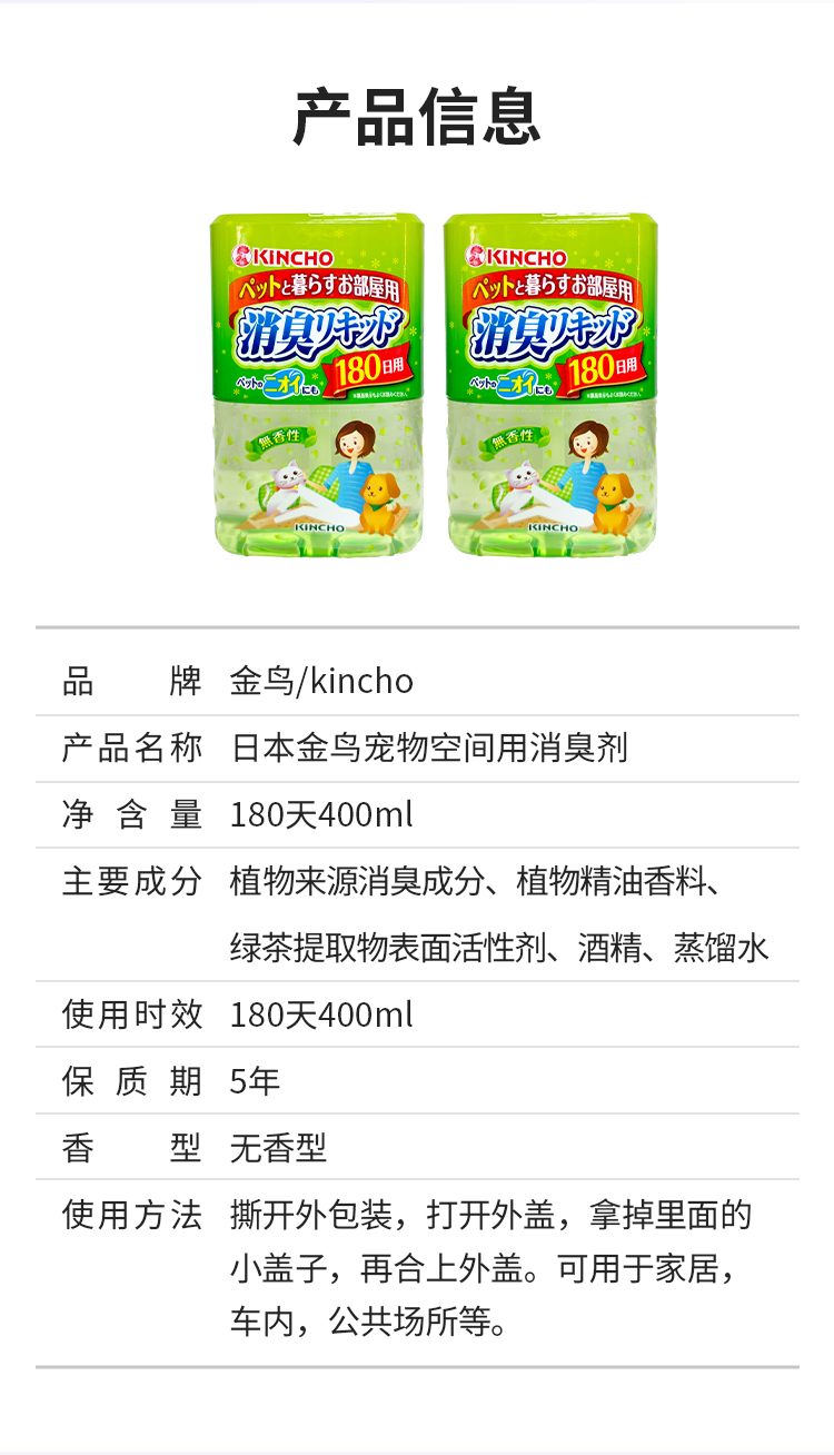 【品牌直发】kincho日本金鸟室内空气清新剂持久清香厕所宠物家用车内除臭香薰
