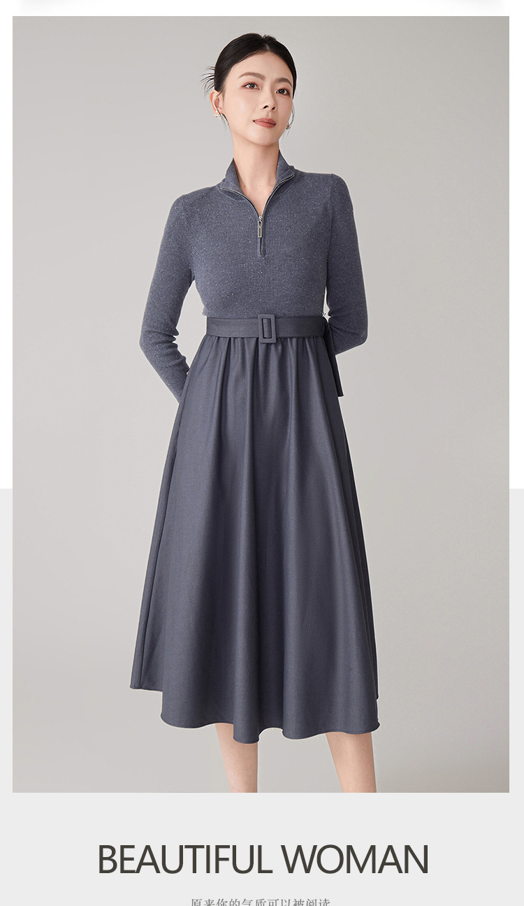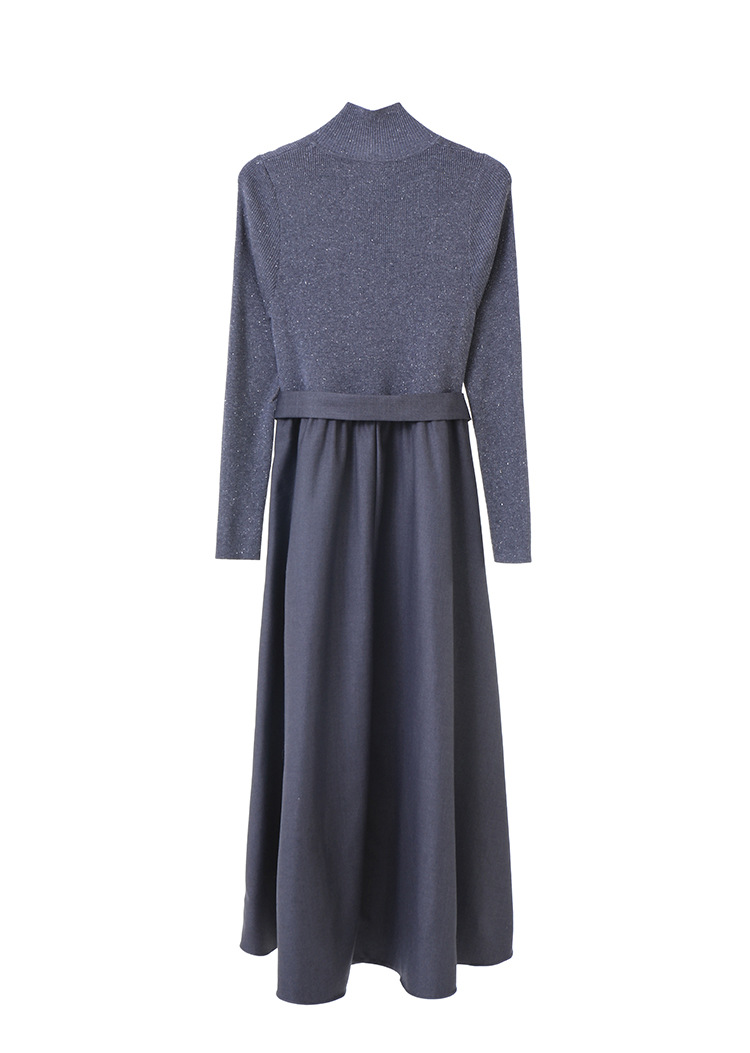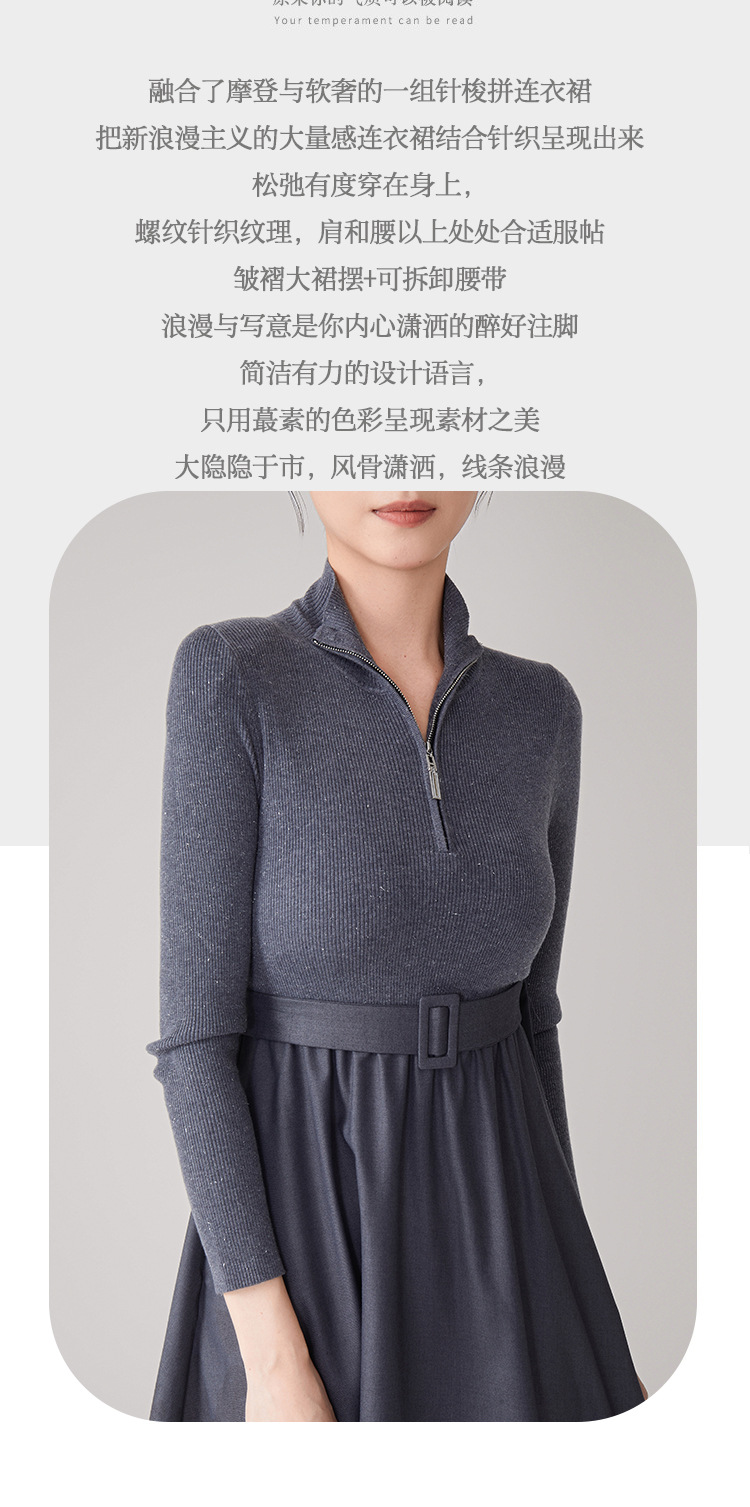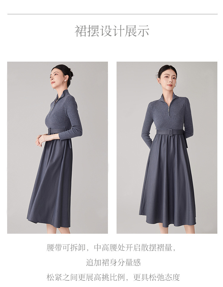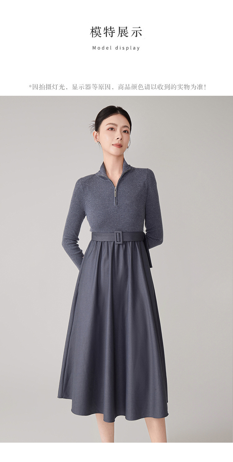 【hr】全新升级【铂金会员367/天猫499/差价132】(32714) 洛诗琳2024初秋新款时尚洋气长袖收腰高领拼接针织连衣裙