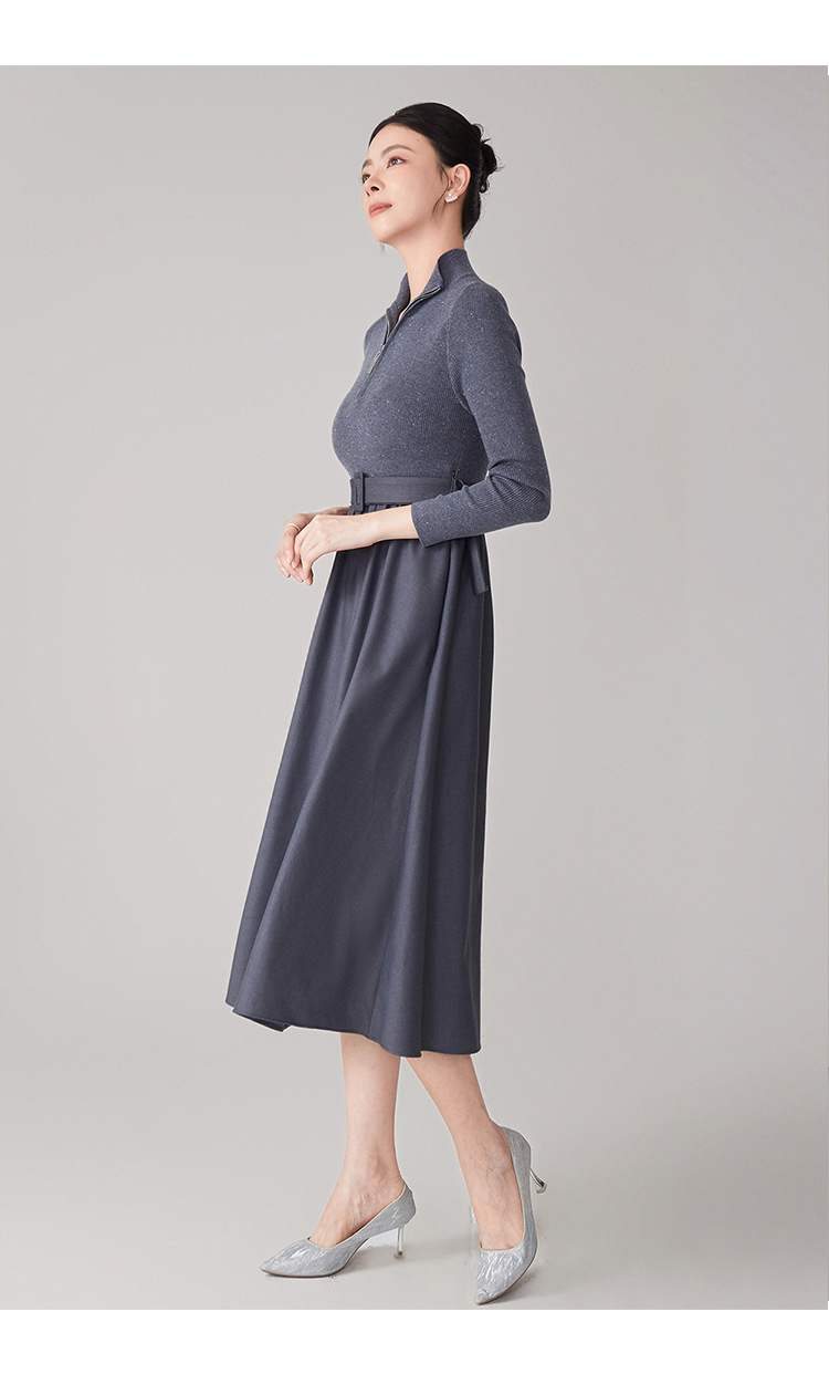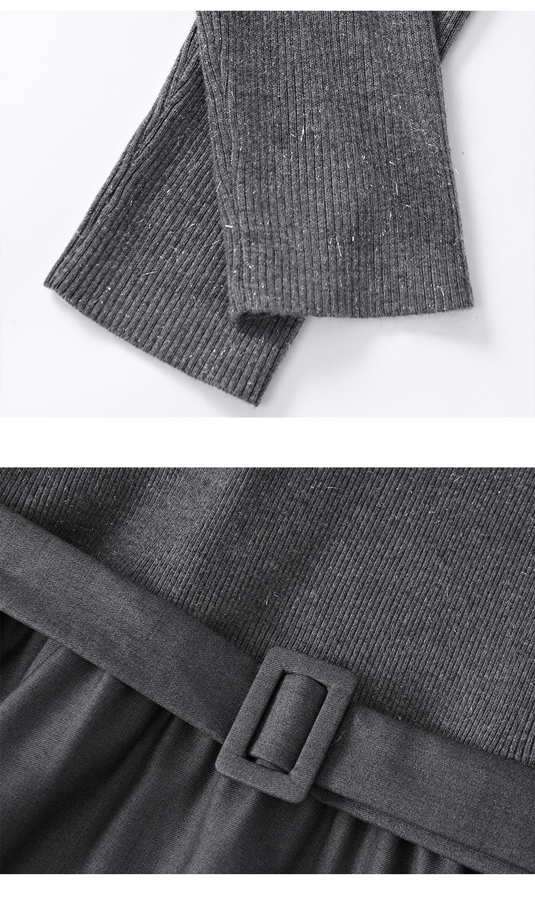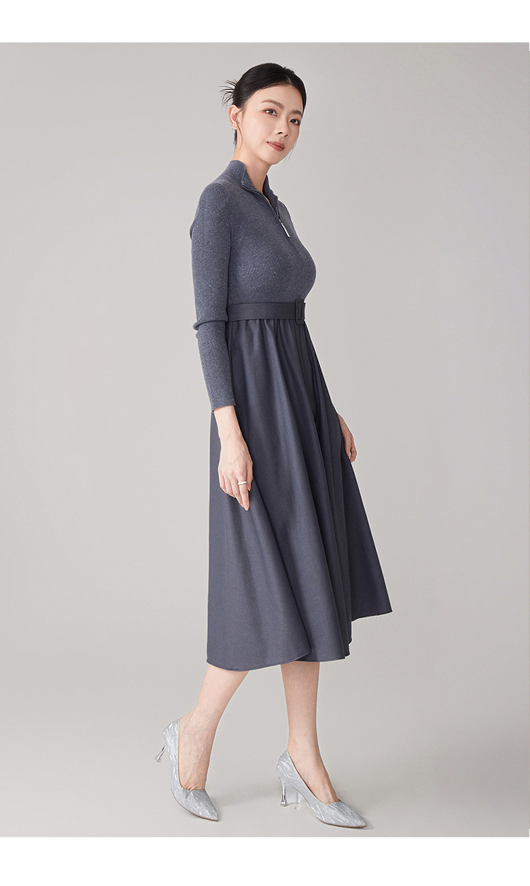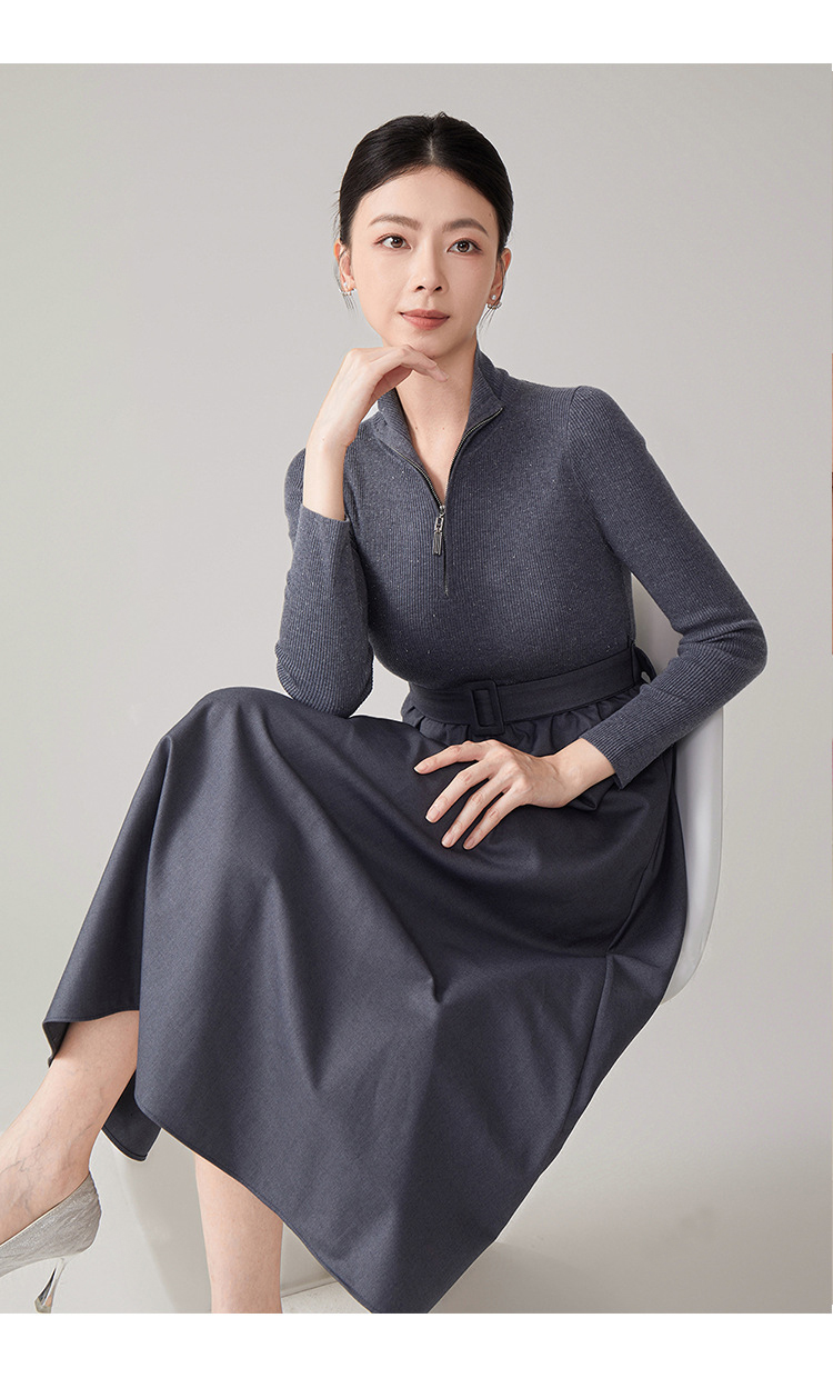 【hr】全新升级【铂金会员367/天猫499/差价132】(32714) 洛诗琳2024初秋新款时尚洋气长袖收腰高领拼接针织连衣裙