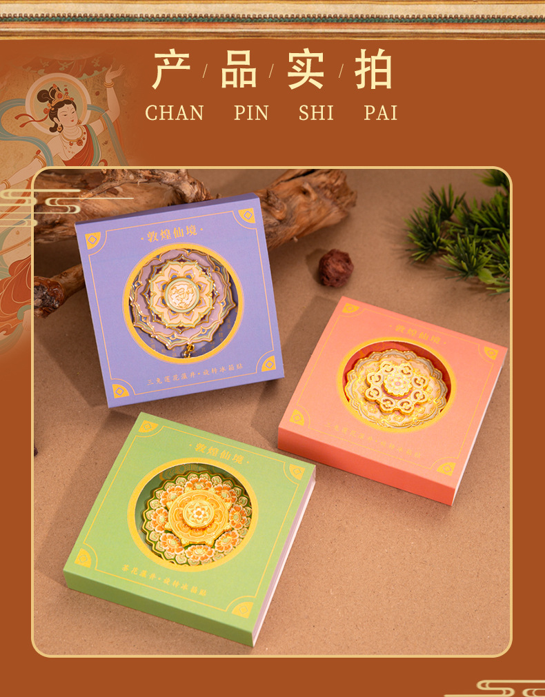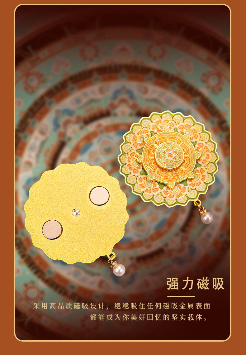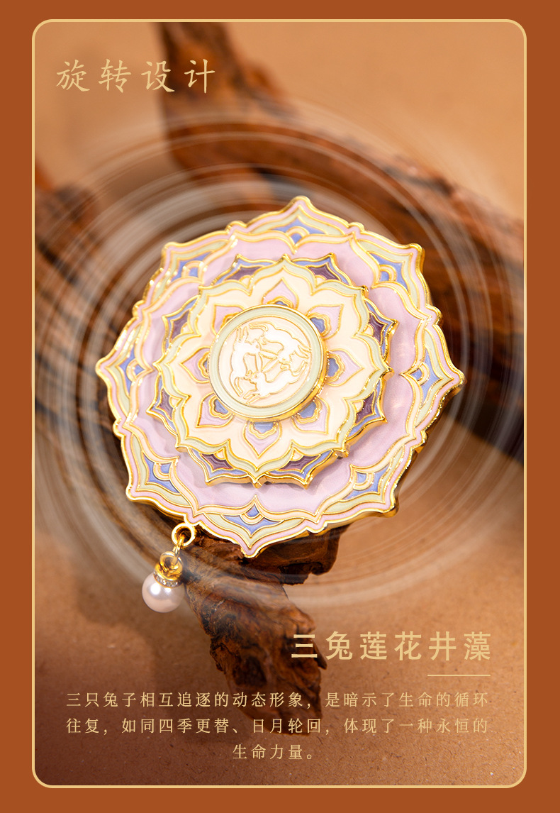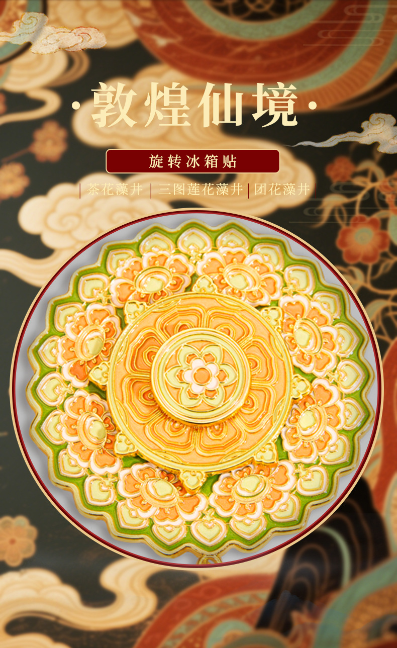【敦煌藻井旋转冰箱贴】三兔莲花纹国潮金属文创纪念创意工艺品礼品