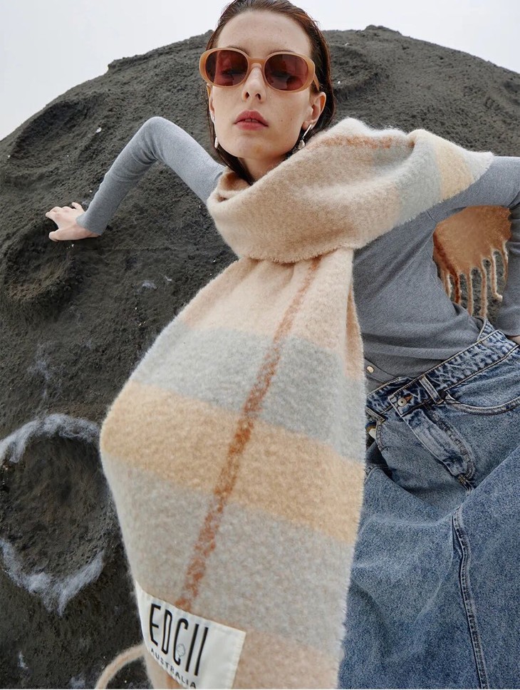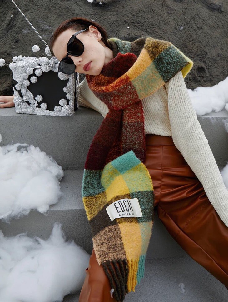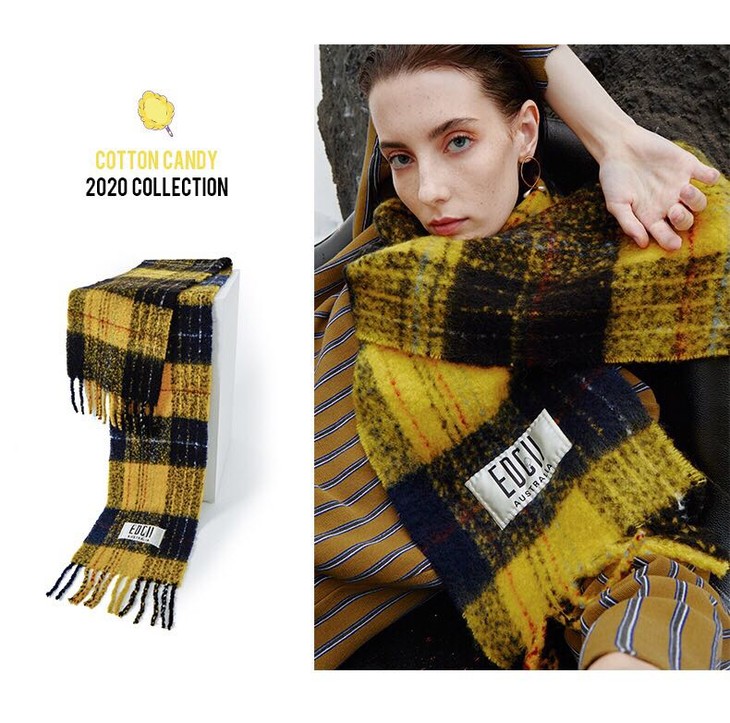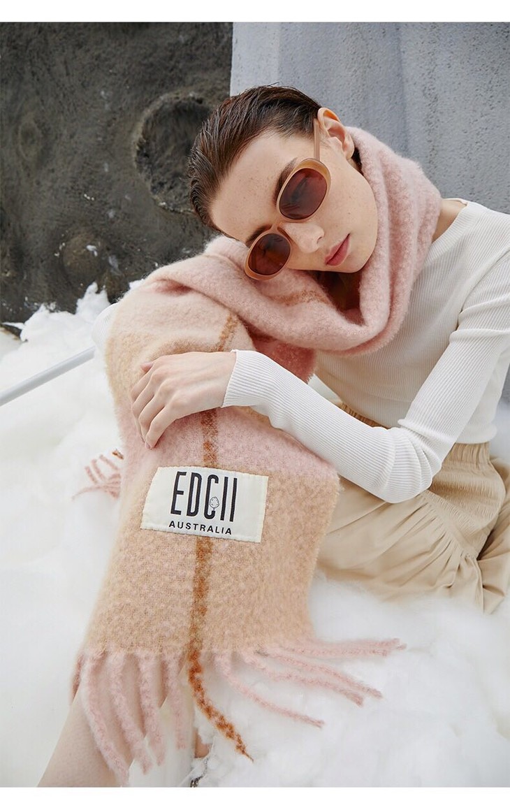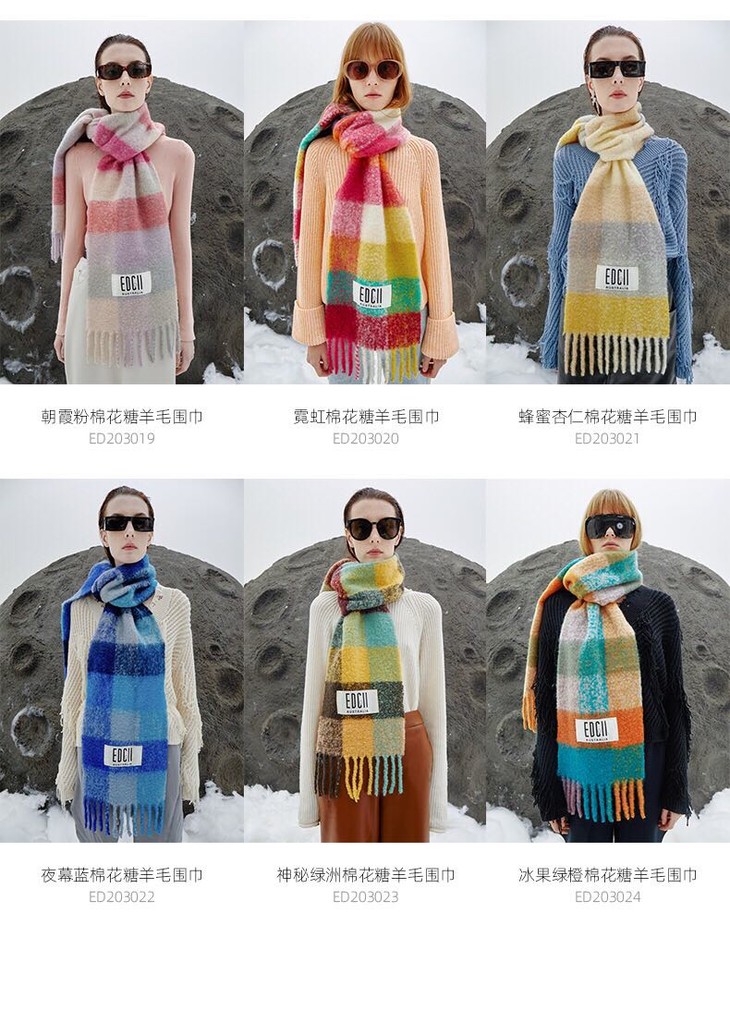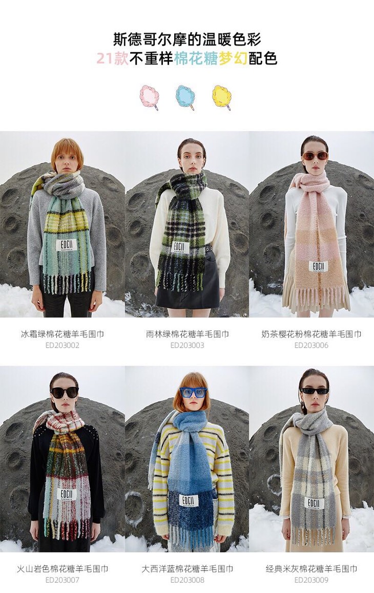 现货 Edgii秋冬新款拼色格子少女棉花糖澳洲羊毛围巾披肩柔软(正常地区包邮)