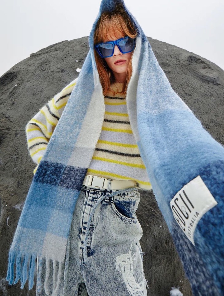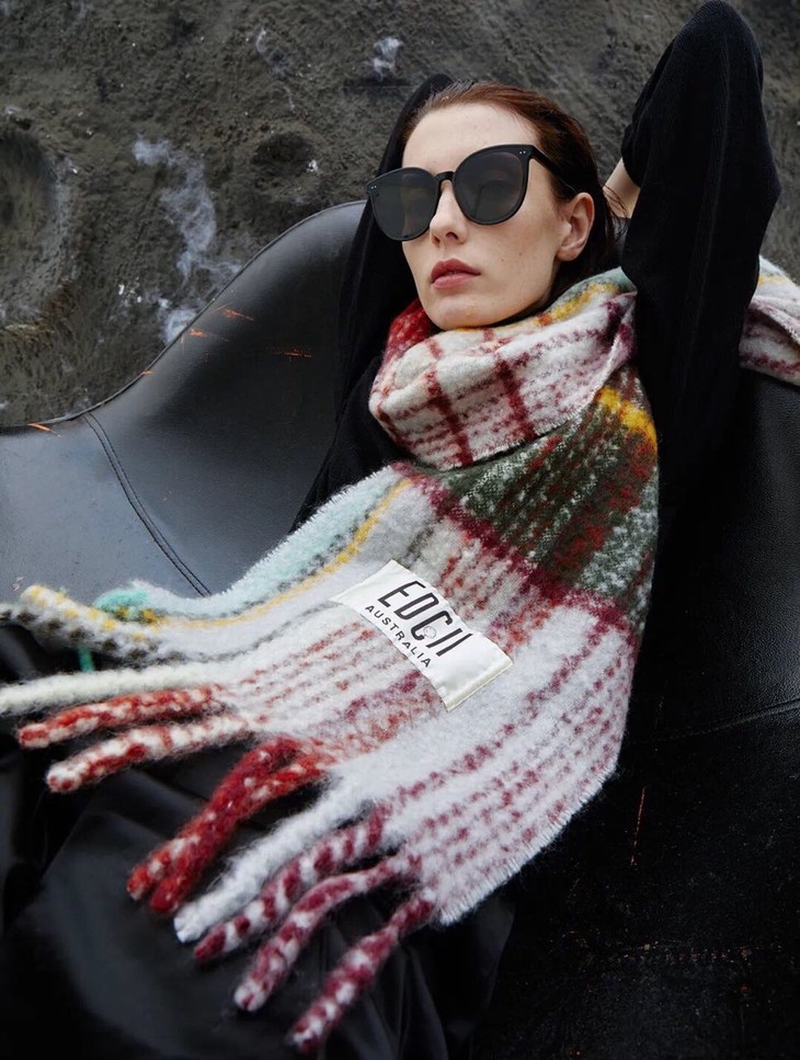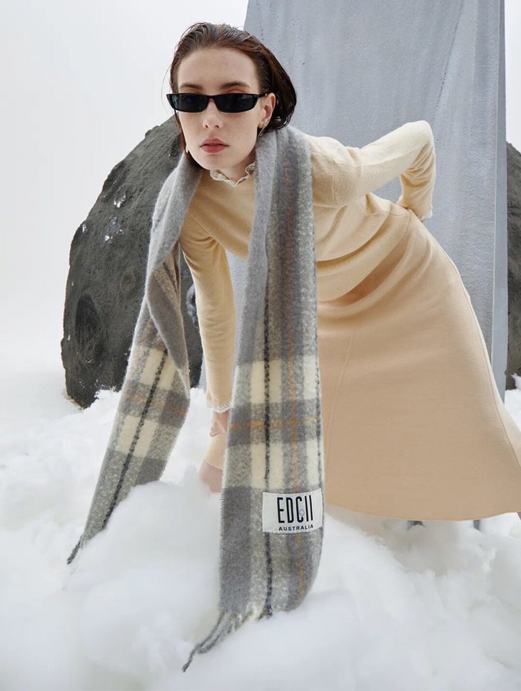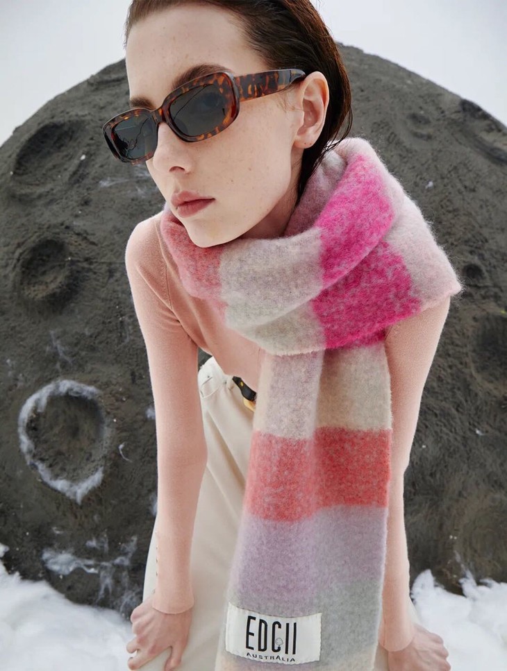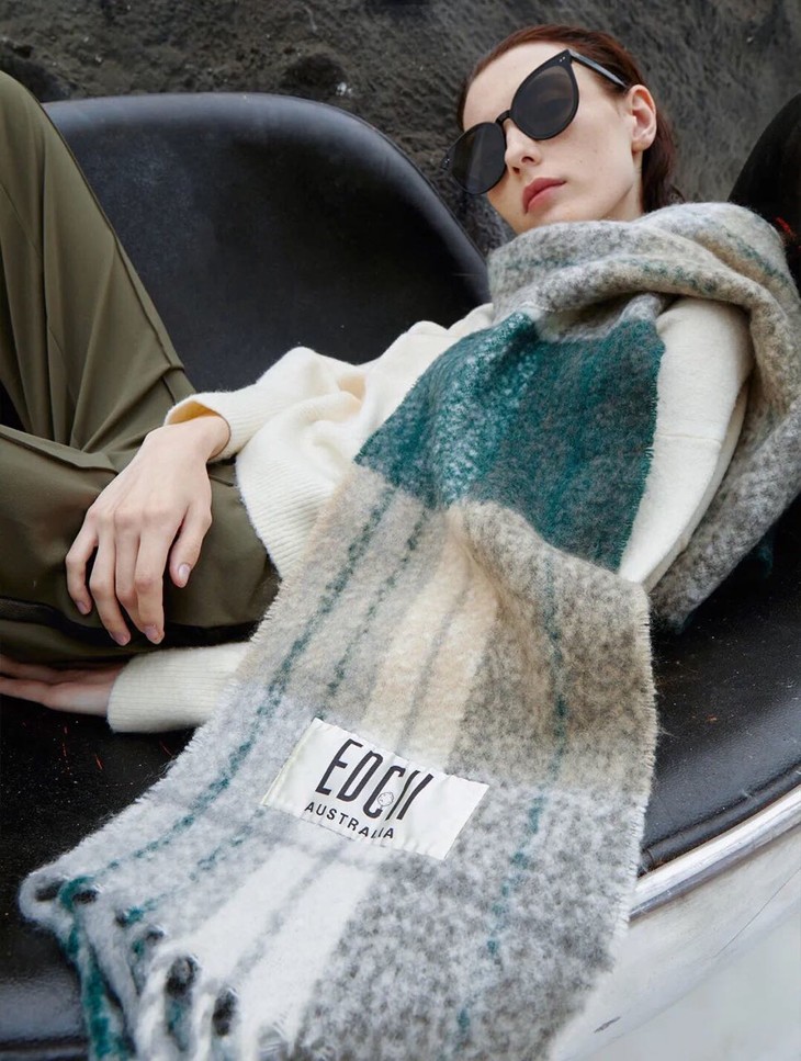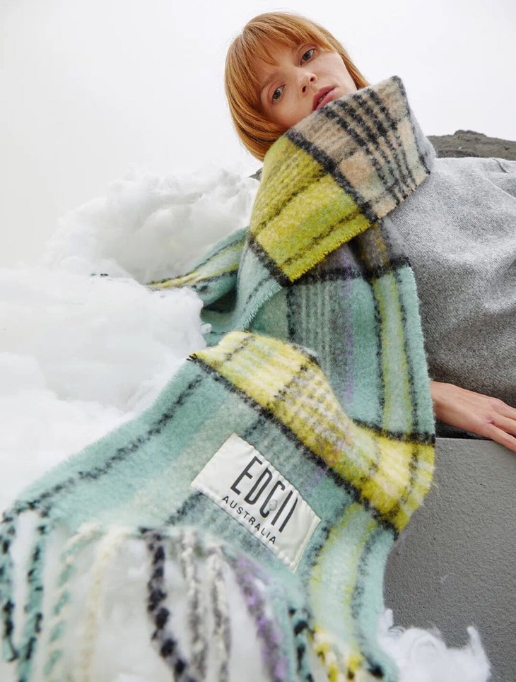 现货 Edgii秋冬新款拼色格子少女棉花糖澳洲羊毛围巾披肩柔软(正常地区包邮)
