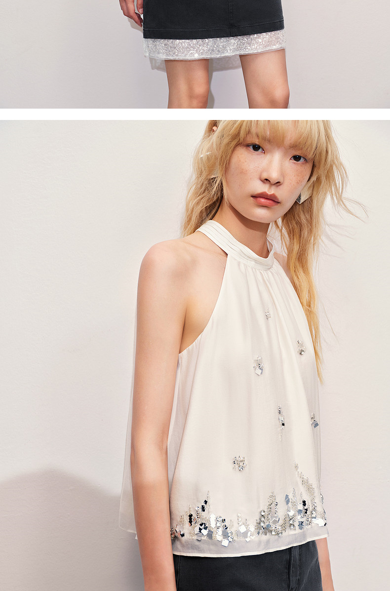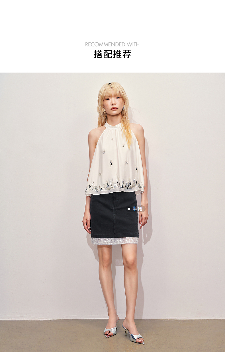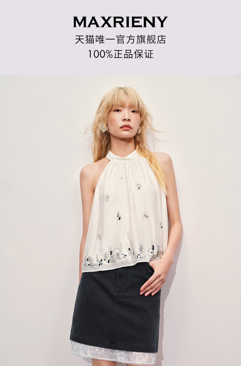 【海边度假-商场同款】MAXRIENY华丽*氛围感钉珠挂脖上衣(货号:MC85TP258)