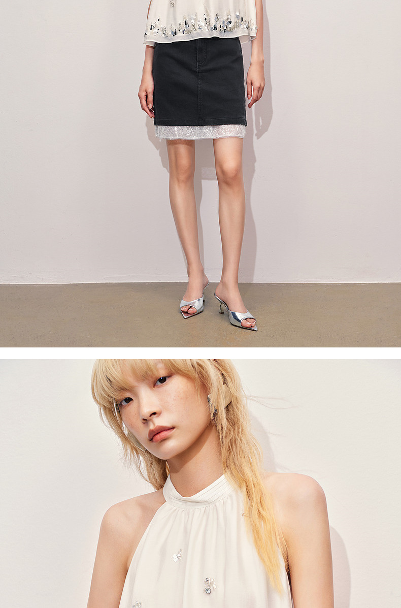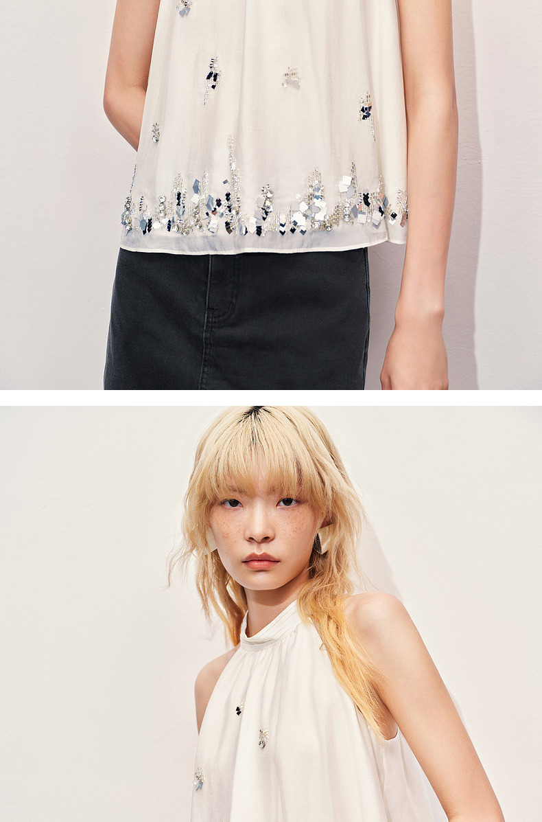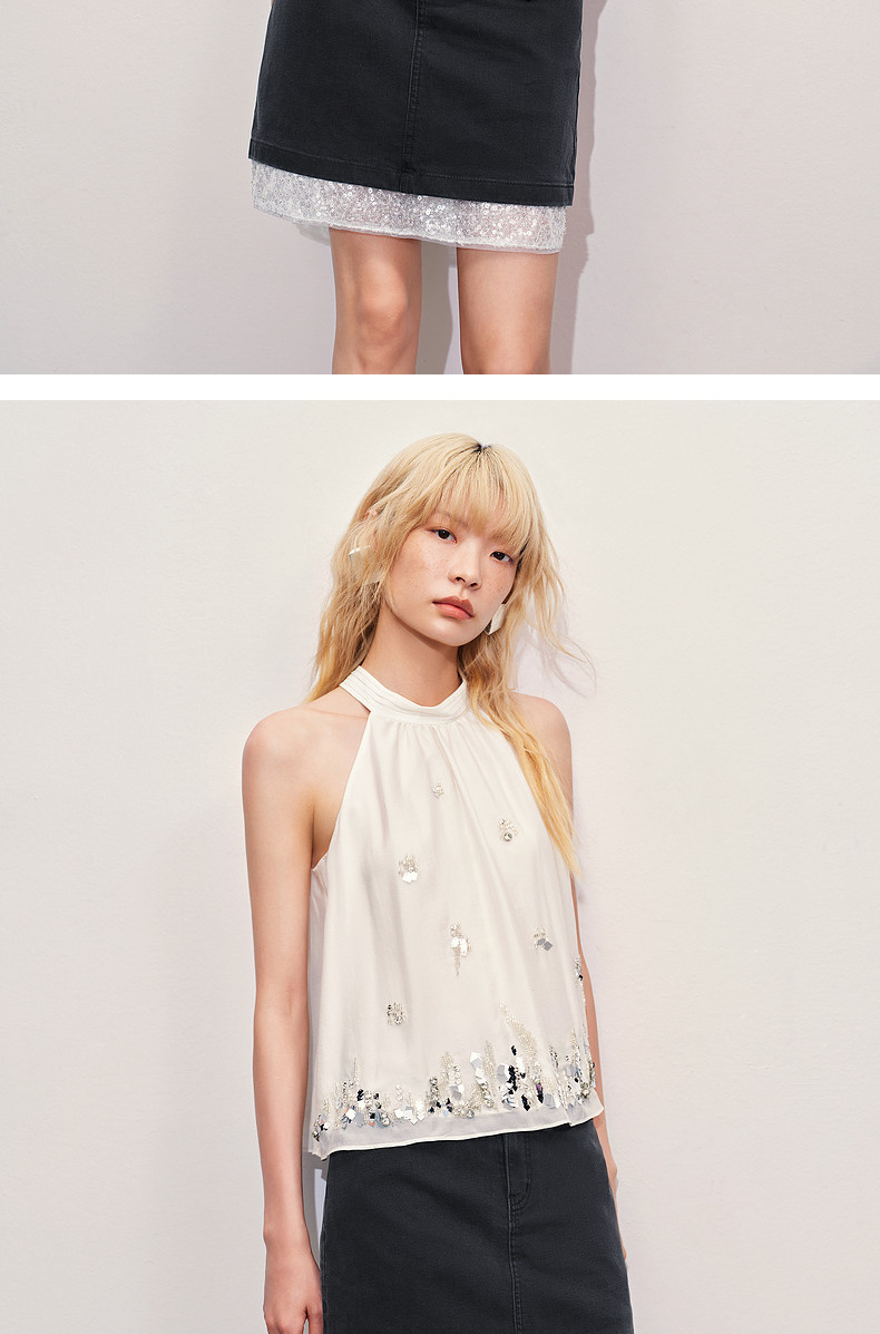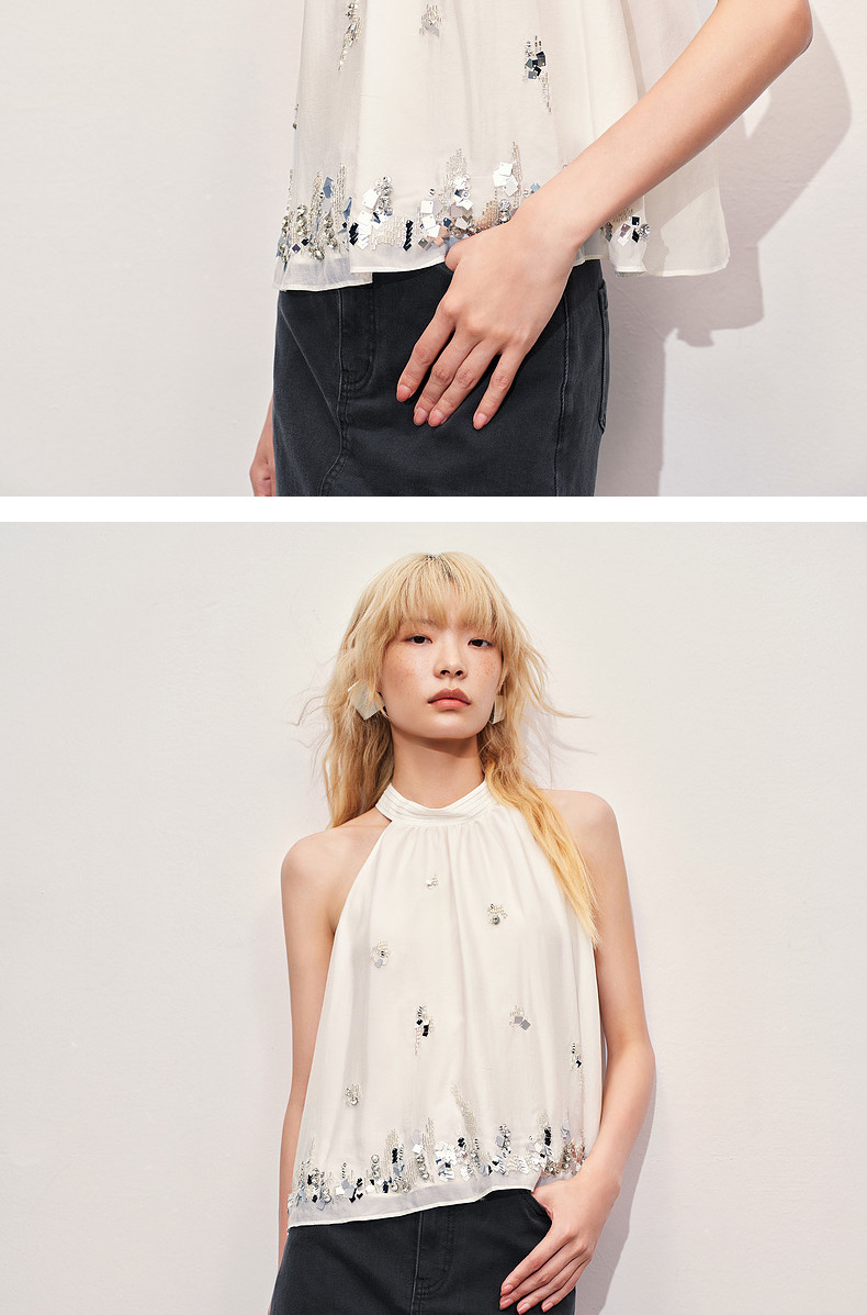 【海边度假-商场同款】MAXRIENY华丽*氛围感钉珠挂脖上衣(货号:MC85TP258)