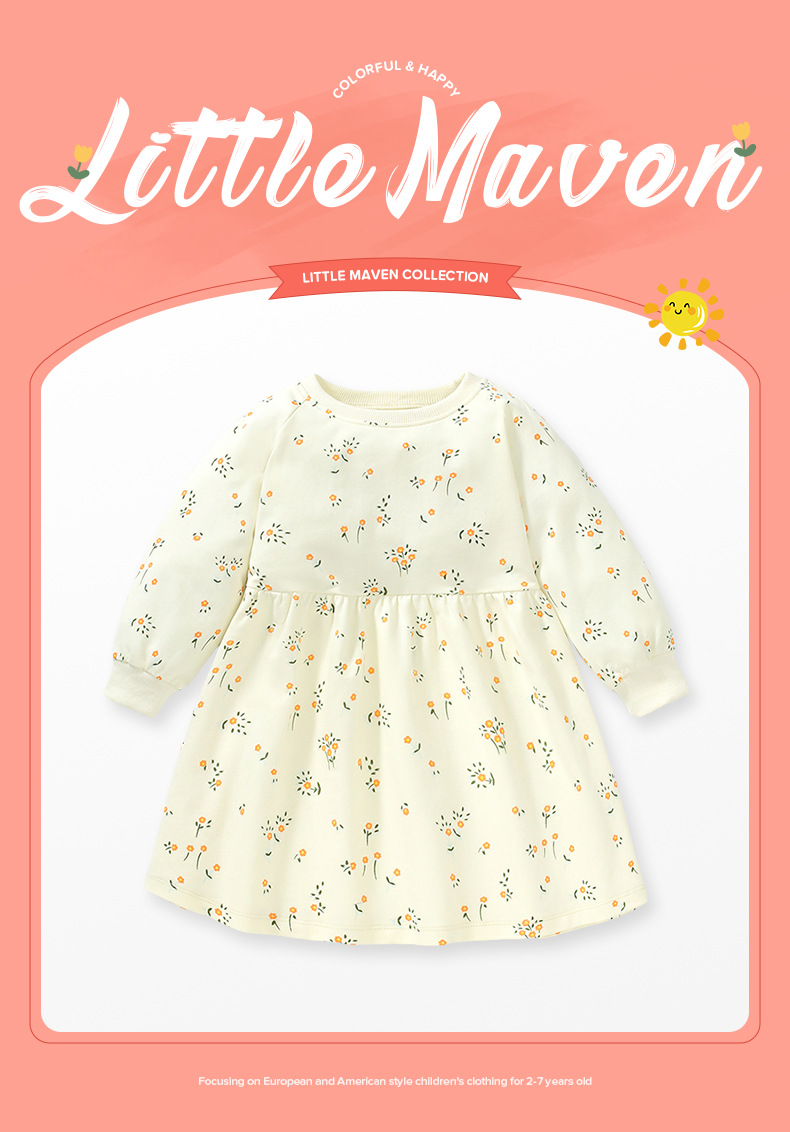 【采用纯棉面料,确保舒适度和透气性!】女童连衣裙纯棉长袖儿童卫衣裙欧美秋季童裙公主裙为孩子提供温暖和保护,欧美风格的设计,展现出时尚与个性