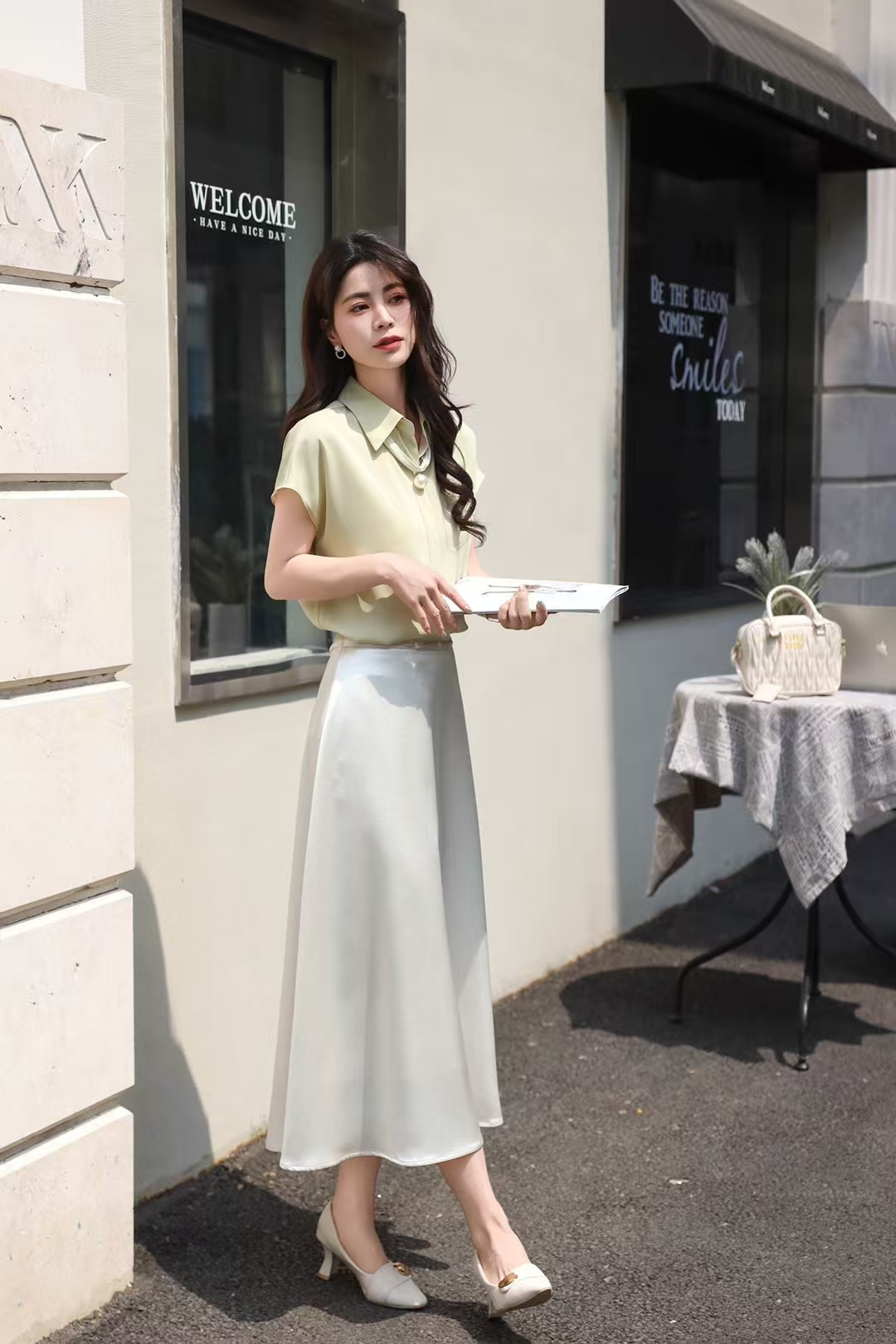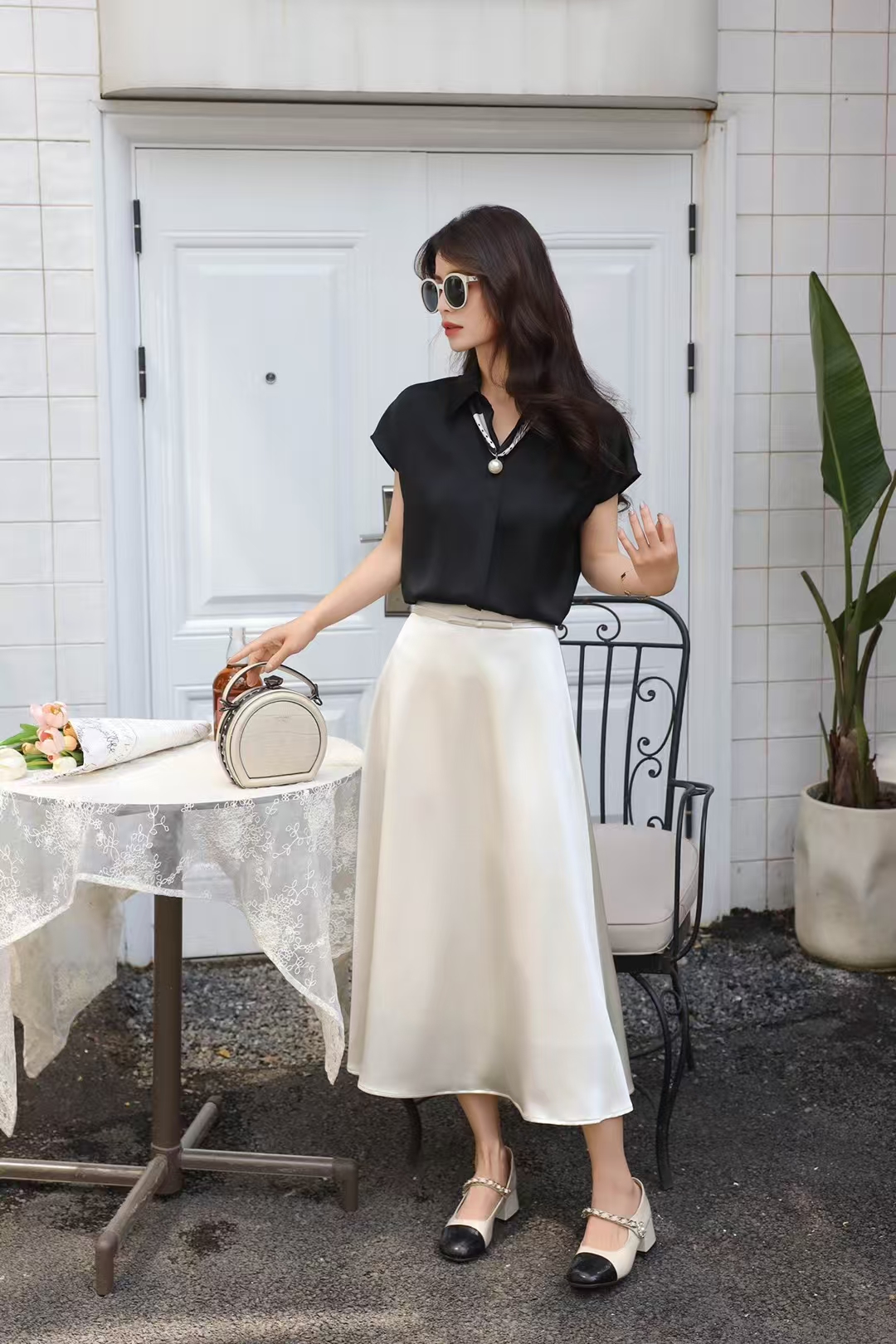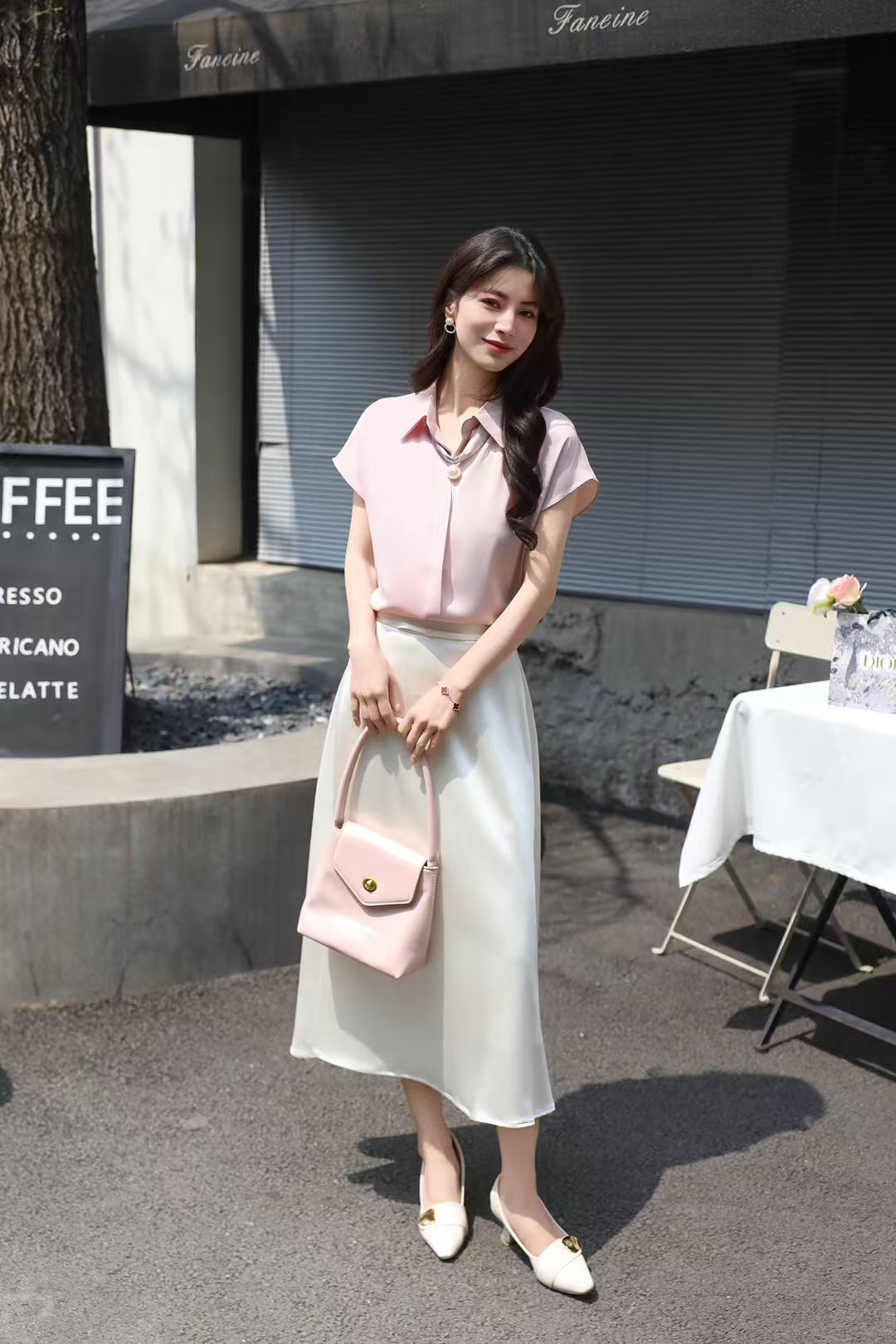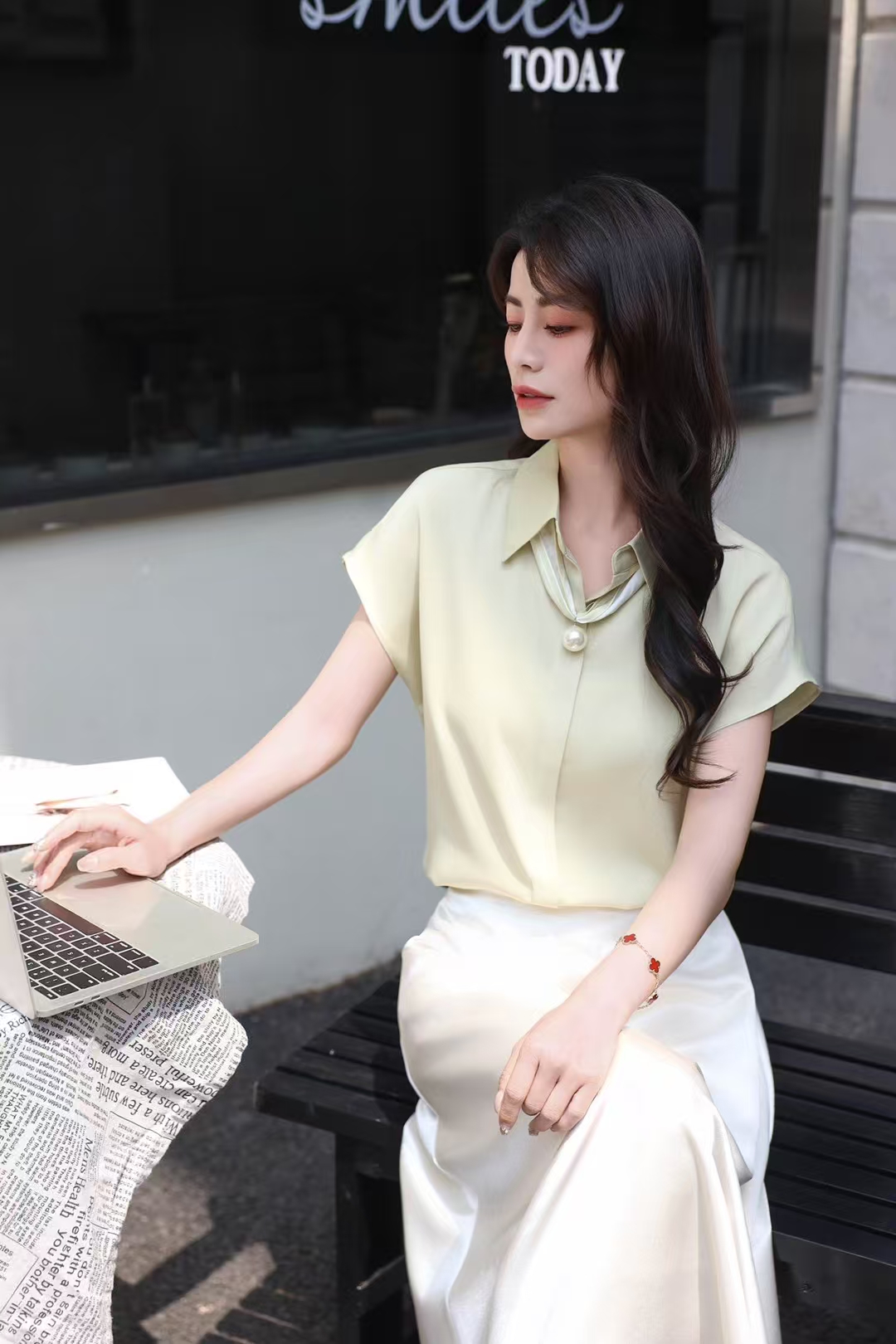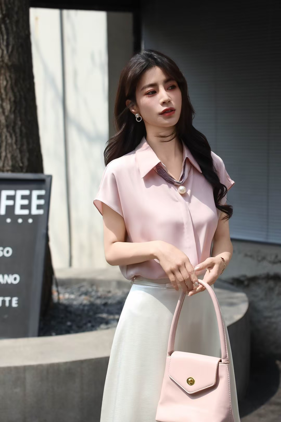 全新升级【铂金会员146/天猫199/差价53】(41137)洛诗琳法式气质衬衫2025夏季新款珍珠配饰百搭通勤雪纺上衣