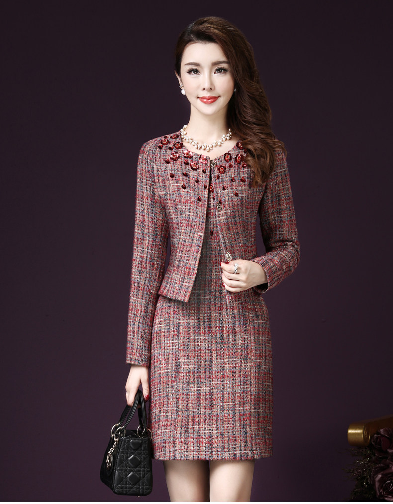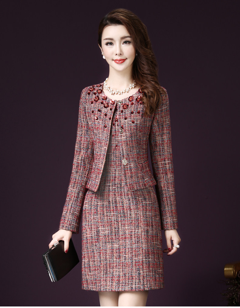 WXY-MFN1088秋季新款长袖大码修身喜庆婚礼妈妈装两件套