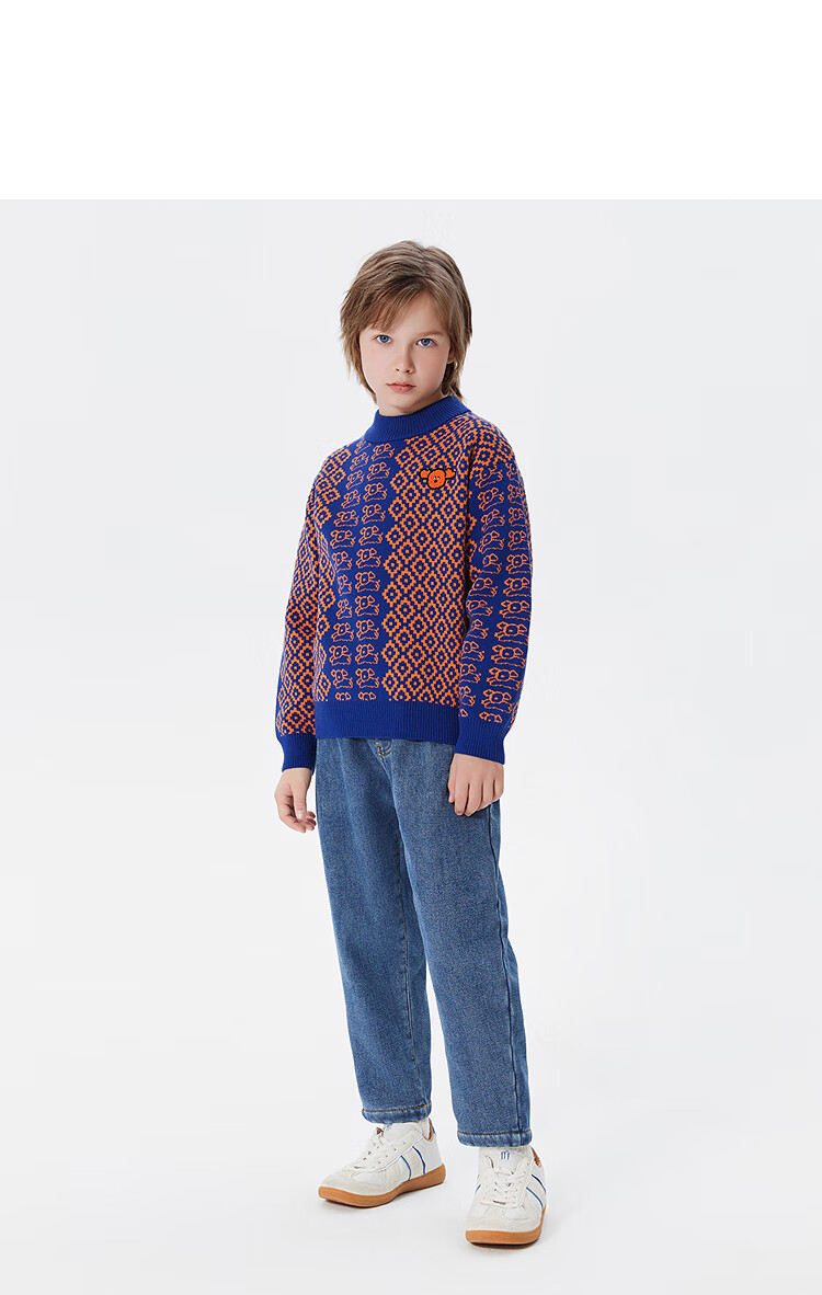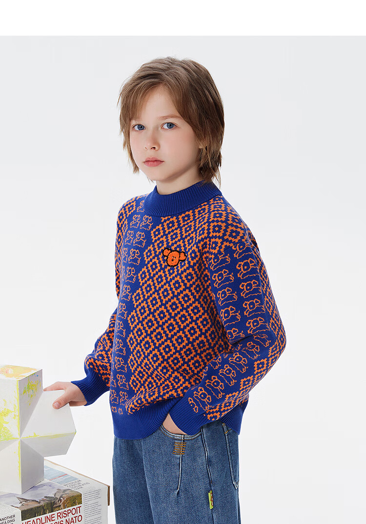 【MQD】童装男大童冬新款满版休闲半高领针织衫