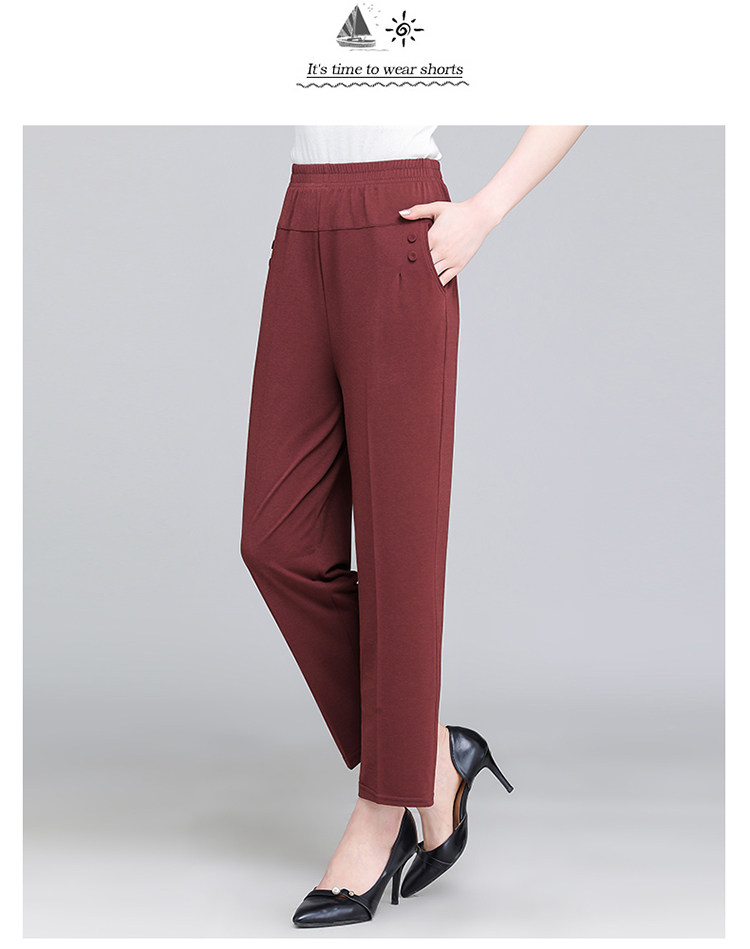 NP-1905夏季休闲宽松直筒松紧高腰外穿九分裤