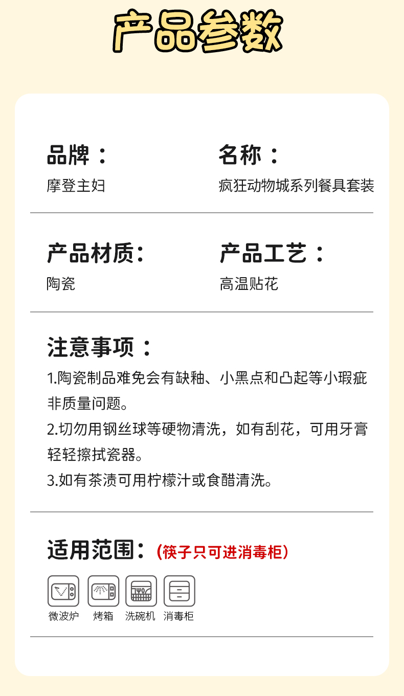 摩登主妇疯狂动物城餐具套装家用2025新款高颜值陶瓷碗具生日礼物