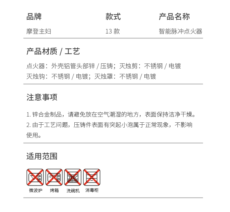摩登主妇香薰点火器打火机长手柄脉冲点香器蜡烛点火枪电子点火棒