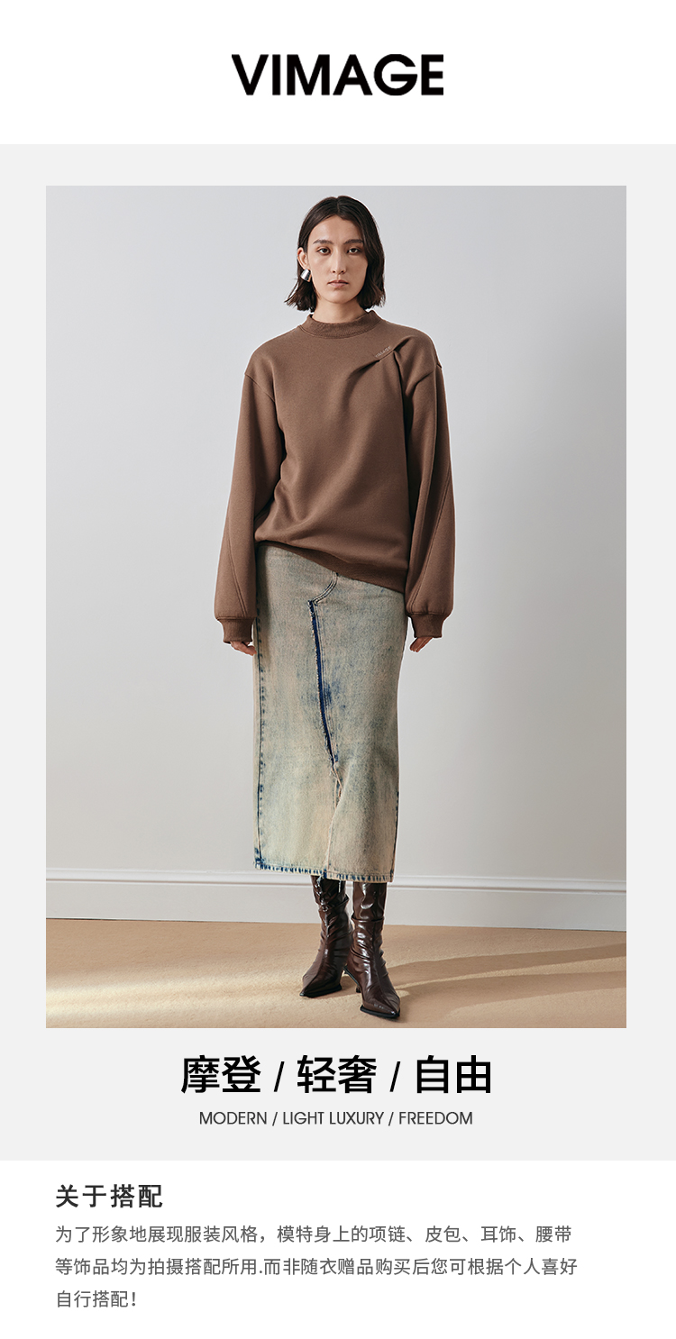 VIMAGE纬漫纪冬季新款时尚休闲宽松套头卫衣女上衣V2013625