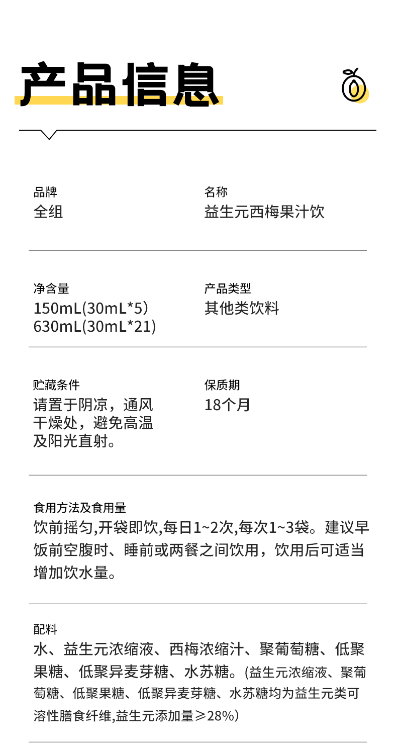 【瘦身减脂·体重管理靠它】全组益生元西梅饮150ml (5*30ml/盒)