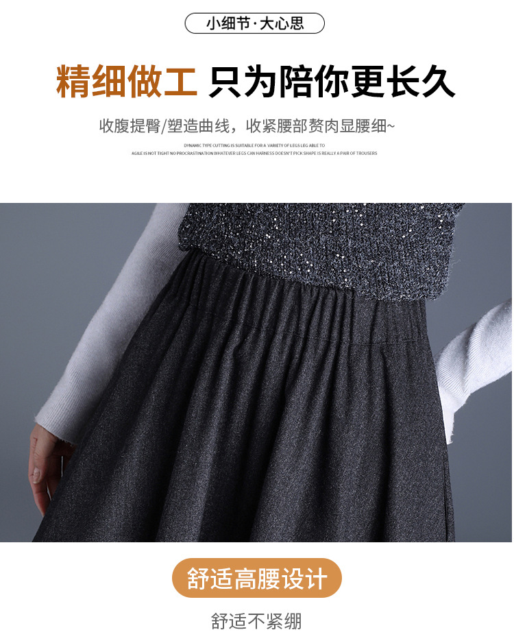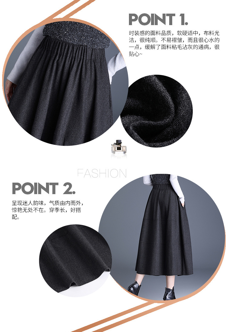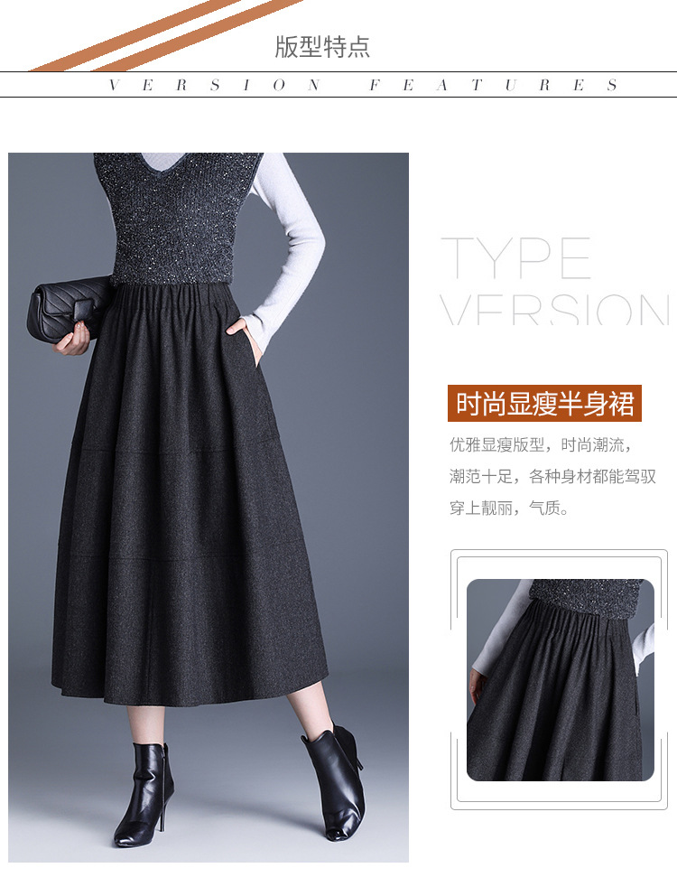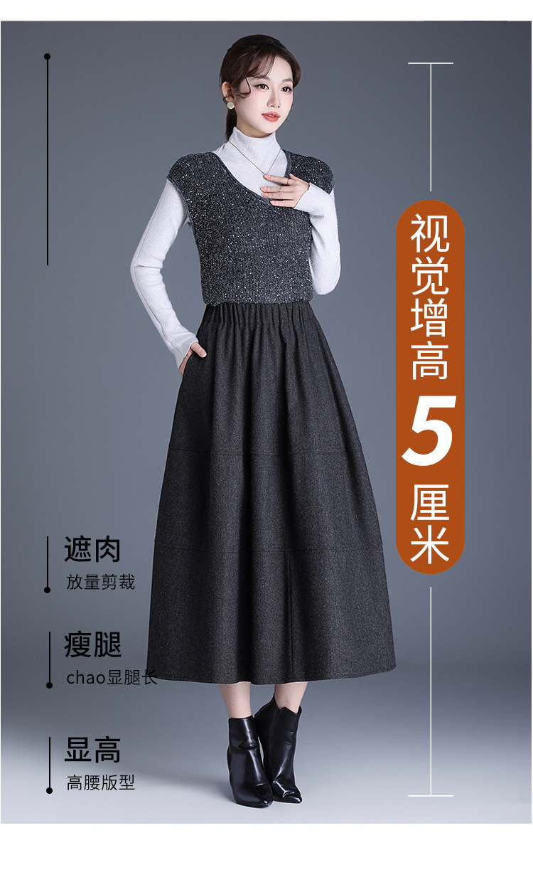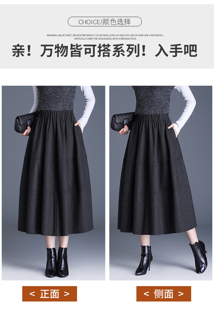 QYM 2569-Y毛呢花苞裙松紧高腰半身裙厚款中长款时尚气质A字裙
