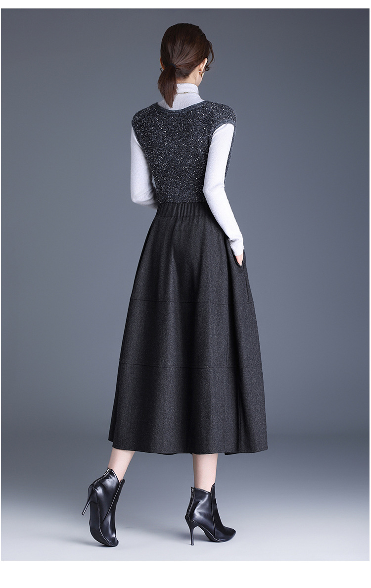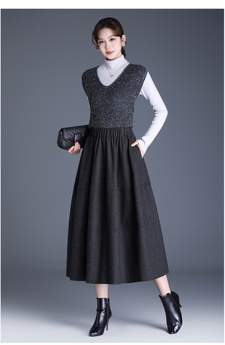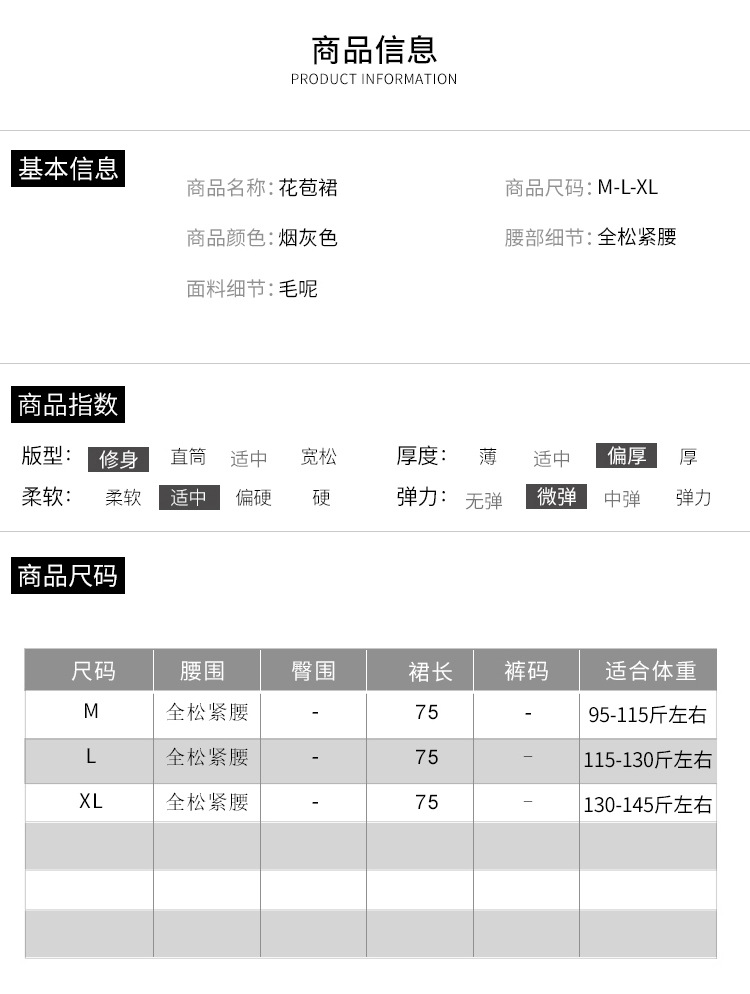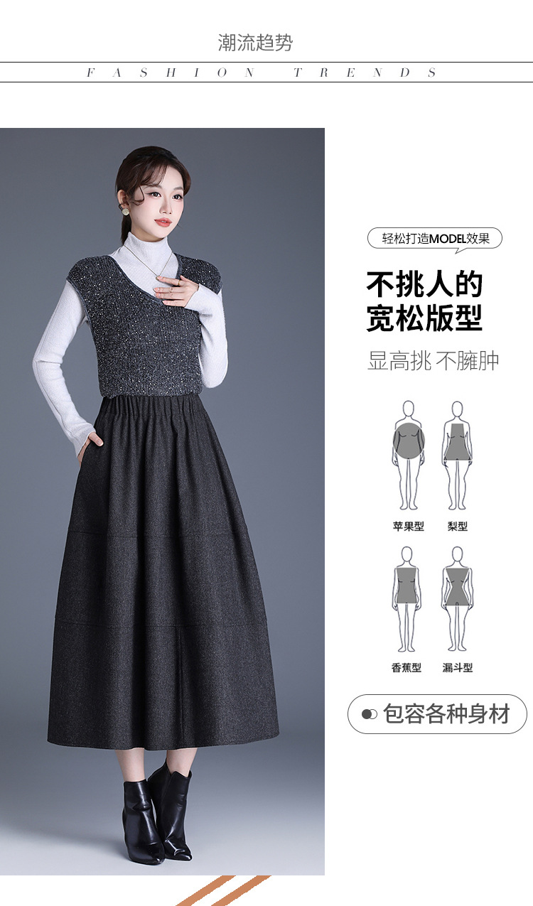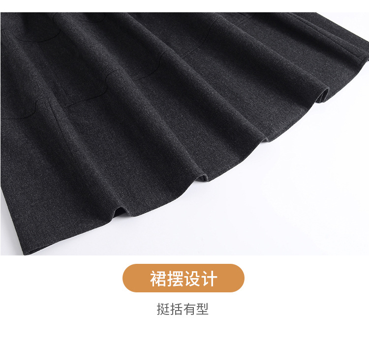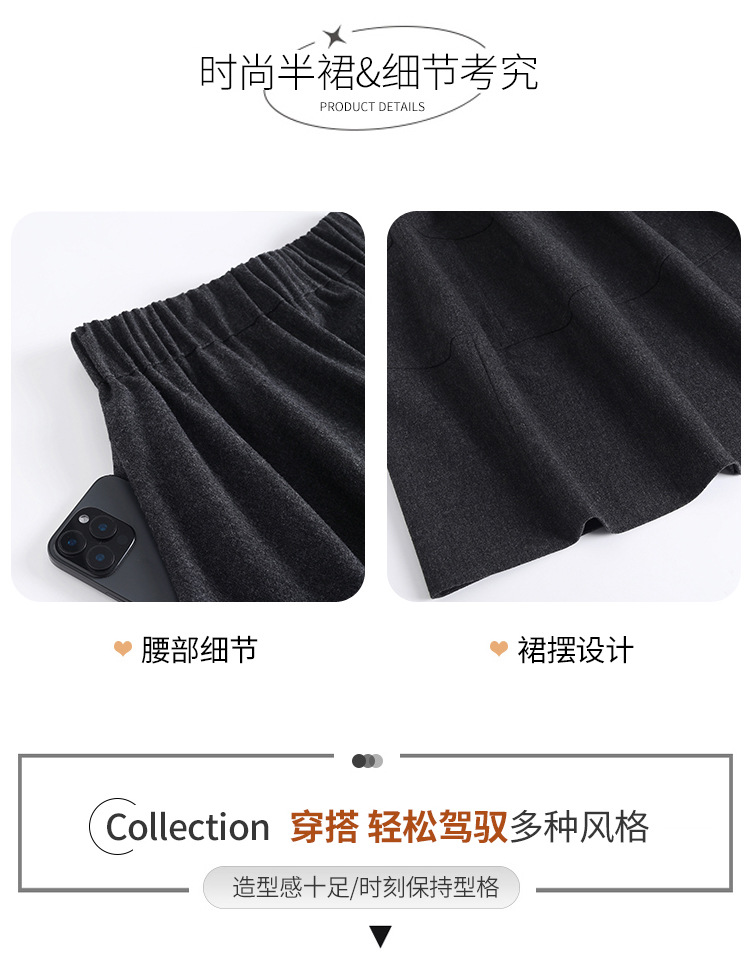 QYM 2569-Y毛呢花苞裙松紧高腰半身裙厚款中长款时尚气质A字裙