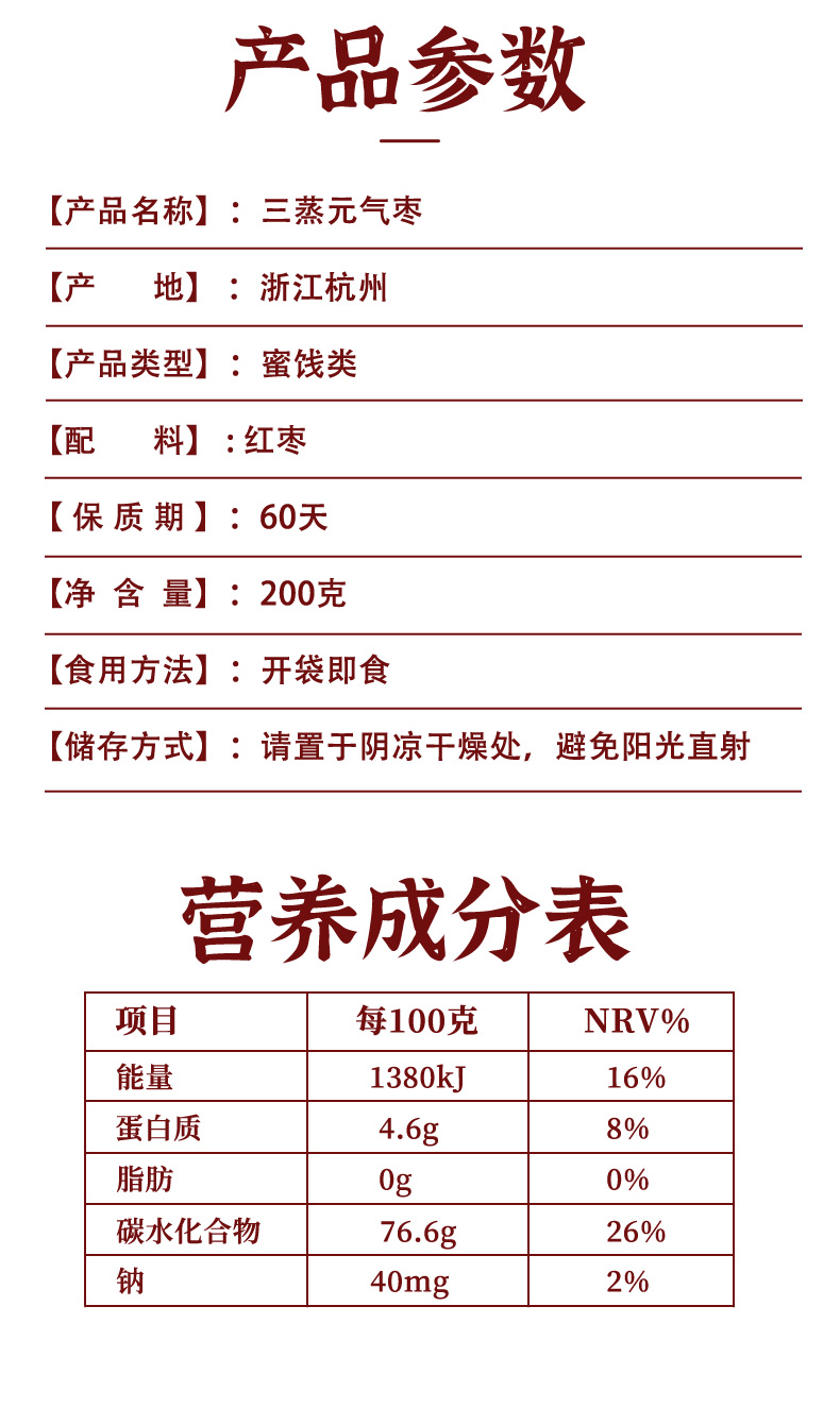 【配料干净】三蒸元气枣 200g 去皮去核好吸收
