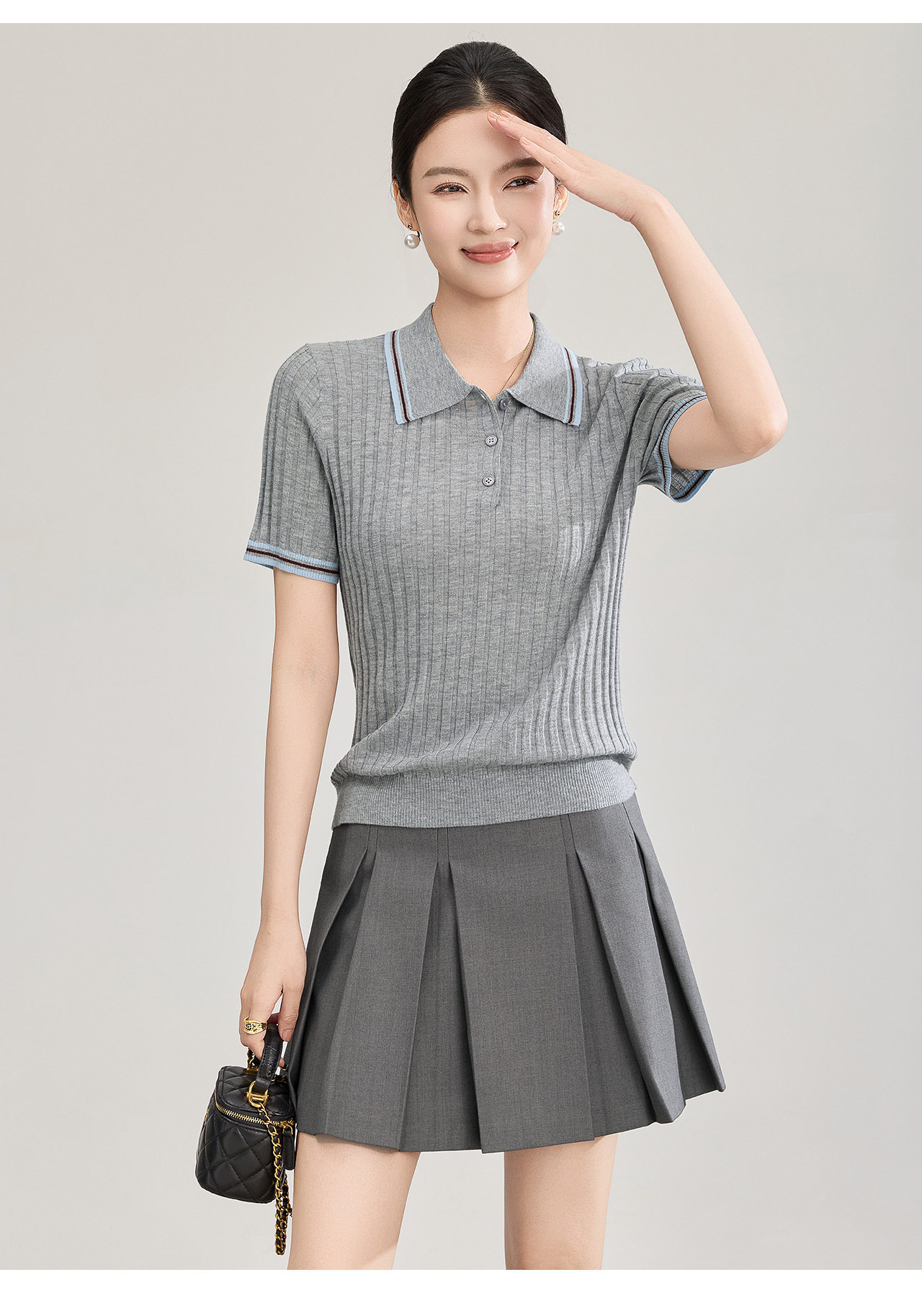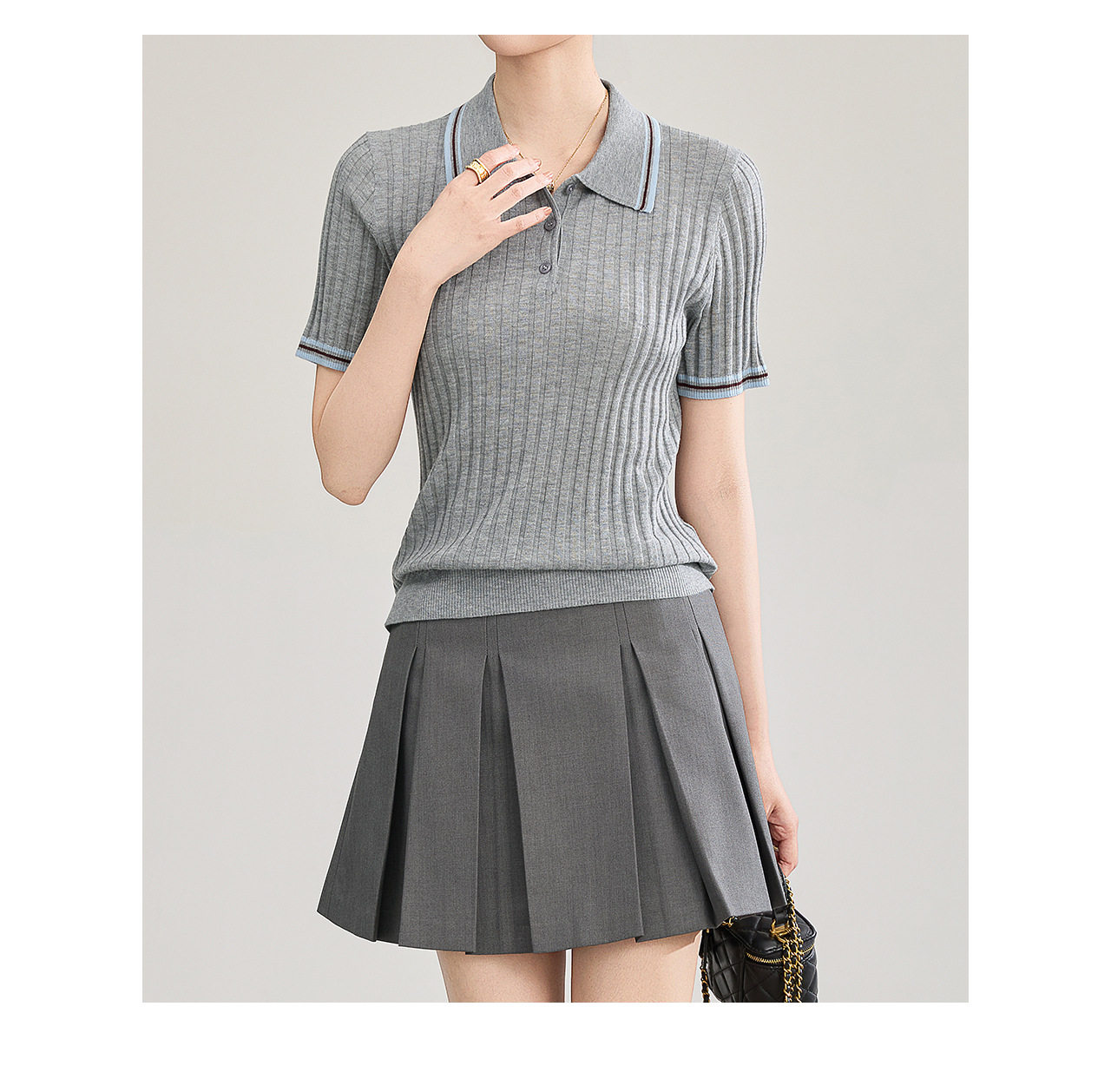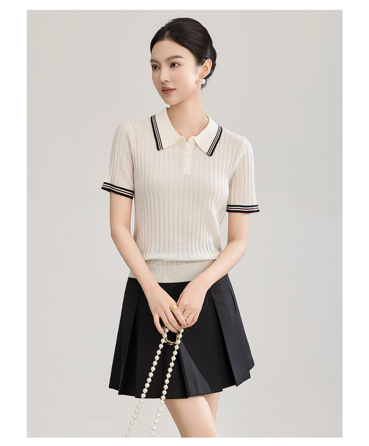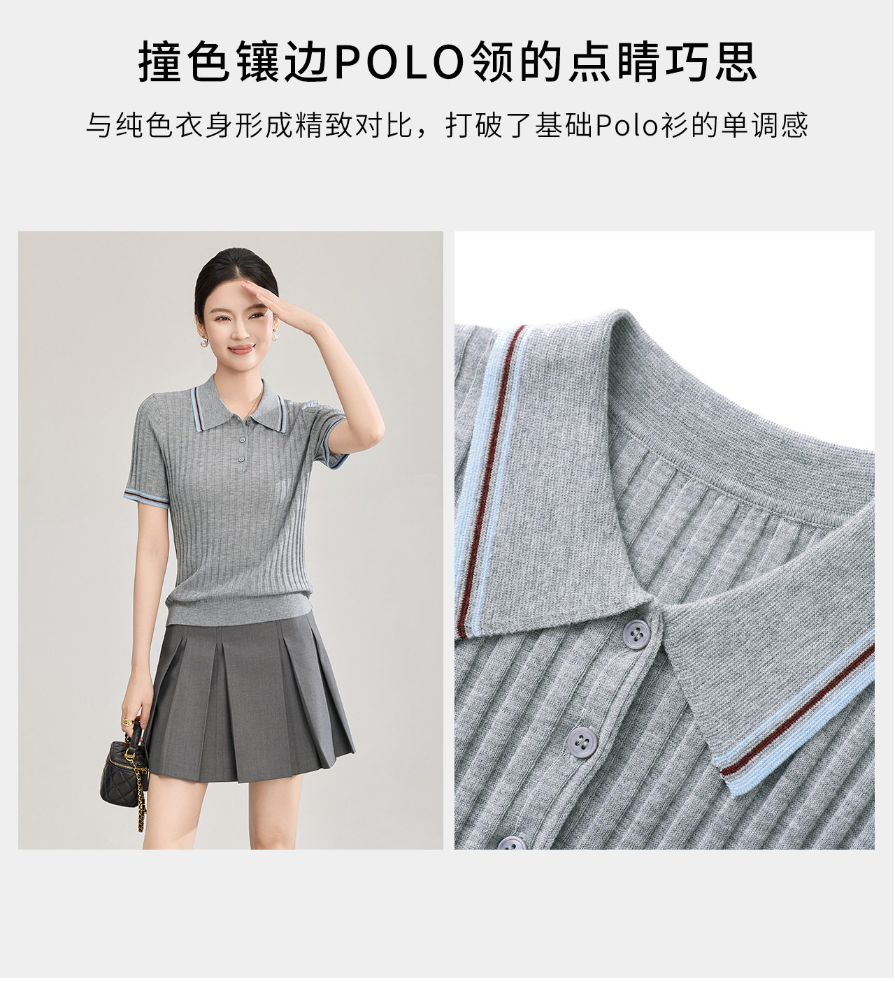 「高货wl」全新升级【铂金会员183/天猫249/差价66】(04717)洛诗琳密织宽条羊毛混纺上衣2026新款经典撞色翻领针织T恤