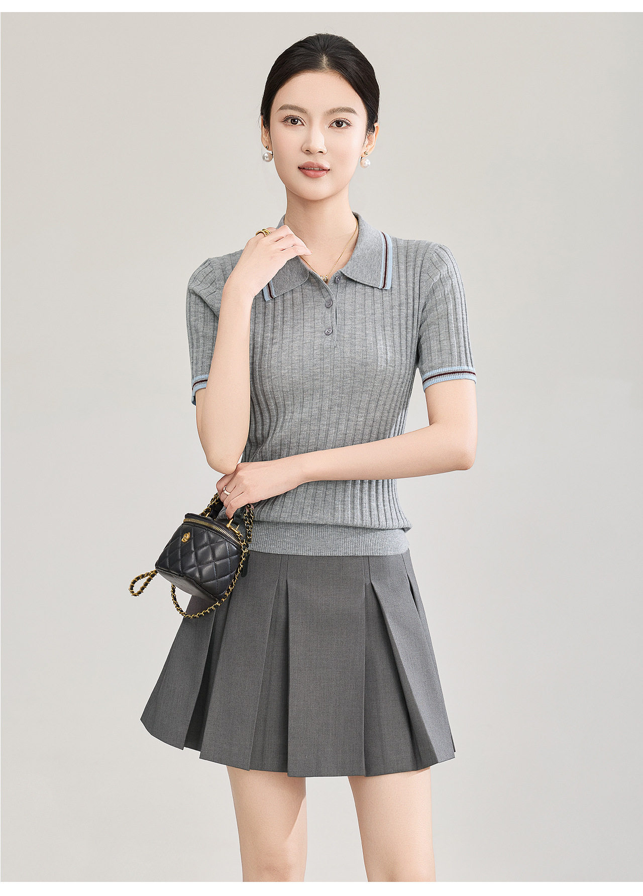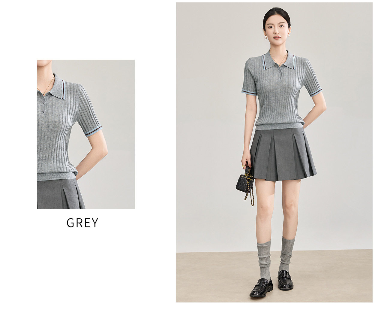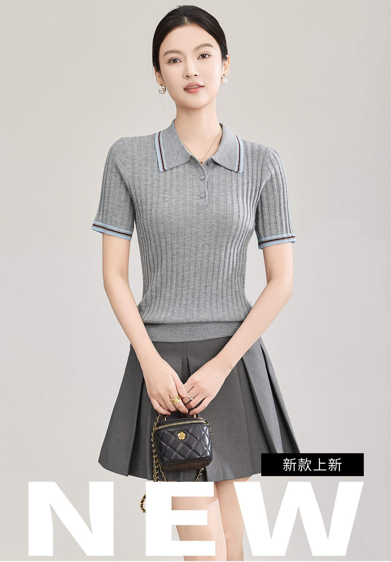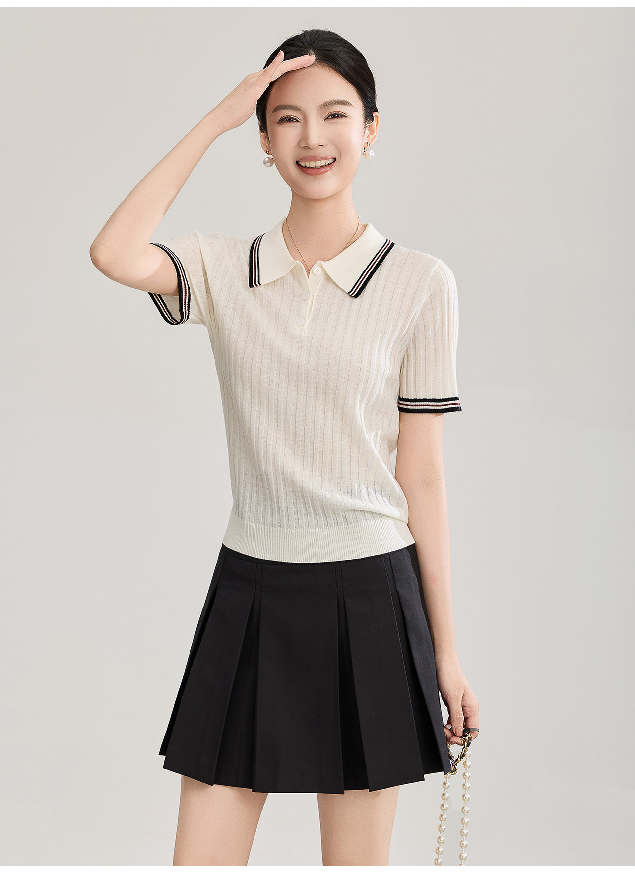 「高货wl」全新升级【铂金会员183/天猫249/差价66】(04717)洛诗琳密织宽条羊毛混纺上衣2026新款经典撞色翻领针织T恤