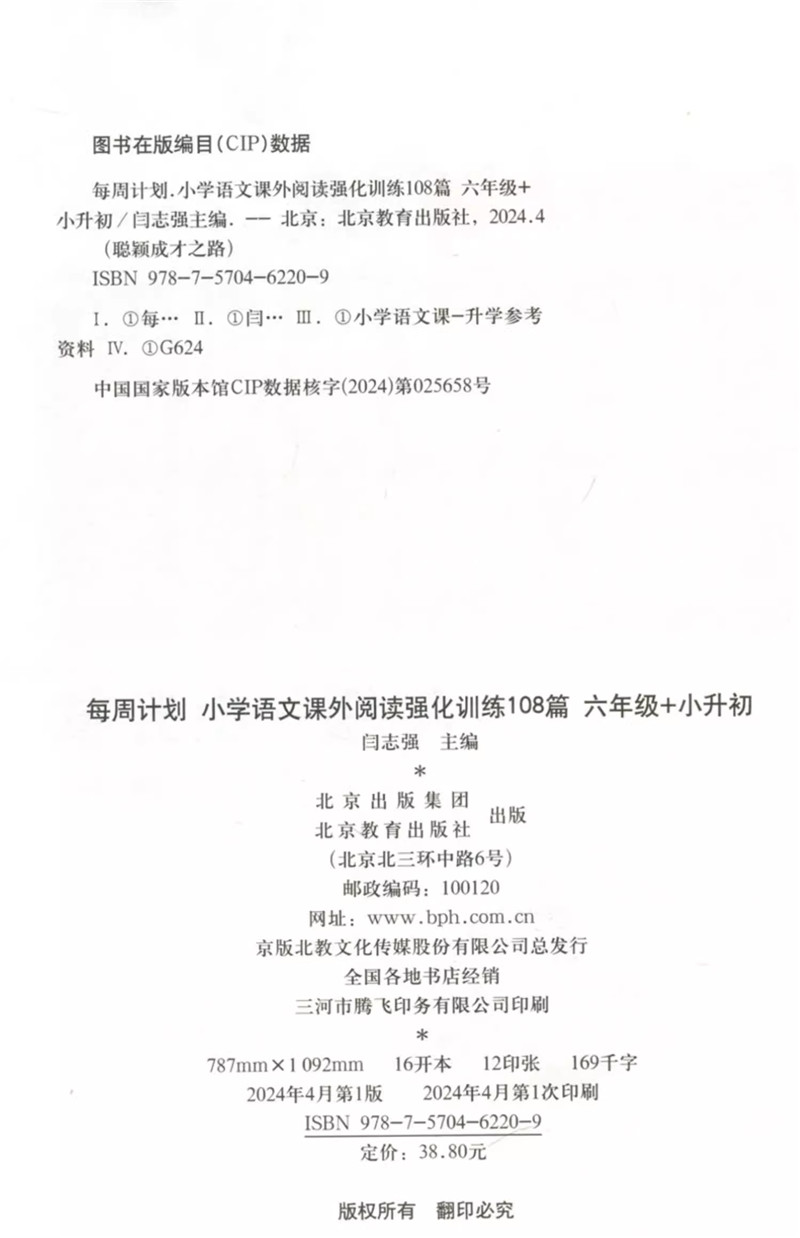 2024每周计划小学语文数学英语基础知识强化课外阅读计算题应用题强化训练123456年级可选