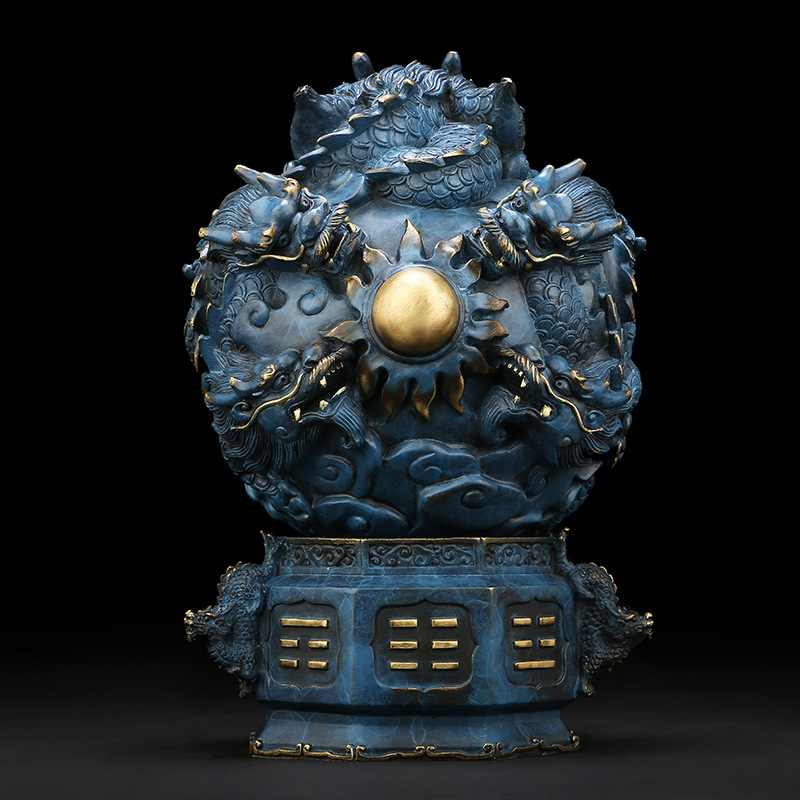 全铜彩九转乾坤鼎桌面摆件