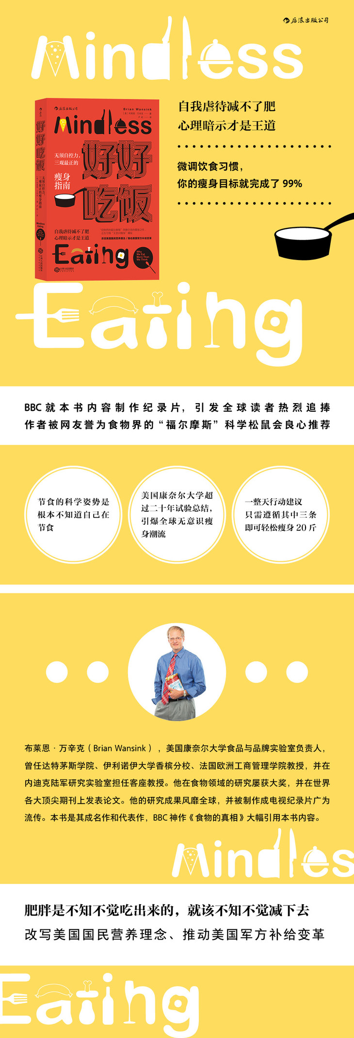 布莱恩·万辛克是一个少见的综合体,他是一个创新型的科学家,充满幽默感,又以非常有创意的方式探讨人们的饮食心理。我强力推荐大家一定要读这本值得关注的好书!