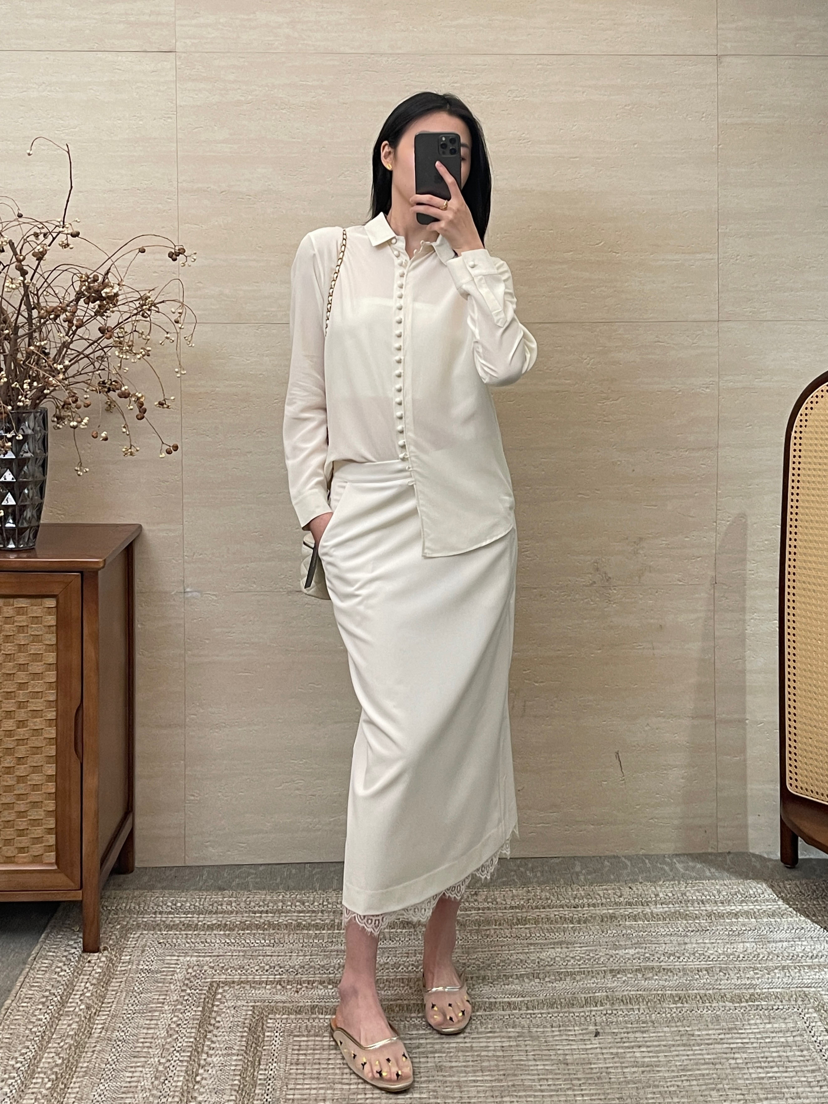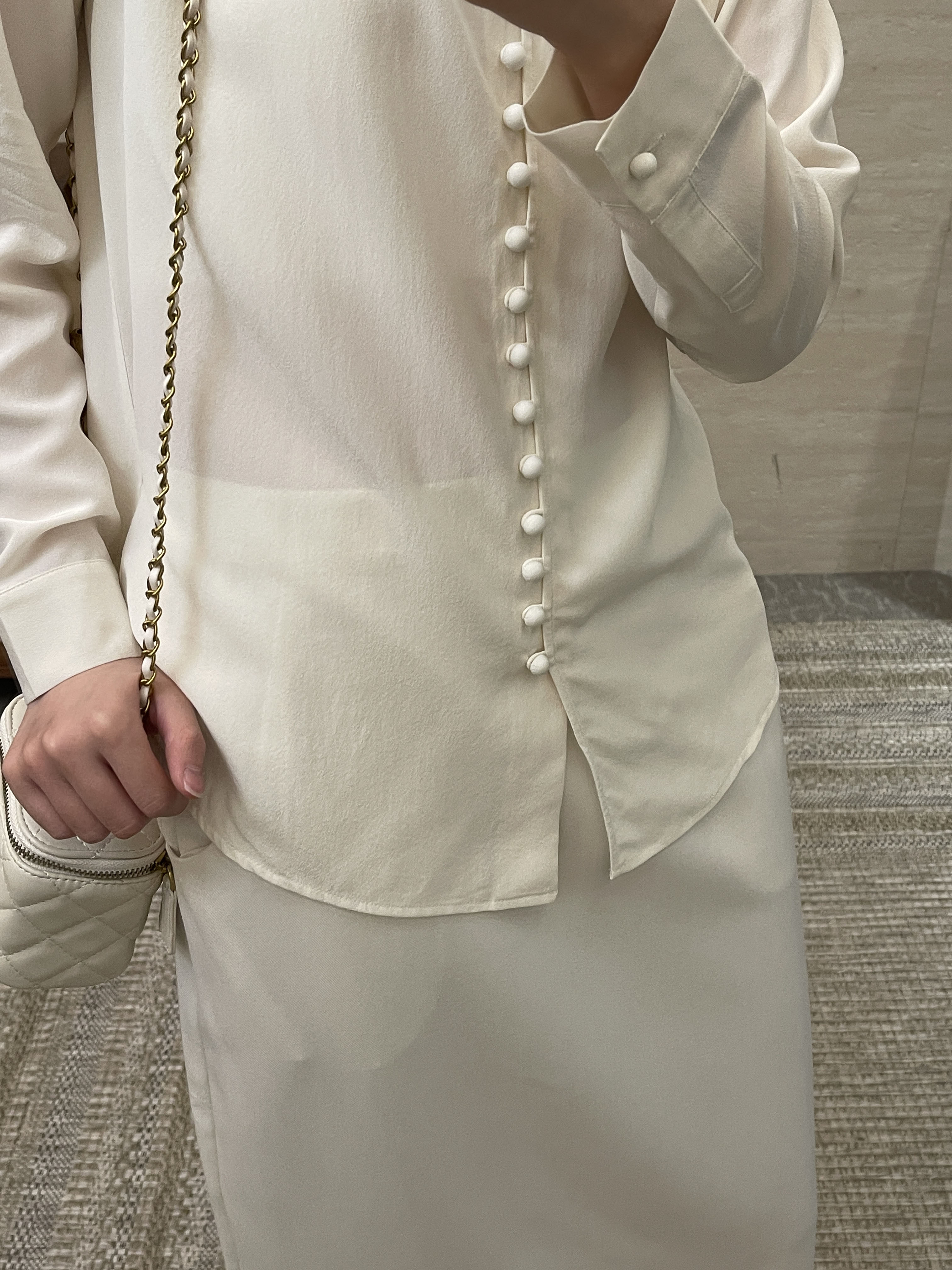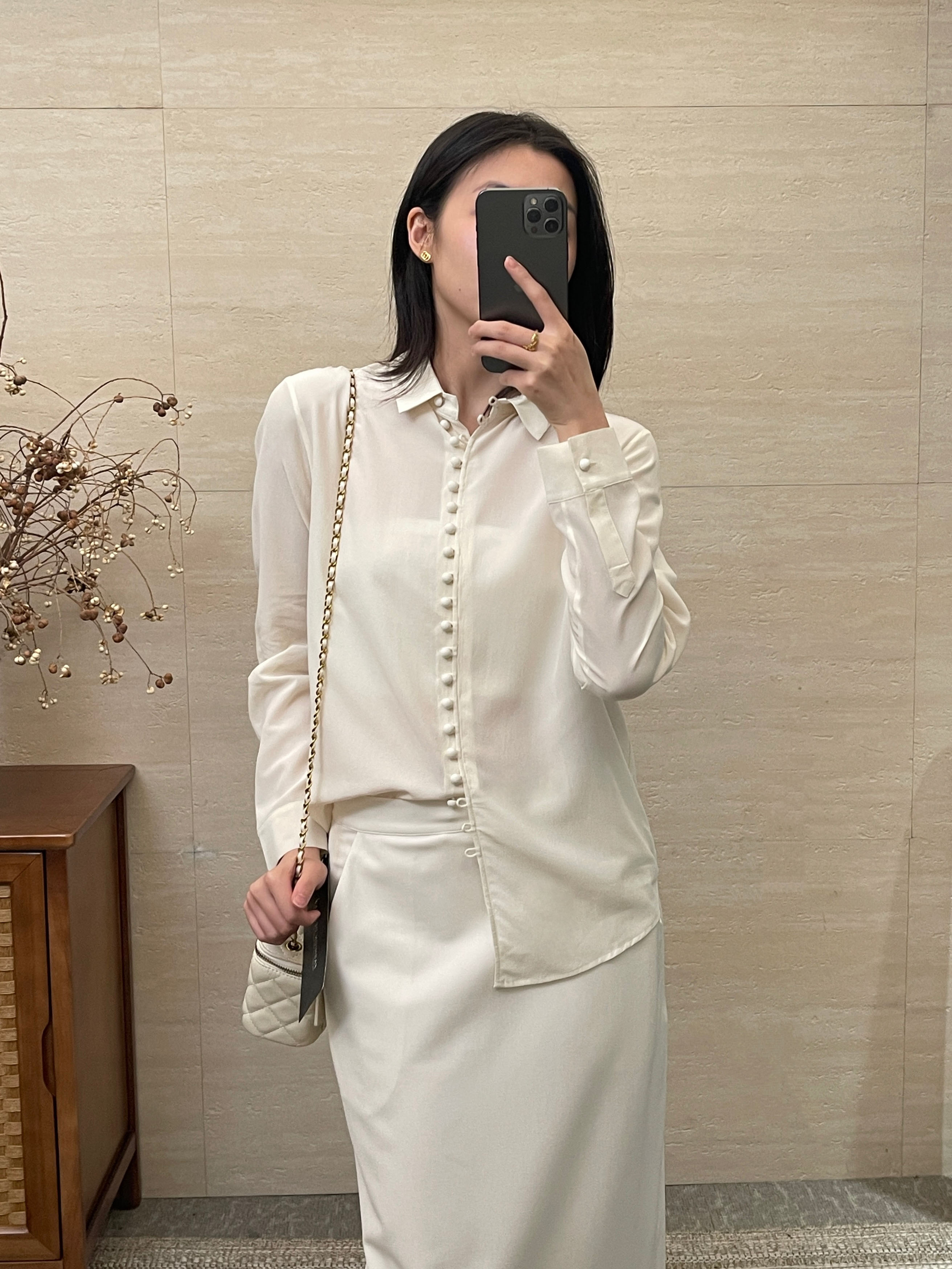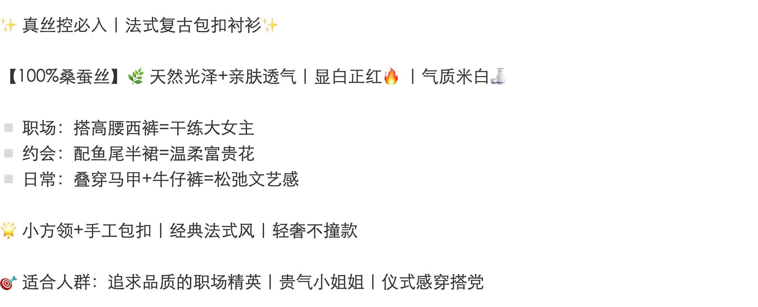 「K」洛诗琳35421法式复古真丝衬衫2025夏季纯色包扣真丝上衣0910