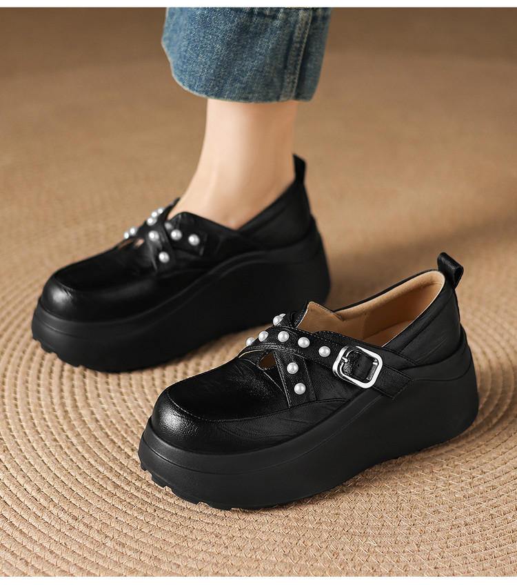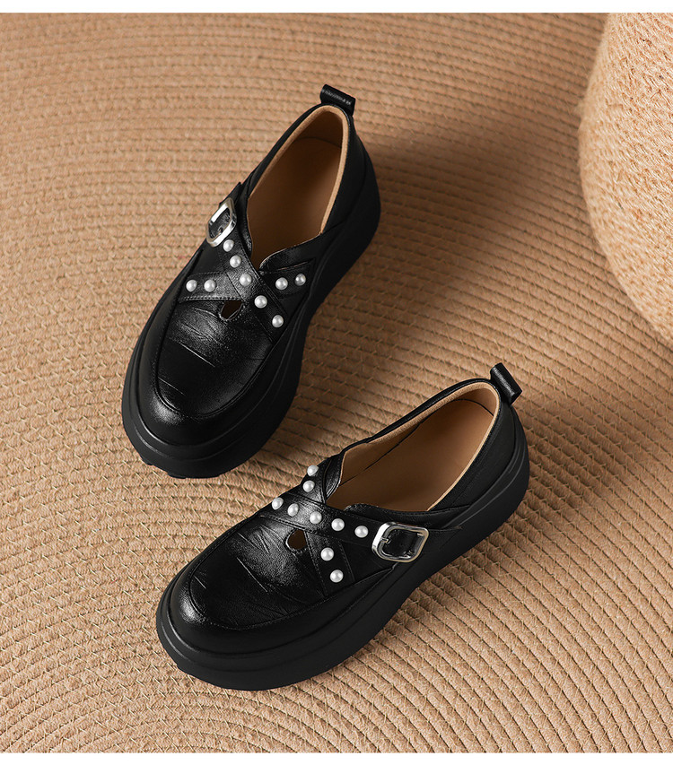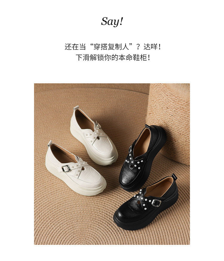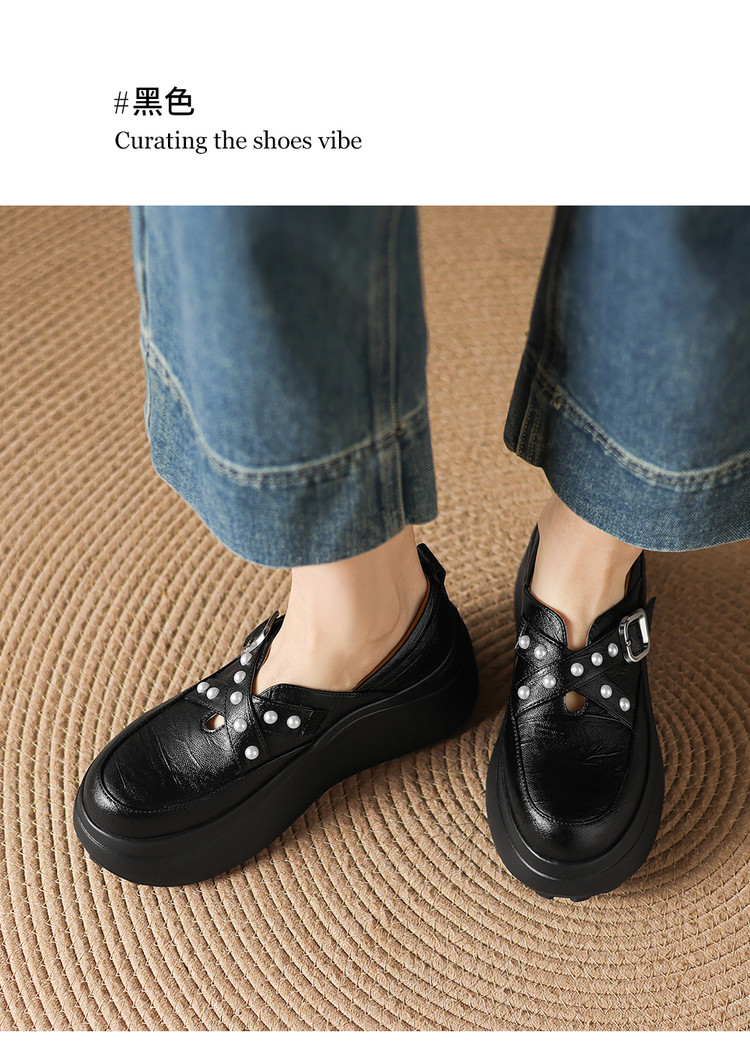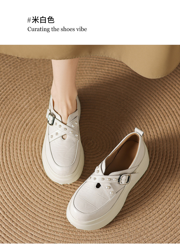 【预售7天】米白色圆头小众珍珠厚底乐福单鞋女新款真皮松糕鞋TYMXY&1636