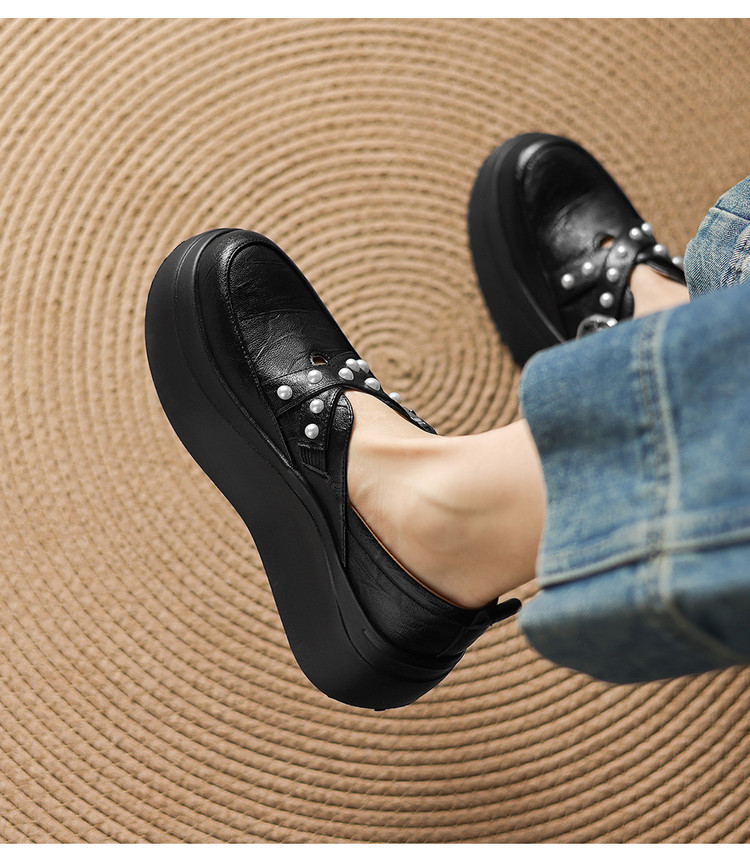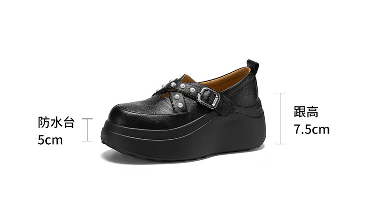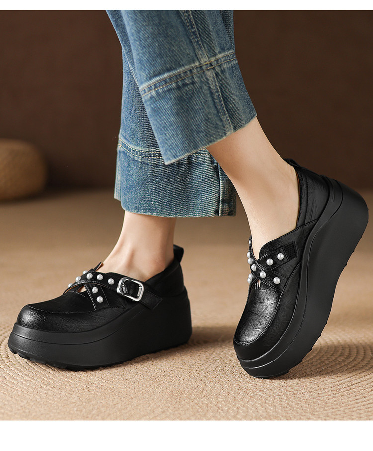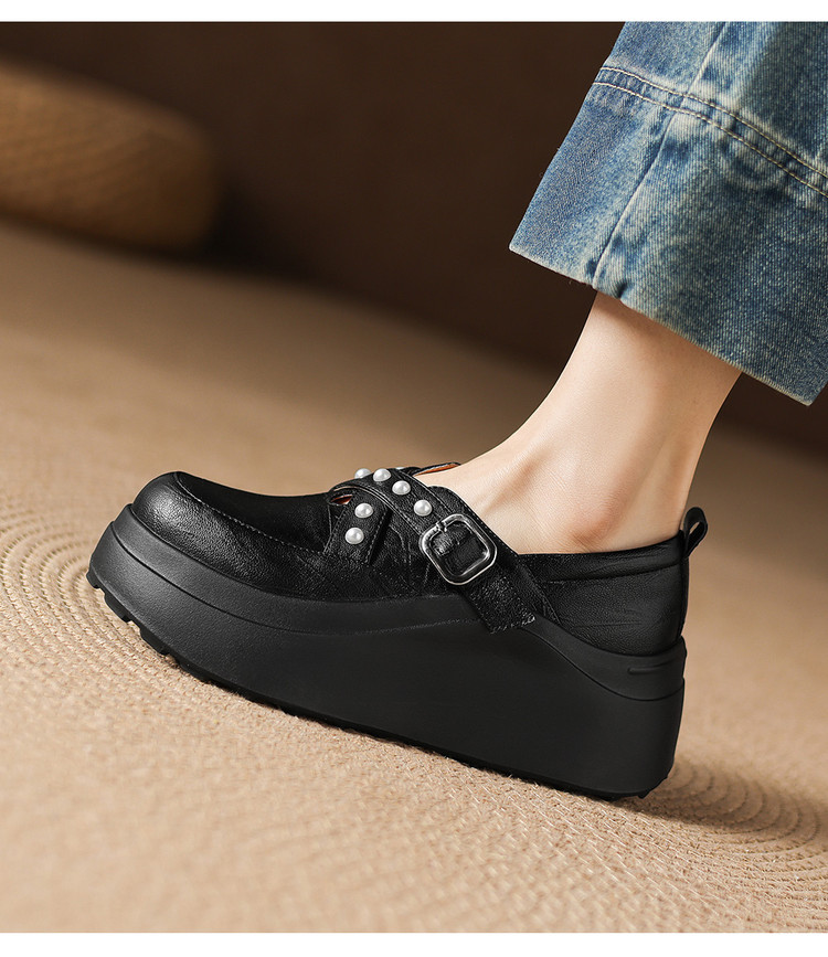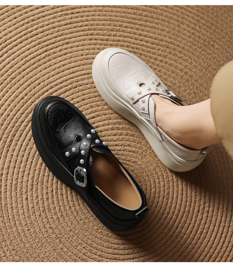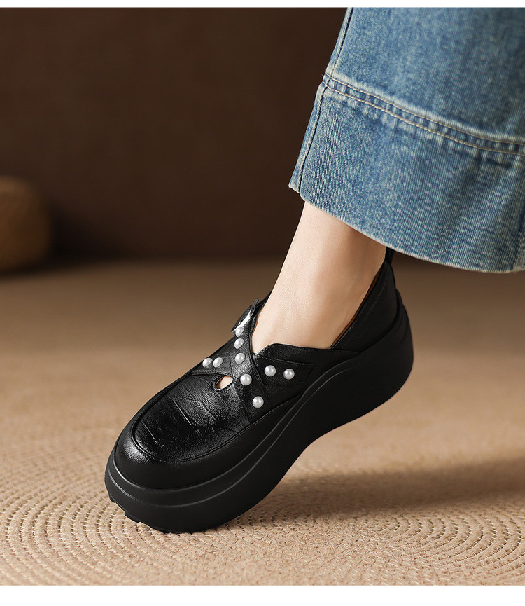 【预售7天】米白色圆头小众珍珠厚底乐福单鞋女新款真皮松糕鞋TYMXY&1636
