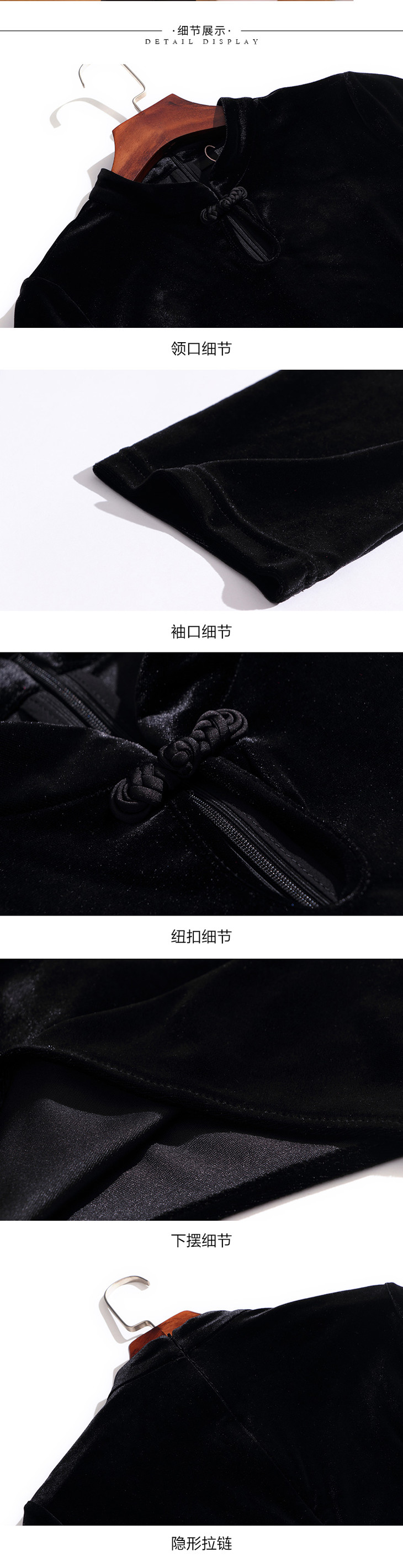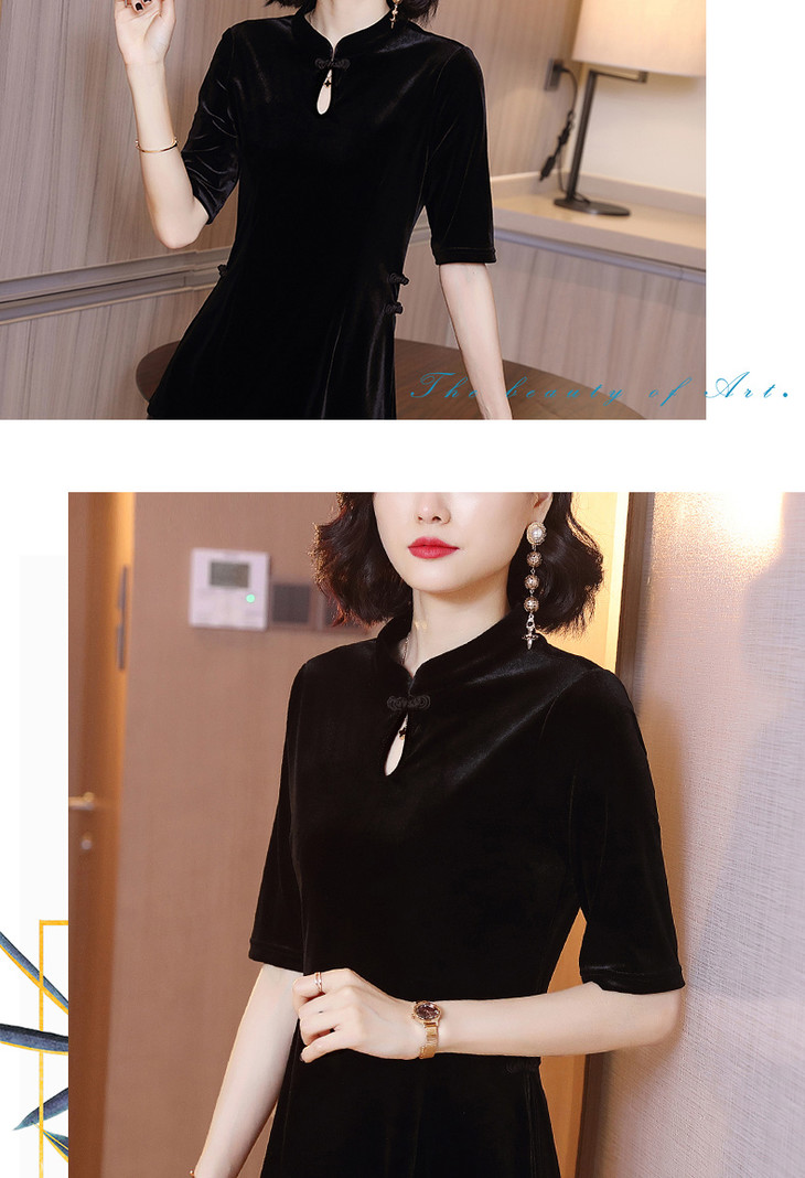 HX-1355秋季新款修身弹力金丝绒复古改良旗袍衬衫