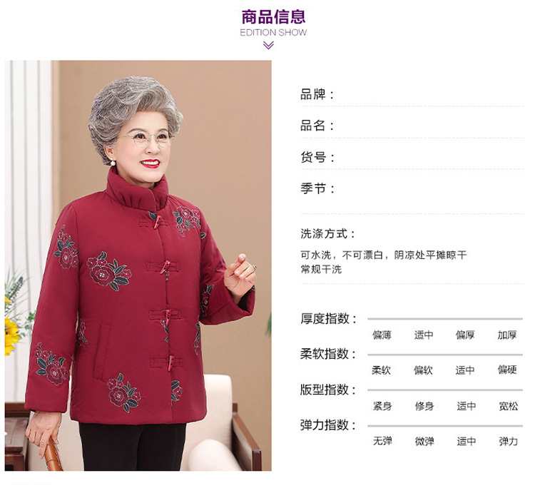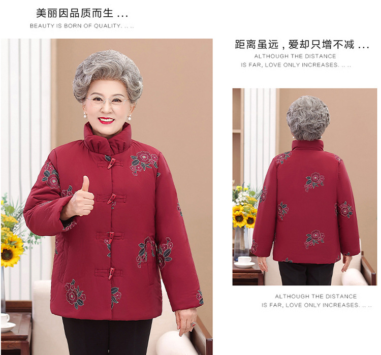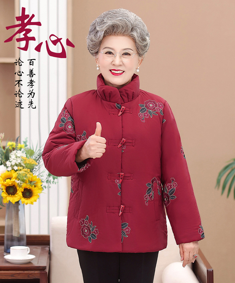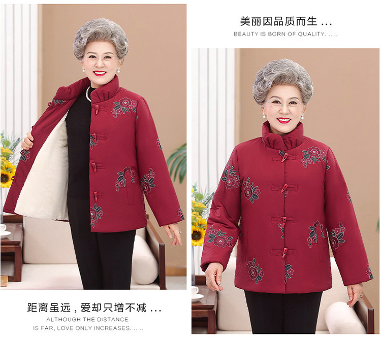 中老年人女装大码加绒,奶奶装立领绣花唐装厚TYWF-D062FEA211